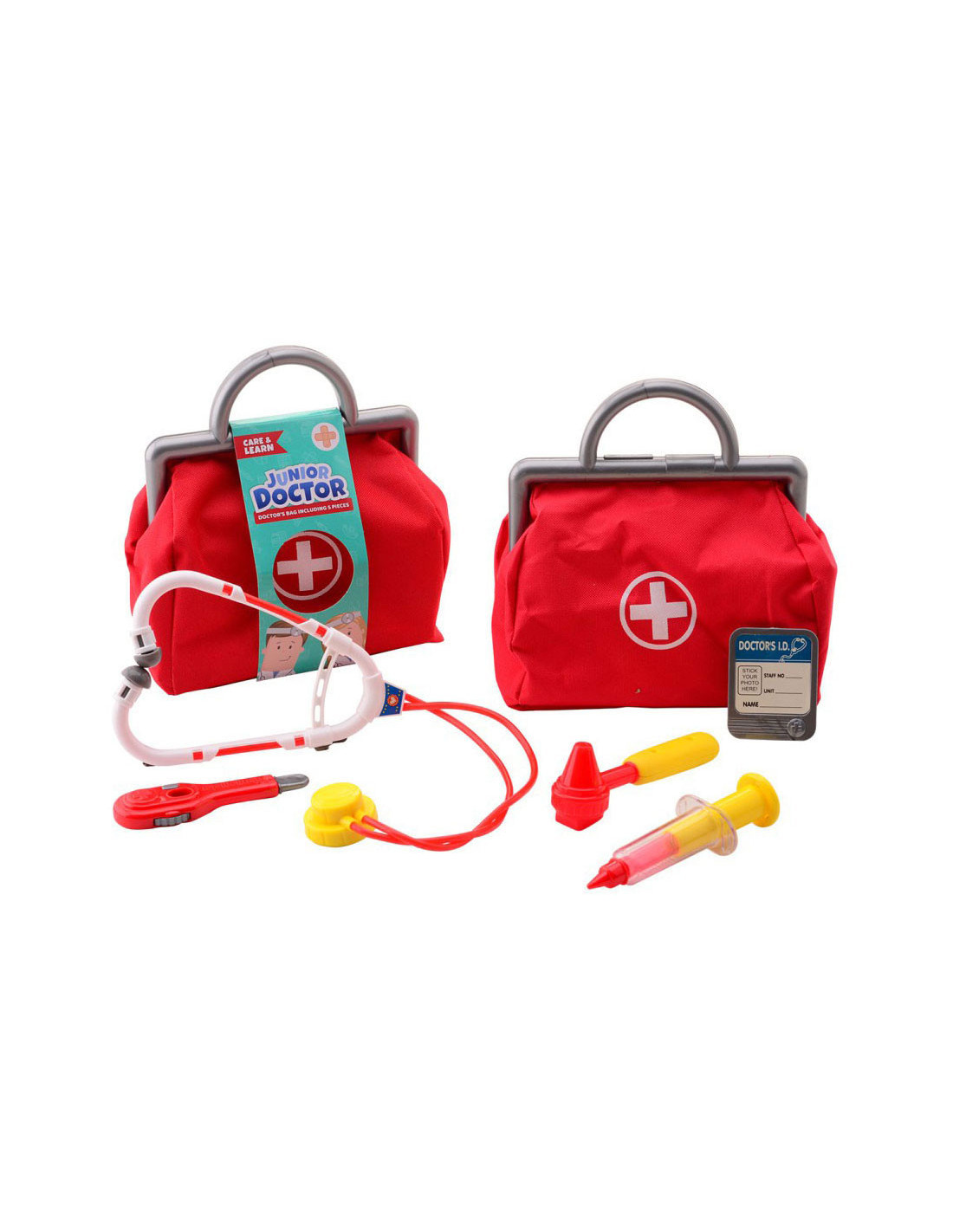 De rode speelgoed dokterstas is een perfecte aanvulling voor kleine zorgverleners in wording. Deze set bevat een kleurrijke dokterstas met een hamer, spuitje, stethoscoop en thermometer, alles wat nodig is om medische avonturen te beleven.