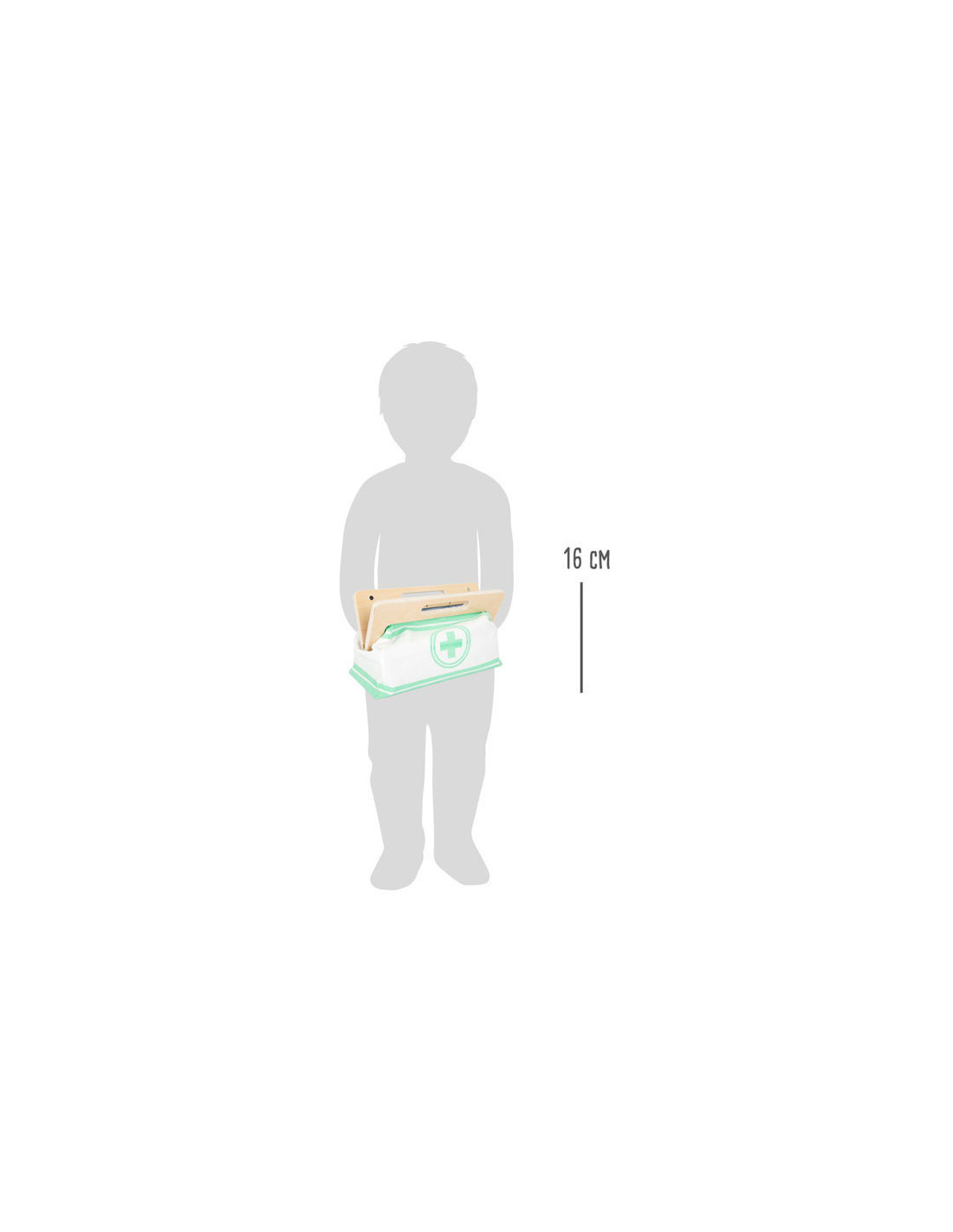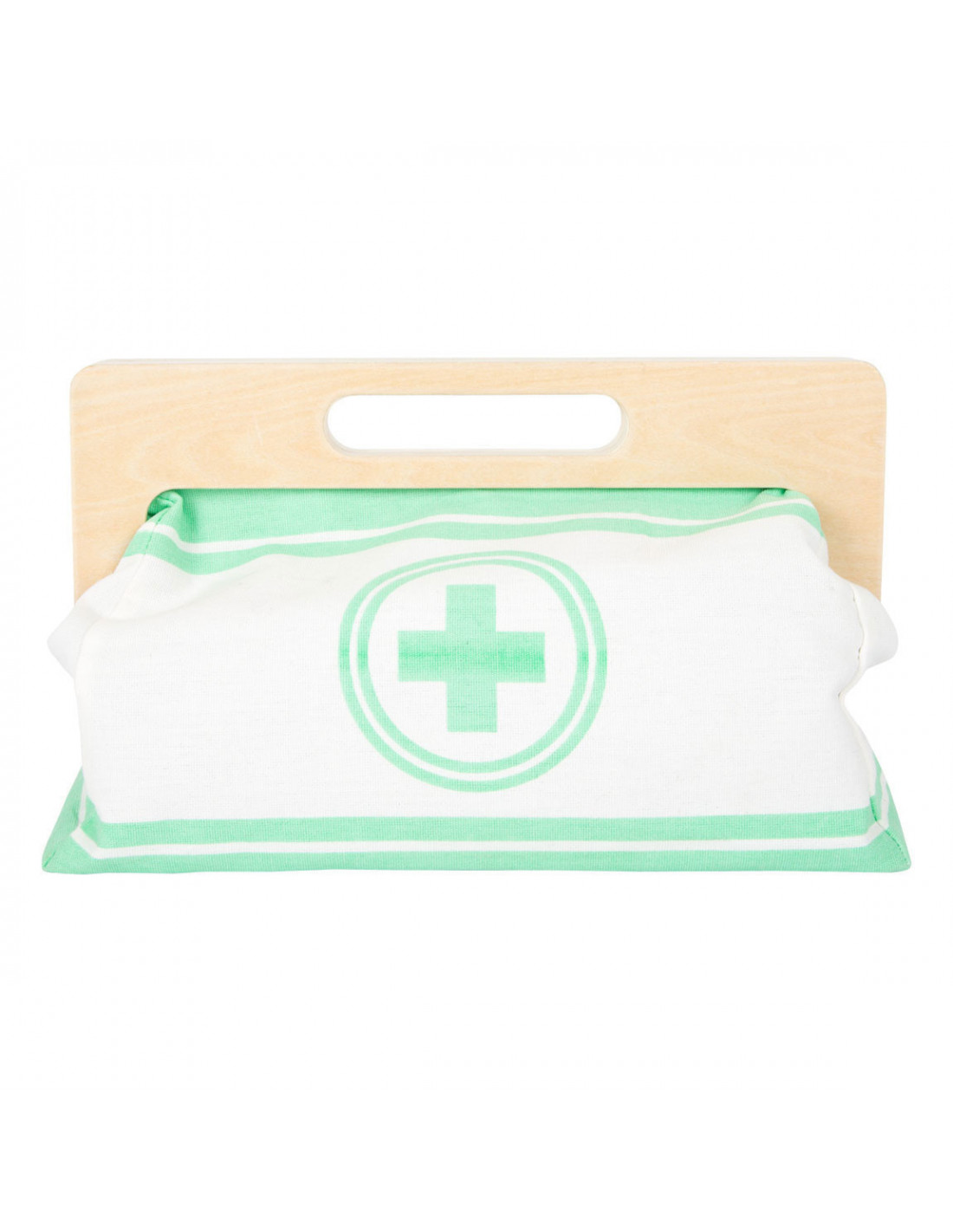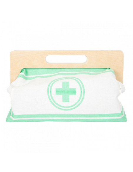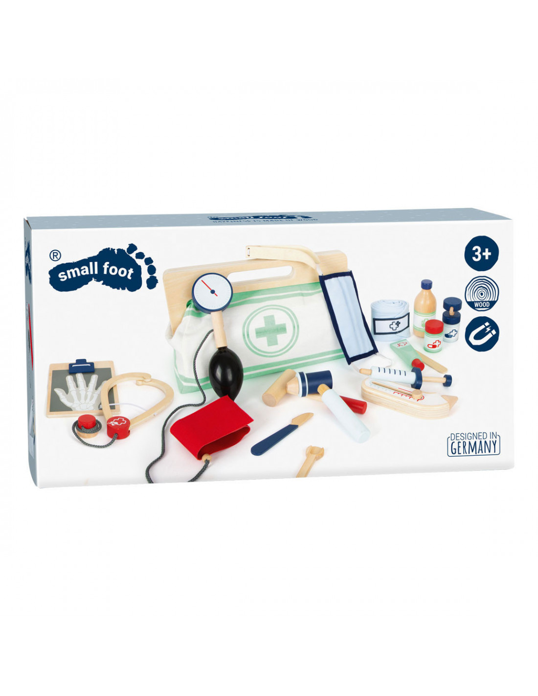 Met deze standaard dokterstas zijn de jonge, aspirant-medici perfect uitgerust! De tas van zachte stof maakt visueel en functioneel een geweldige indruk met zijn gemakkelijk te openen grepen die worden gesloten met magneten en gemaakt van natuurlijk hout. De binnenkant van de tas bevat alles wat nodig is voor een nepbehandeling: een stethoscoop, een thermometer, een speelgoedspuit en nog veel meer - allemaal gemaakt van robuust hout! De highlights zijn de bloeddrukmeter met pompbal en de otoscoop met echt vergrootglas.
