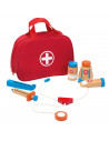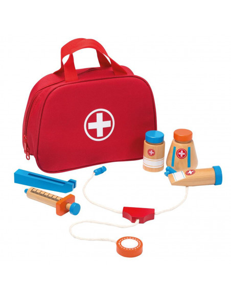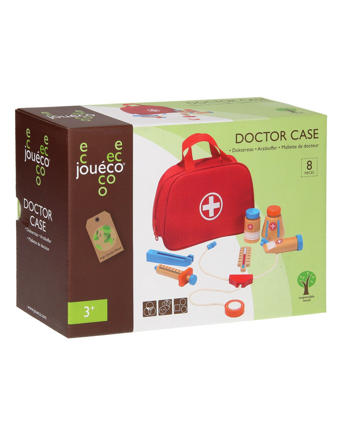 In deze Joueco Dokterstas met 11 Accessoires zit van alles om iedere patiënt weer beter te maken. Luister naar het hart en de longen met de stetoscoop, smeer een zalfje met de crème, meet de temperatuur of geef een prikje. Jij bent de dokter van dienst! Vanaf 3 jaar.
