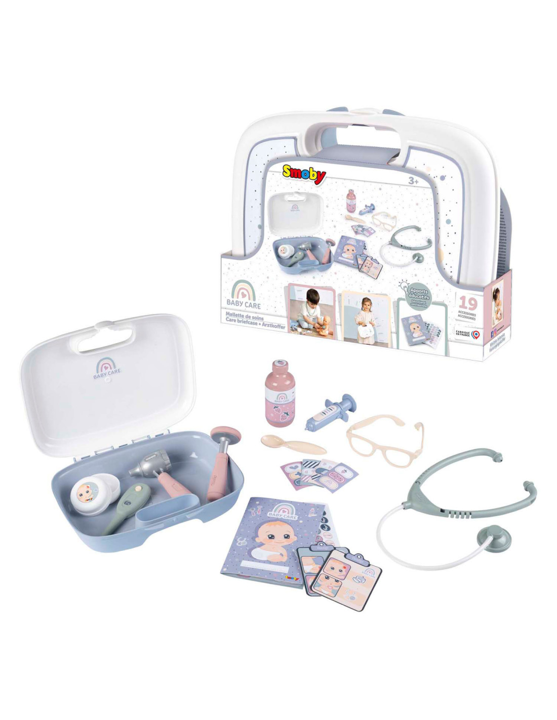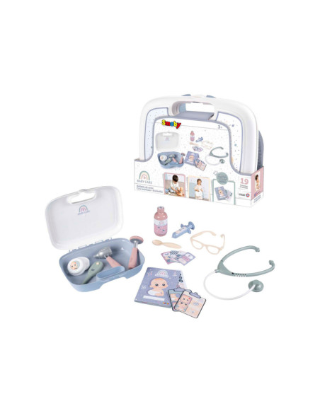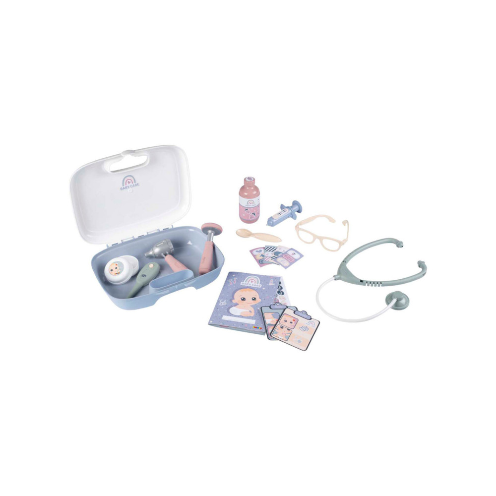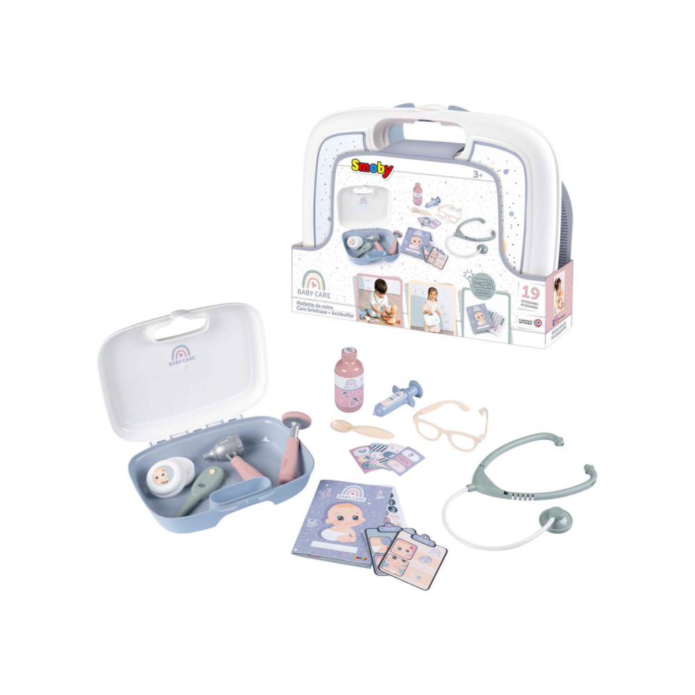 Baby care dokterskoffer inclusief 19 onderdelen. De koffer bevat een stethoscoop, otoscoop, thermometer, spuit, medicijnen, pleisters en nog veel meer! Geschikt voor kinderen vanaf 3 jaar.