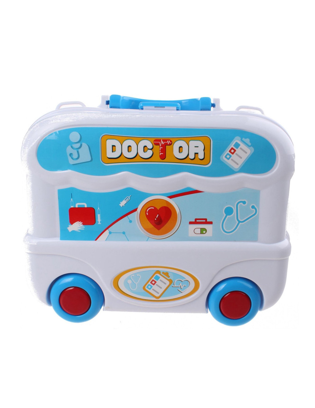 Inhoud: 1 Stethoscoop 1 Bril 1 Microscoop 1 Medicijnkistje 1 Bloeddrukmeter 1 Thermometer 1 Pincet 1 Spuit