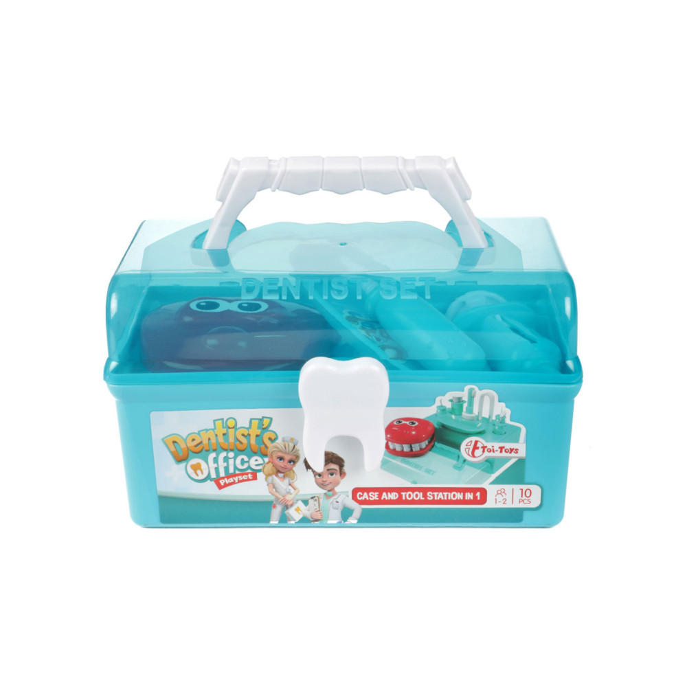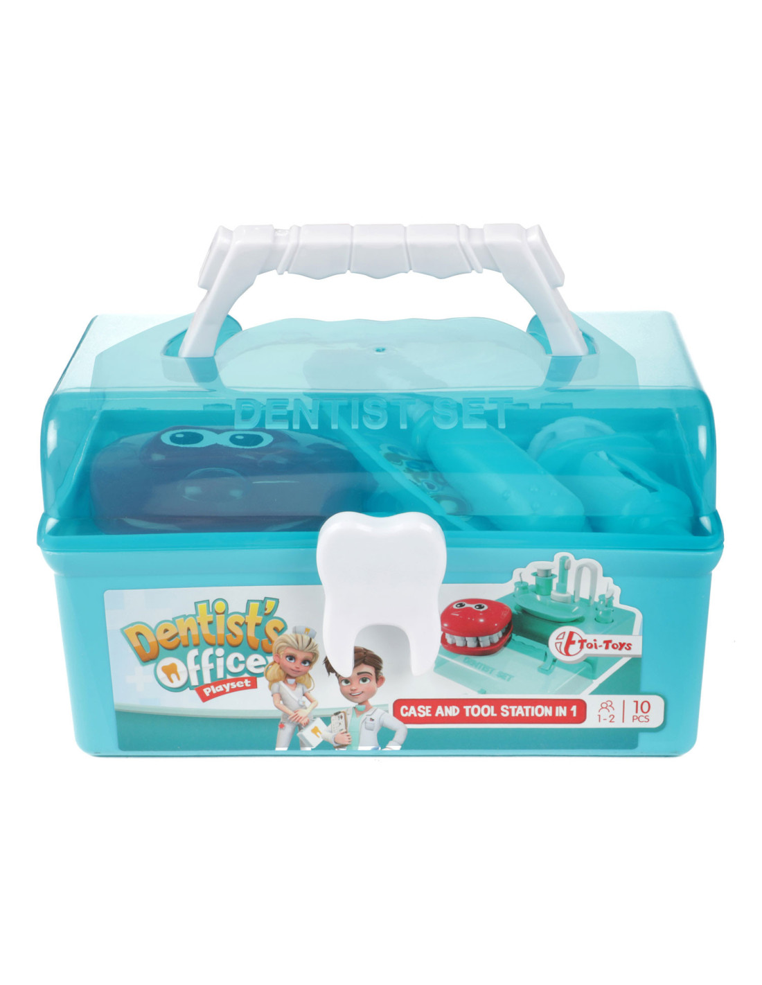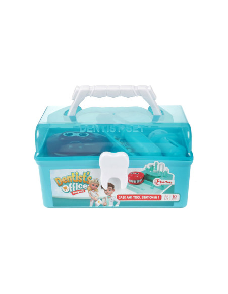 10-delige tandartskoffer met o.a. een speelgoedgebit, tandenborstel en diverse typische tandartsinstrumenten. Geschikt voor kinderen vanaf 3 jaar oud.