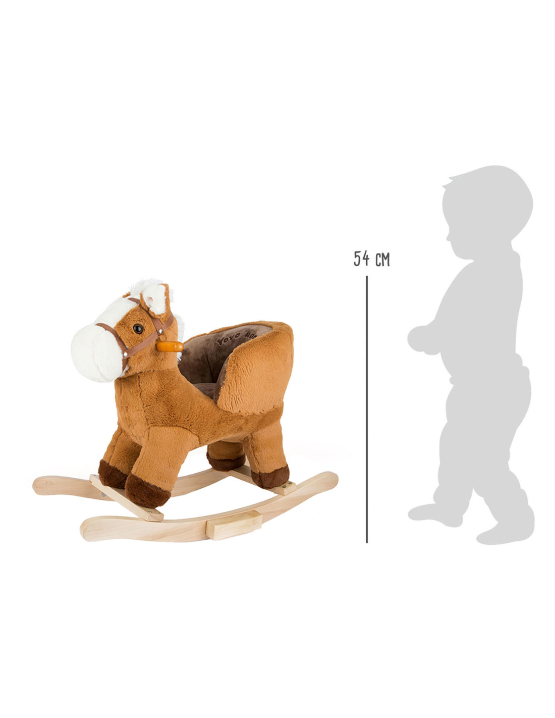 Jonge kinderen kunnen hun eerste schommelactie beleven! De bruine ogen en zachte vacht maken van deze hobbelpony een trouwe metgezel. In dit zadel zitten de kleine cowboys veilig! Zijn akoestische faciliteit (hinniken en geluid van stampende hoeven) zorgt voor langdurig speelplezier. Batterijen niet inbegrepen. Zachte pluche vacht en de compacte zitkuip maken deze hobbelpony zeer comfortabel. De renners kunnen hun voeten op de spijlen zetten. Een echte klassieker voor de kinderkamer! Hier kunnen de kleintjes hun eerste swingervaringen opdoen en zich op een idyllische ponyranch wanen.