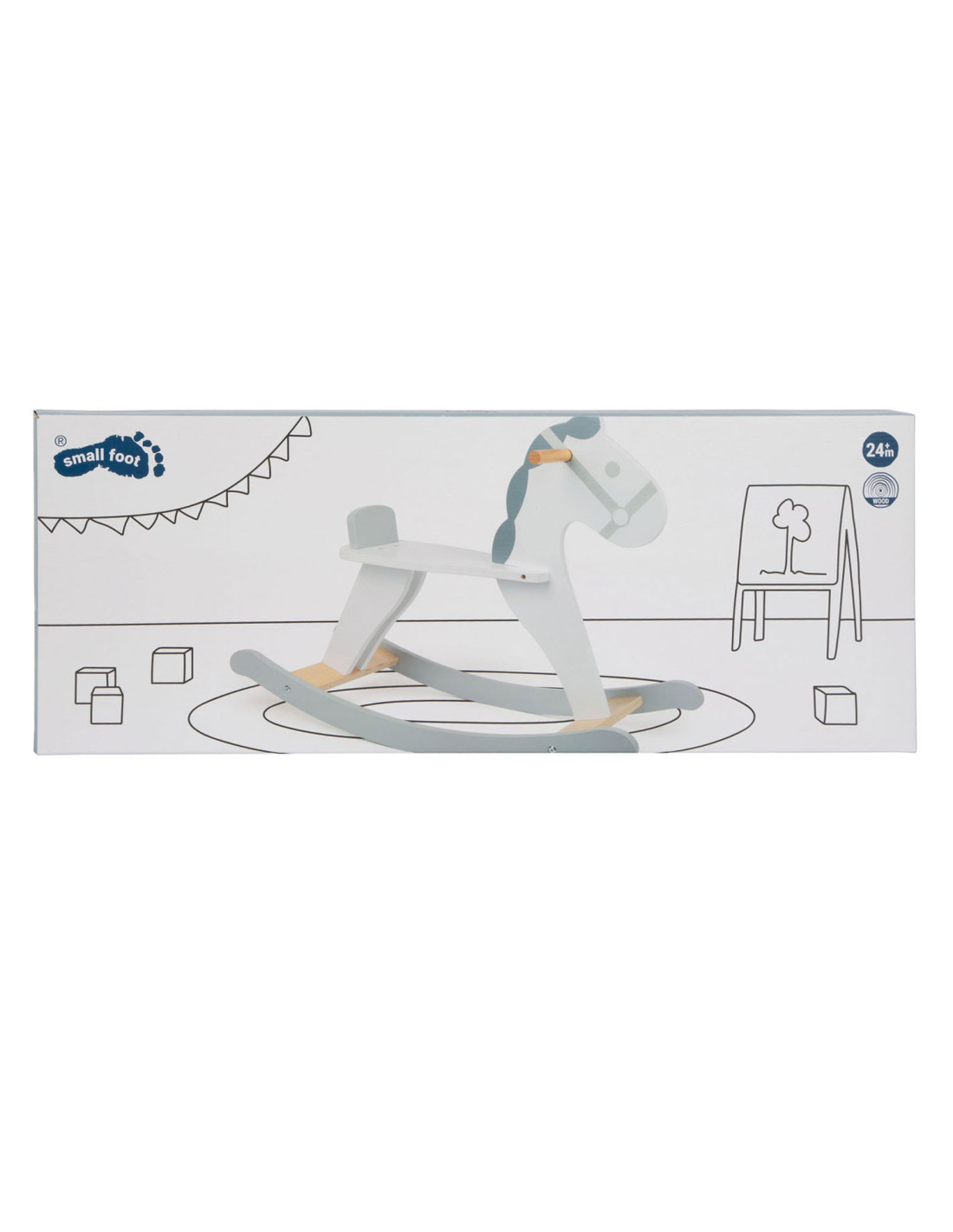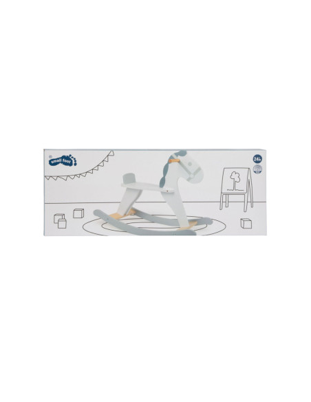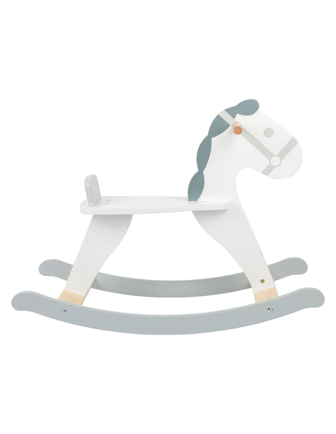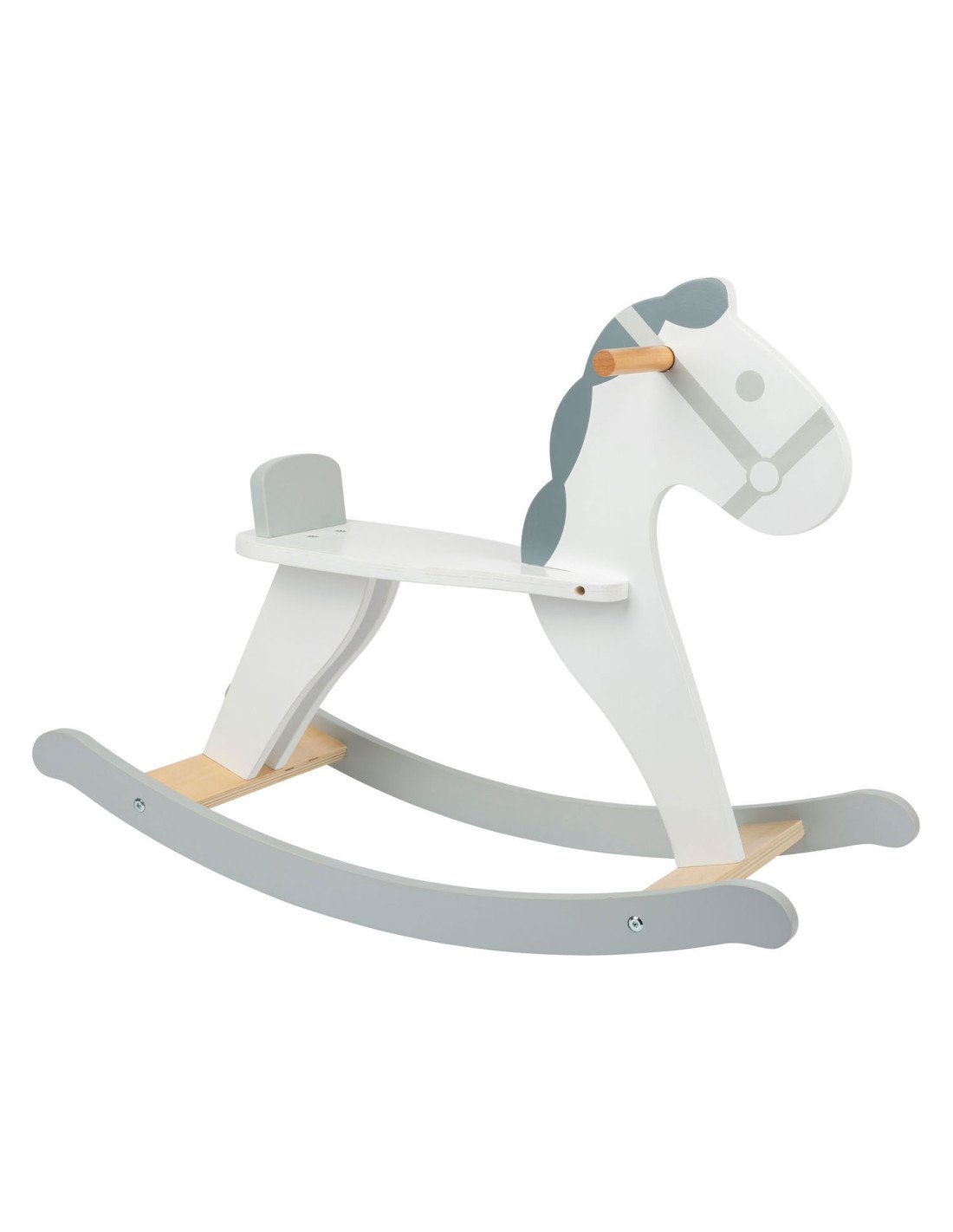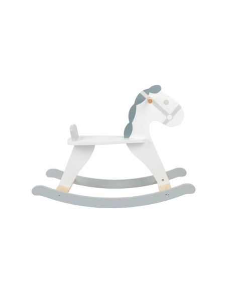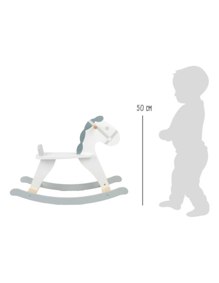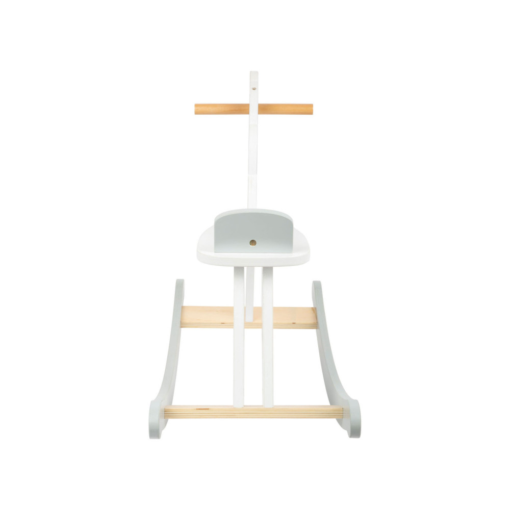 Dit hobbelpaard in een moderne, Scandinavische stijl die klanten betovert met zijn subtiele grijs-witte dessin. Het kleine paard met een vriendelijk gezicht nodigt kinderen uit tot leuke ritjes en is ook een mooie decoratie voor de kinderkamer. Terwijl de kleintjes schommelen, zorgen een rugleuning en praktische handgrepen voor een stevige houvast in het zadel. Gemaakt van stabiel multiplex en massief hout, brengt dit hobbelpaard wilde ritjes door de kinderkamer en langdurig paardrijplezier. Een klassiek speeltje in een moderne presentatie die thuishoort in elke kinderkamer!