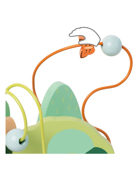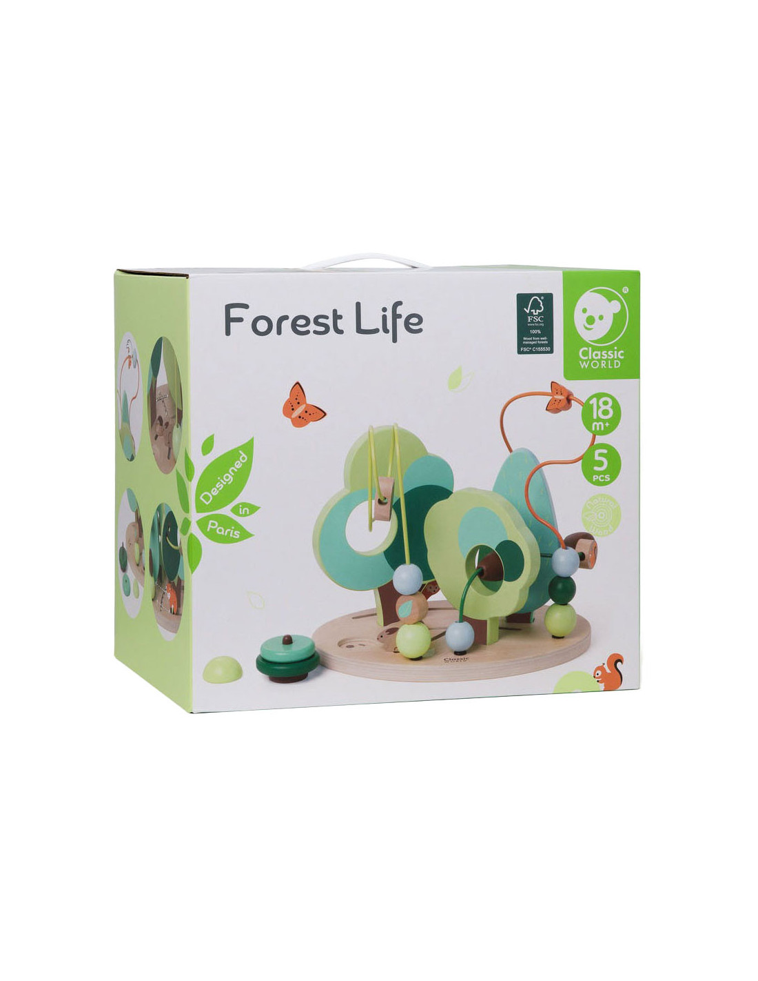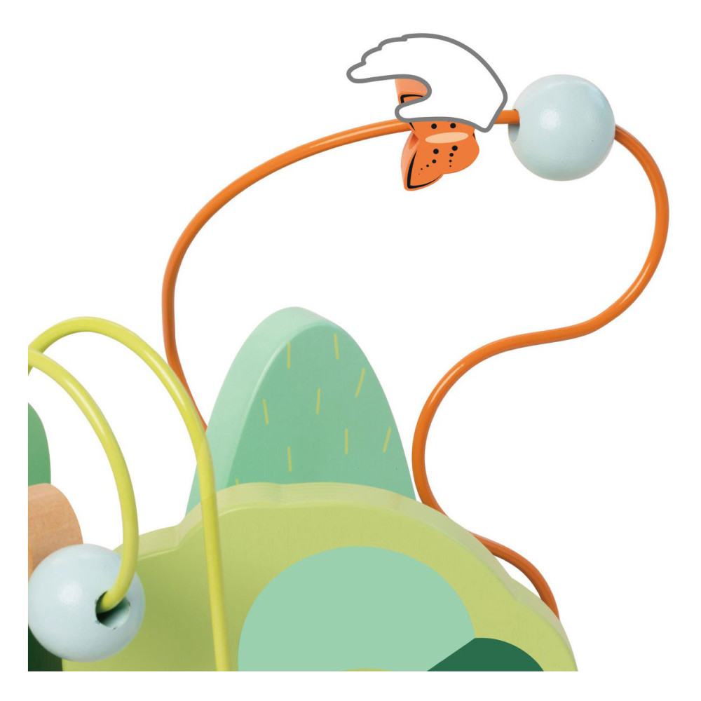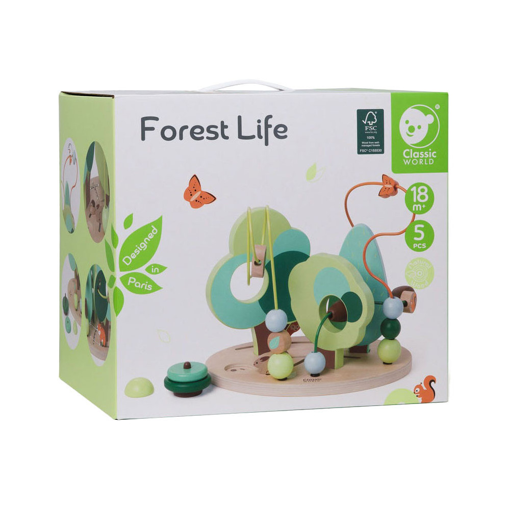 Kralendoolhof met bos-thema. In het doolhof zijn verschillende dieren te vinden die over de grond en door het doolhof kunnen bewegen. Het kralendoolhof is geschikt voor kinderen vanaf 18 maanden.
