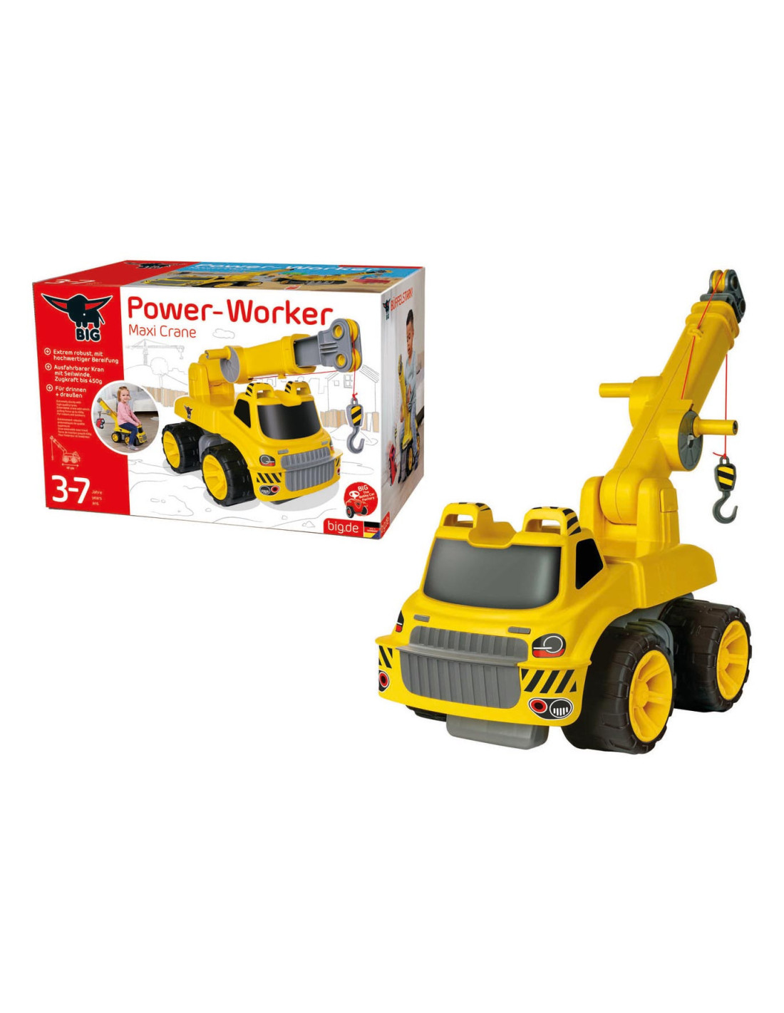 De populaire BIG Power Workers krijgen versterking! Het nieuwe, speelse voertuig in het krachtige MAXI-formaat is de ideale aanvulling voor kleine speelbouwplaatsen, waar vanaf nu bouwmaterialen niet alleen kunnen worden geschept en gebaggerd, maar ook gemakkelijk kunnen worden opgetild.