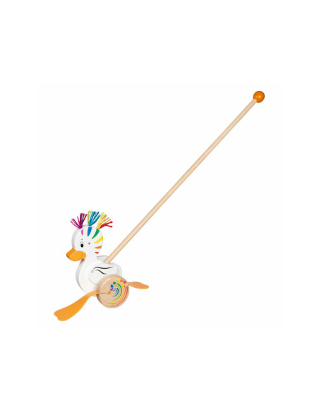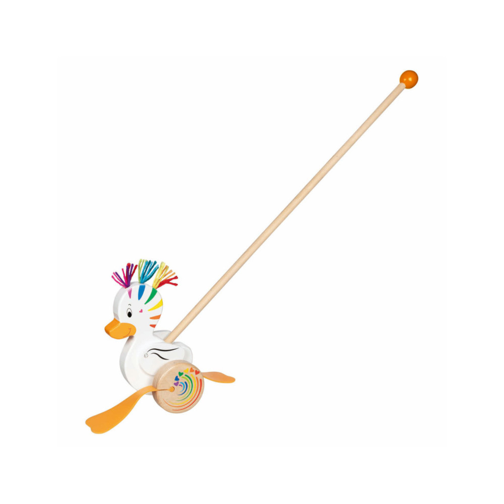 Push along eend Lou. Kenmerken • 11.6 x 9.6 x 60 cm • Geschikt voor kinderen vanaf 18 maanden • Gemaakt van hout