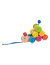 Zelden was een massiefhouten rups zo kleurrijk. De in elkaar grijpende schakels zorgen voor een onmiskenbare gang. Het belangrijkste kenmerk zijn de verschillend ontworpen, op elkaar afgestemde wielen, die de bewegende rups met een helder kleurenspel begeleiden. Maar dat is nog niet alles: de afzonderlijke schakels kunnen tot een piramide worden gestapeld en de rups kan nog steeds zonder problemen worden voortgetrokken.