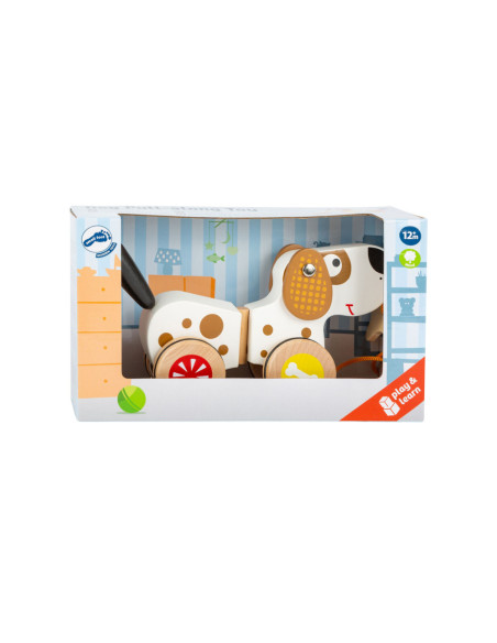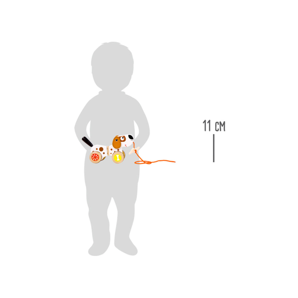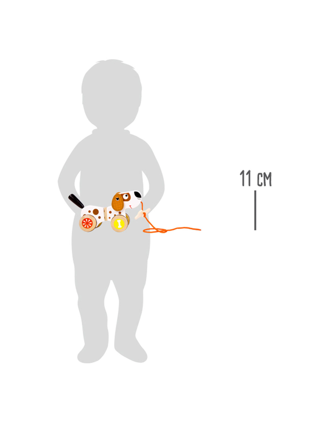 Woef woef! Kleine kinderen kunnen dit hondje achter zich aan trekken. Zijn wielen hebben rubberen ringen om het geluid te verminderen. Hij kwispelt met oren en staart en slaat in elke bocht een goed figuur. Een bot aan een touwtje dient als beloning. Kleine kinderen kunnen dit hondje achter zich aan trekken. Zijn wielen hebben rubberen ringen om het geluid te verminderen. Hij kwispelt met oren en staart en slaat in elke bocht een goed figuur. Een bot aan een touwtje dient als beloning.