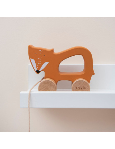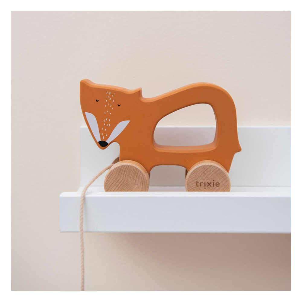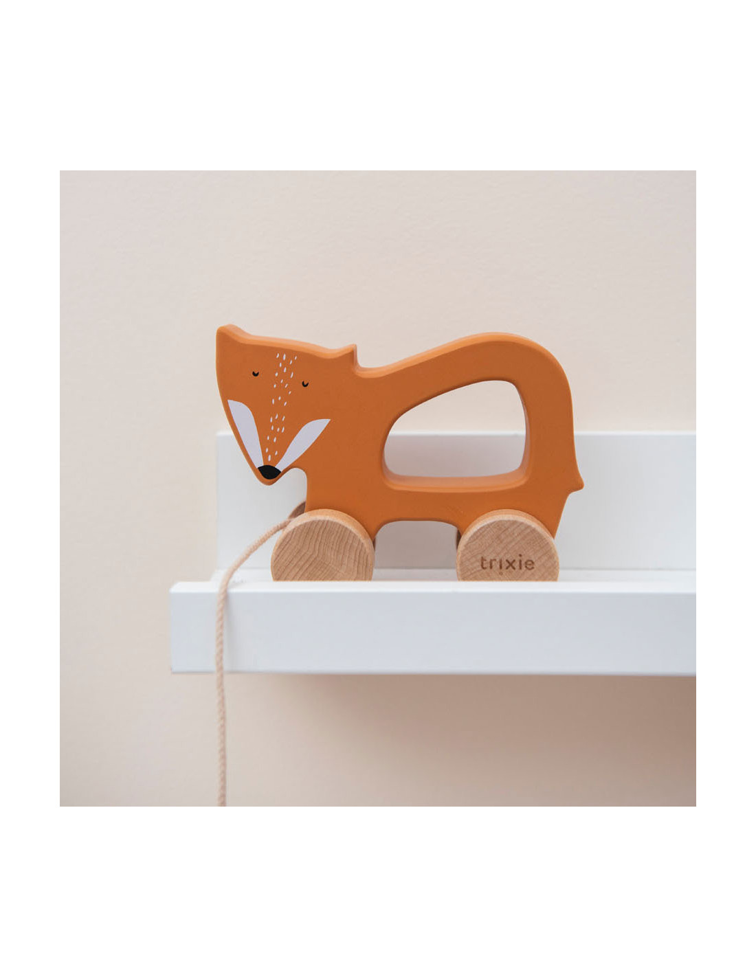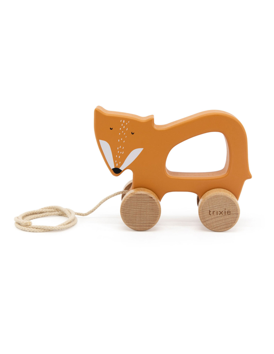 Deze leuke vriend begeleidt je kleintje bij zijn allereerste stapjes! Met het katoenen koord trekken kinderen hun favoriete dier mee tijdens een wandeling. De opening in het midden maakt het voor kinderen gemakkelijk om het speelgoed vast te pakken en rond te duwen. Dit product is gemaakt van 100% FSC © gecertificeerd hout. Alle verven zijn op waterbasis en veilig voor baby's.