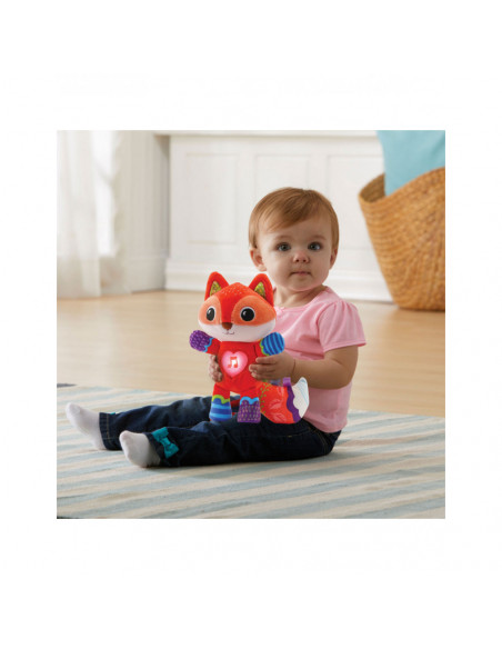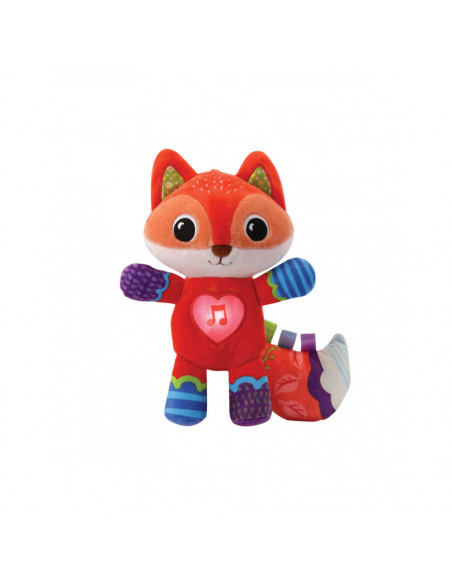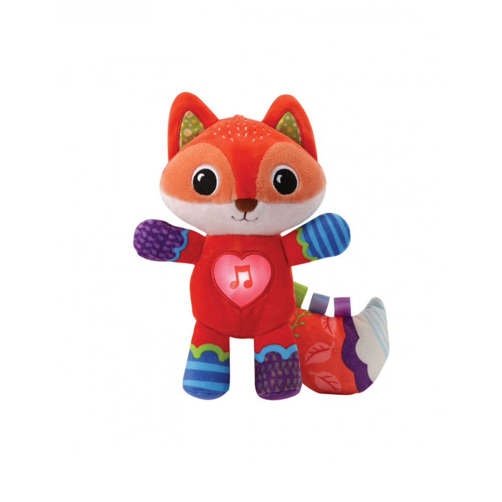 Druk op de knipperende hart-toets om lieve zinnetjes, rustgevende melodietjes, gezongen liedjes en geluiden te horen. Het rustgevende lichtje knippert langzaam mee met de muziek en geluiden. En de verschillende materialen en texturen stimuleren de tastzin. Laten we knuffelen!