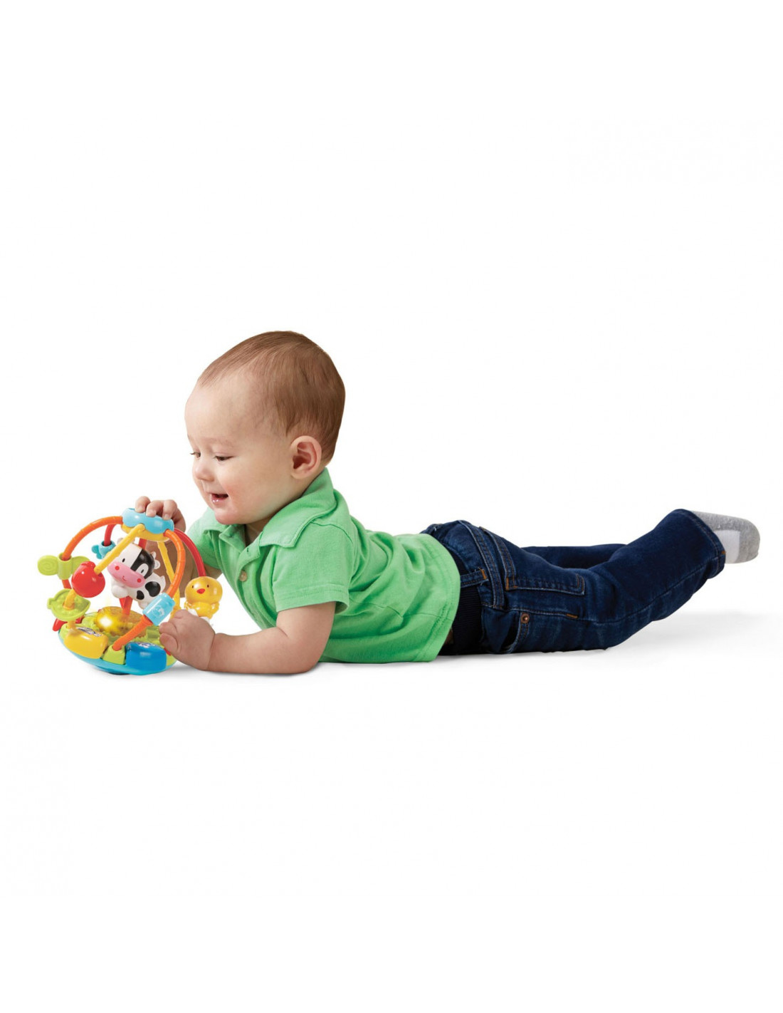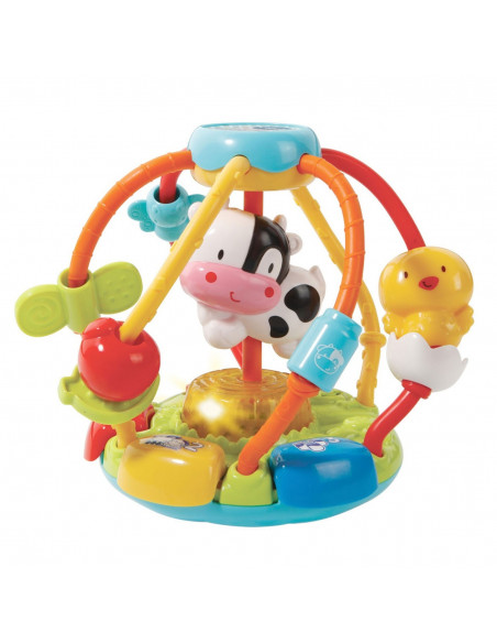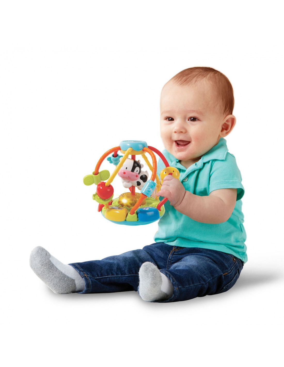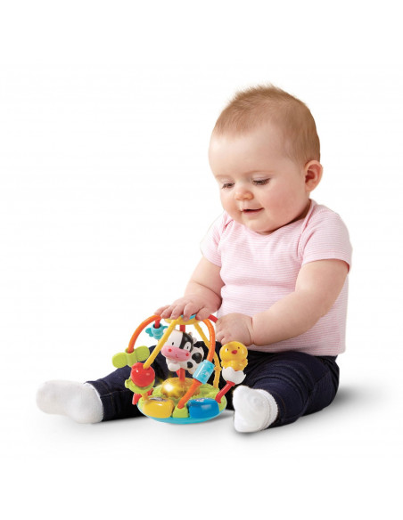 Het schattige koetje laat je kennismaken met kleuren, cijfers, geluiden en nog veel meer! Schud met de bal of druk op de interactieve toetsen om vrolijke reacties te horen. Het spelen met de verschillende beweegbare onderdelen bevordert de ontwikkeling van de motorische vaardigheden. Geschikt vanaf 2 maanden. Werkt op 2 AAA batterijen (inbegrepen).