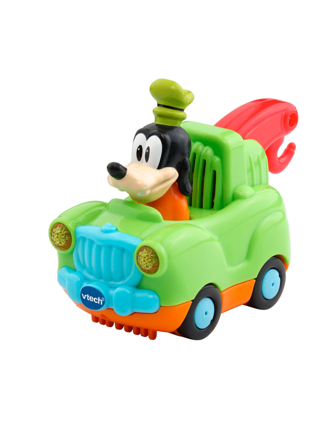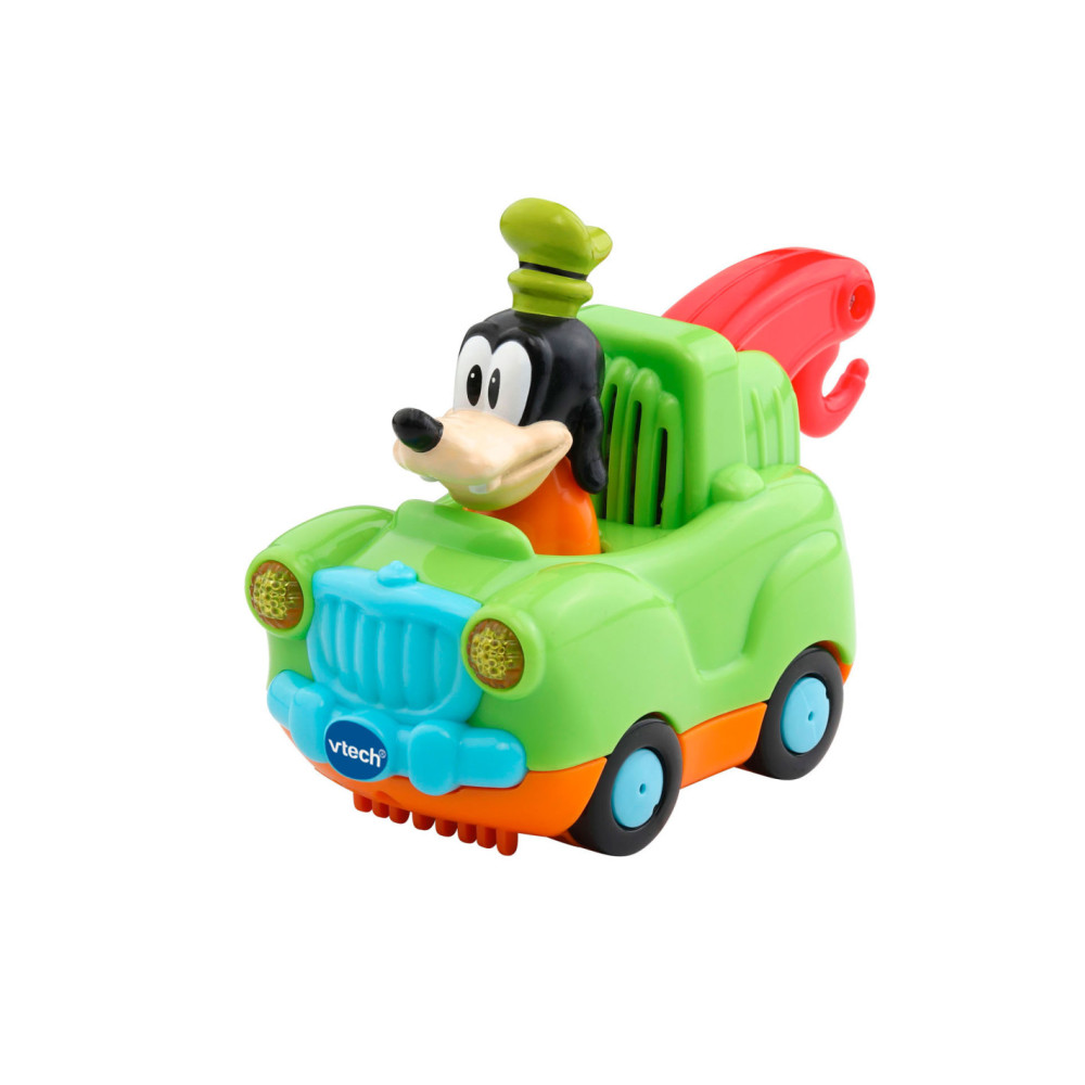 - Druk op Goofy in zijn trouwe takelwagen om geluidseffecten, vrolijke zinnetjes en gezongen liedjes te horen en de koplampen te zien knipperen