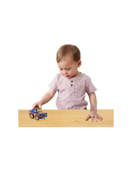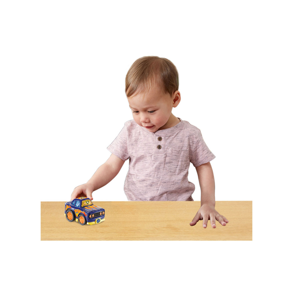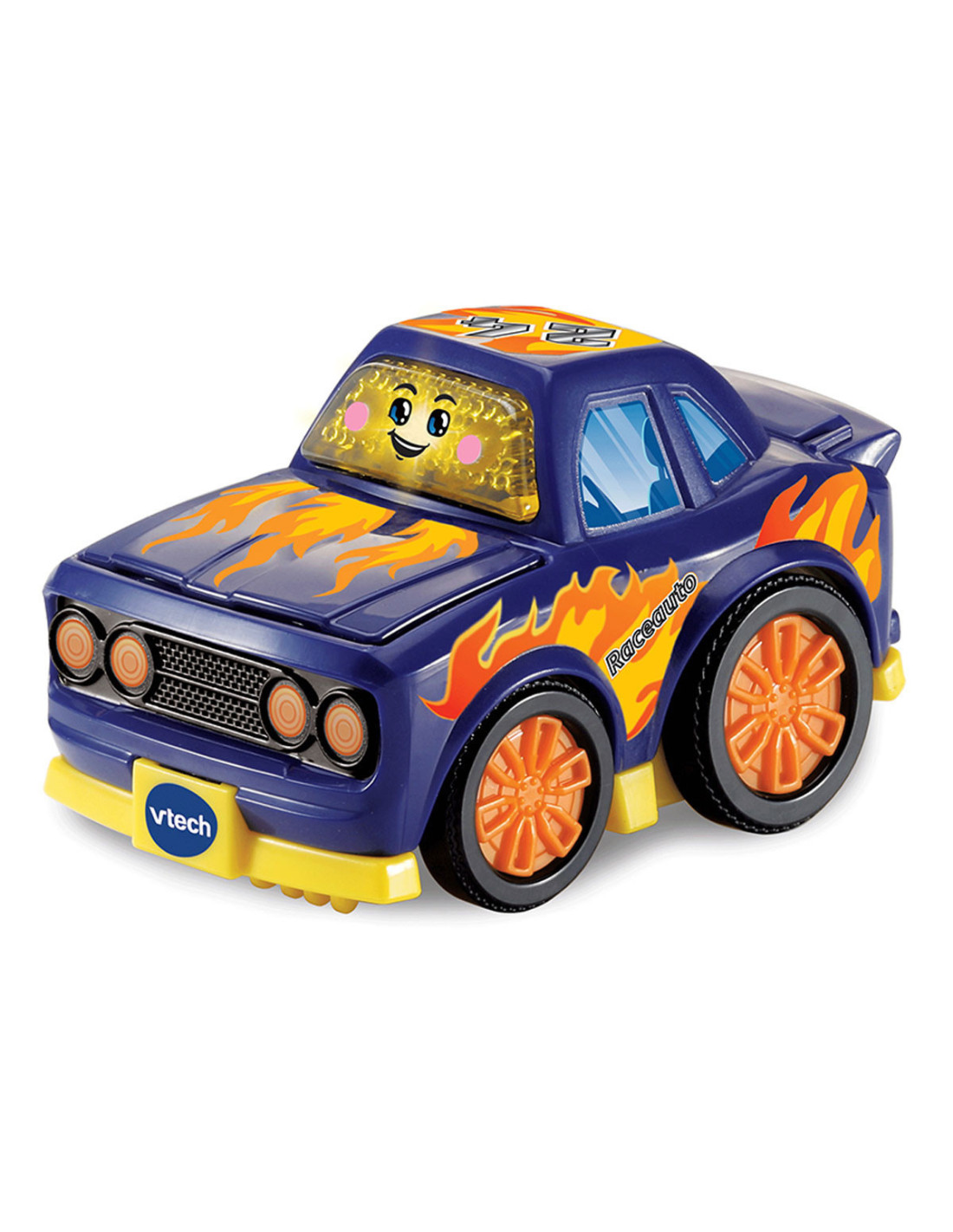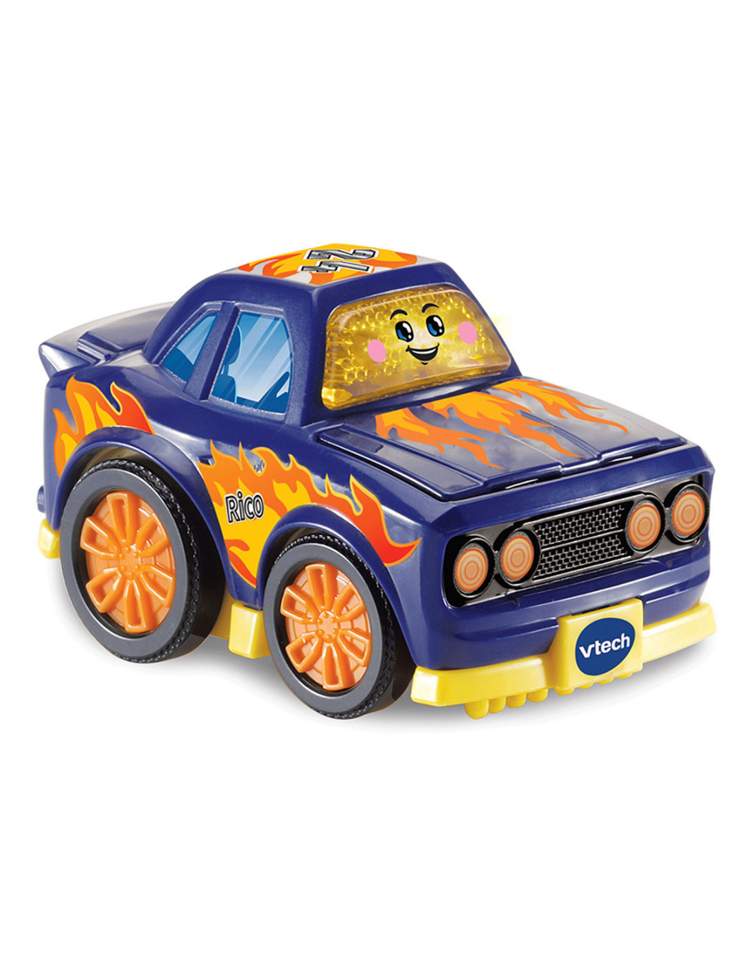 Het is tijd voor een nieuwe generatie Toet Toet Auto's! Verzamel ze allemaal! Druk op de knipperende gezicht-toets om geluidseffecten, vrolijke zinnetjes en gezongen liedjes te horen. Druk op de actie-toets om beweging en geluid te activeren. Kom, laten we gaan racen met Rico Raceauto!