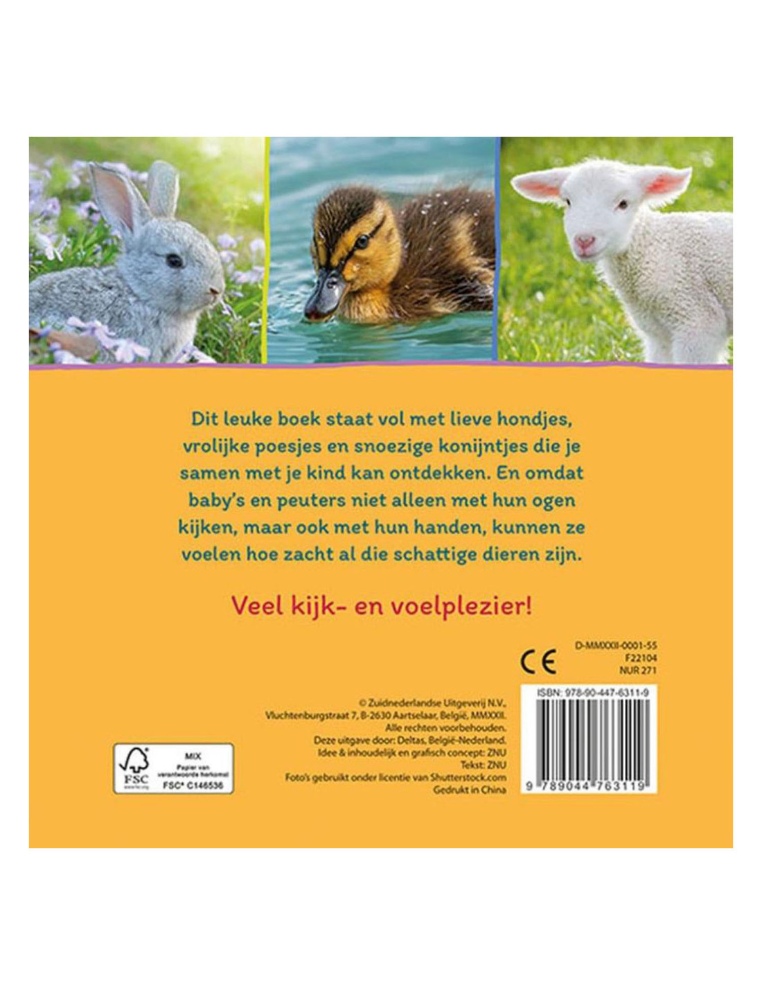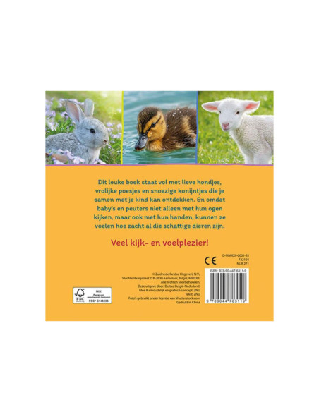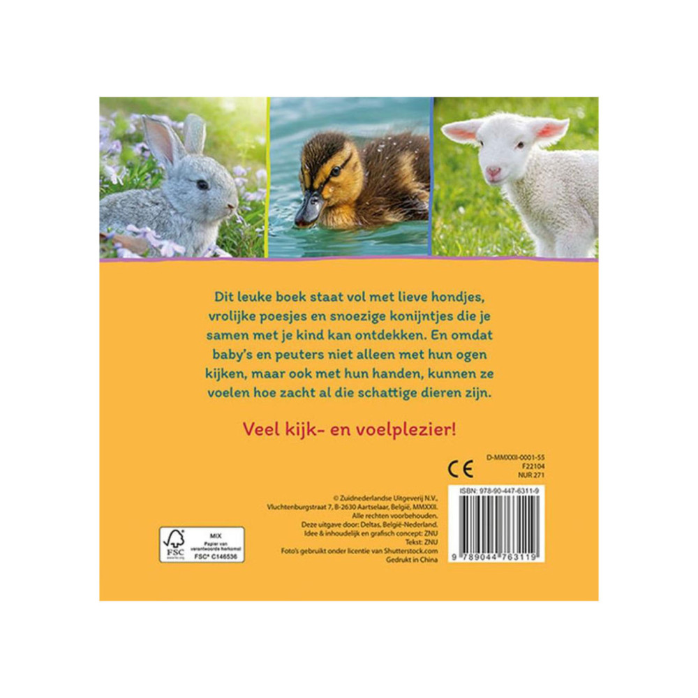 Dit leuke boek staat vol foto's van lieve hondjes, vrolijke poesjes en snoezige konijntjes! Laat je kind aan de dieren voelen en ontdekken hoe zacht ze zijn. Een eenvoudig boekje voor de allerkleinsten om naar te kijken, over te vertellen en aan te voelen!