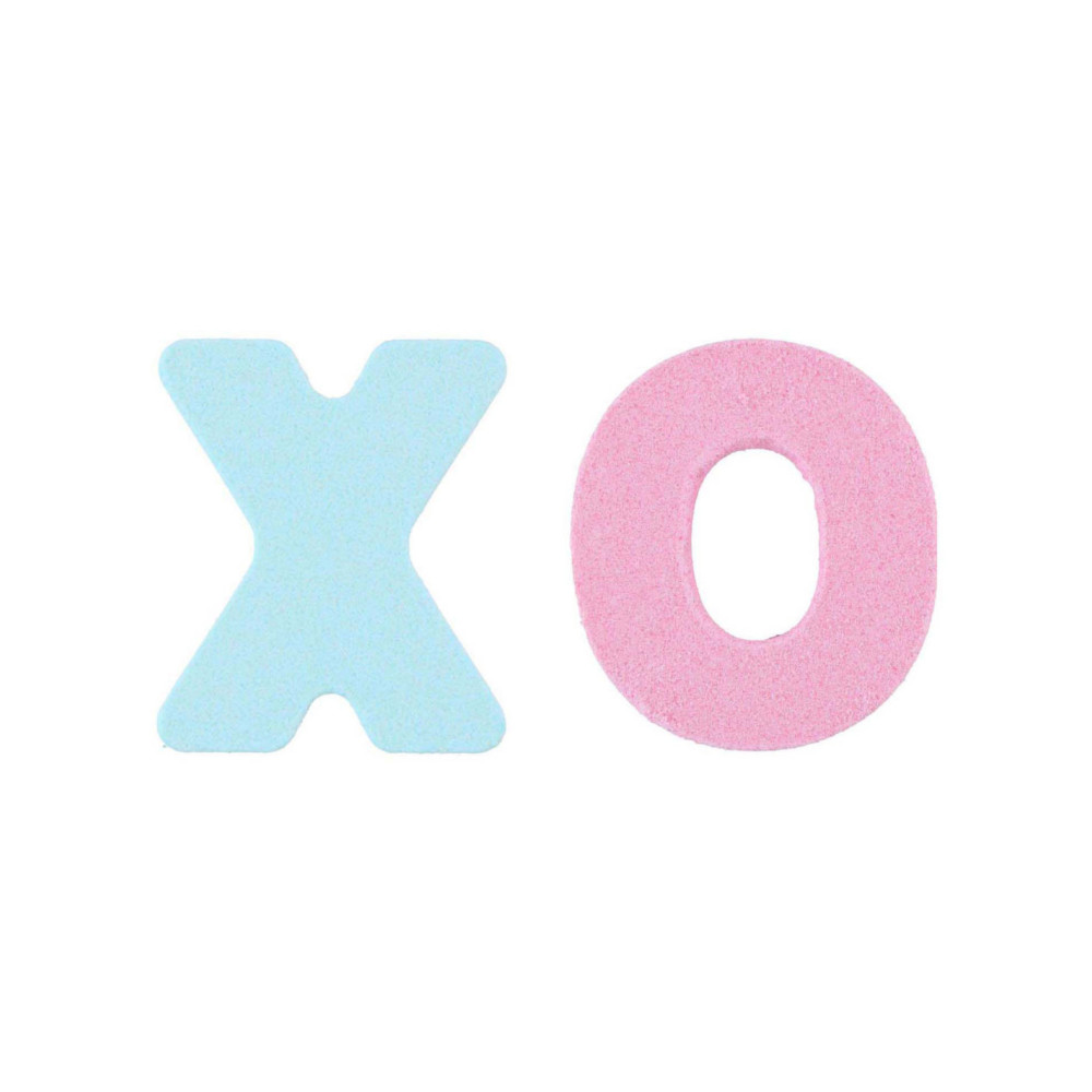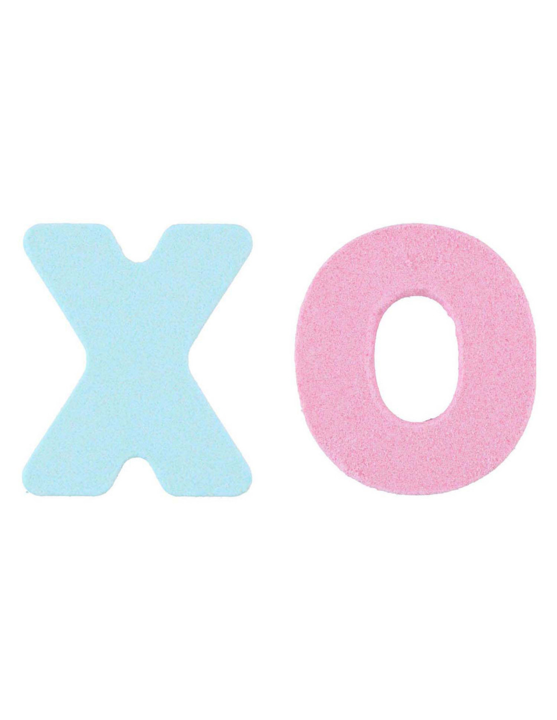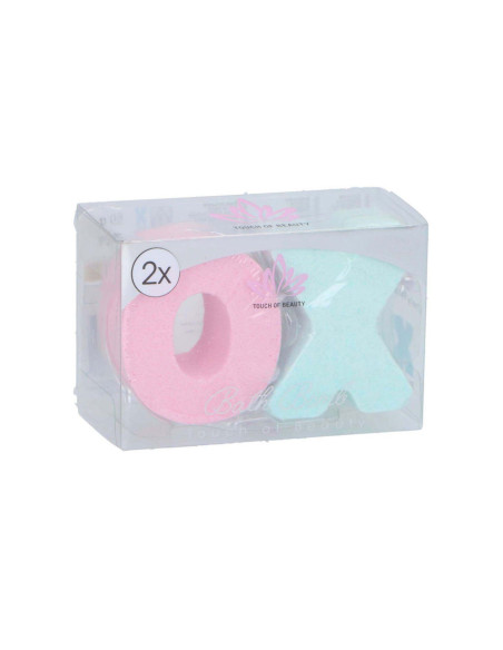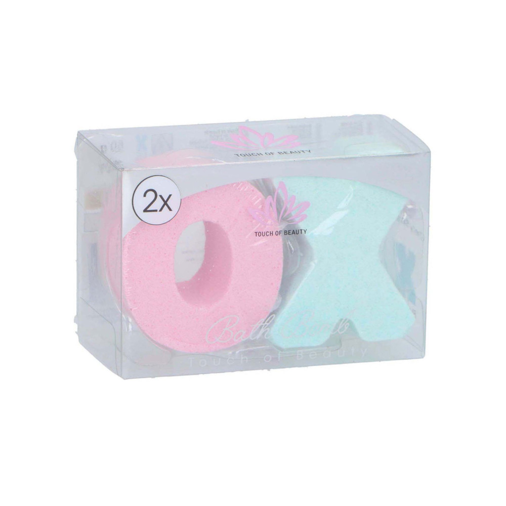 Een set van twee badproducten in een doorzichtige verpakking. De producten hebben zachte tinten roze en groen, ideaal voor een verfrissende badervaring.