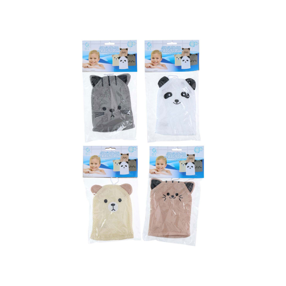 Schattige badhandschoen in de vorm van een dier. Inclusief ophanglus. Voor een zachte en effectieve reiniging van de huid. Perfect voor dagelijks gebruik. Afmetingen: 19,7 cm.