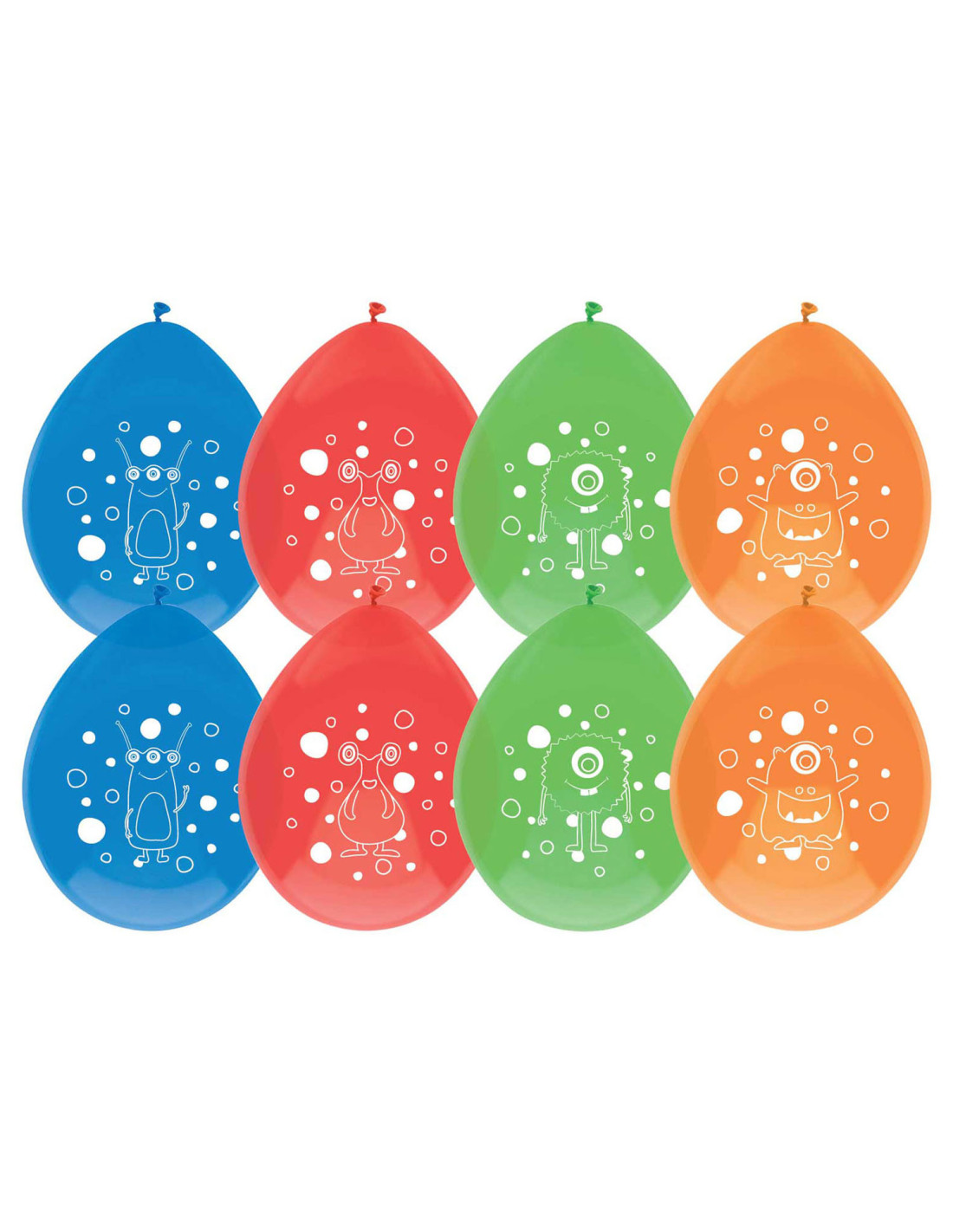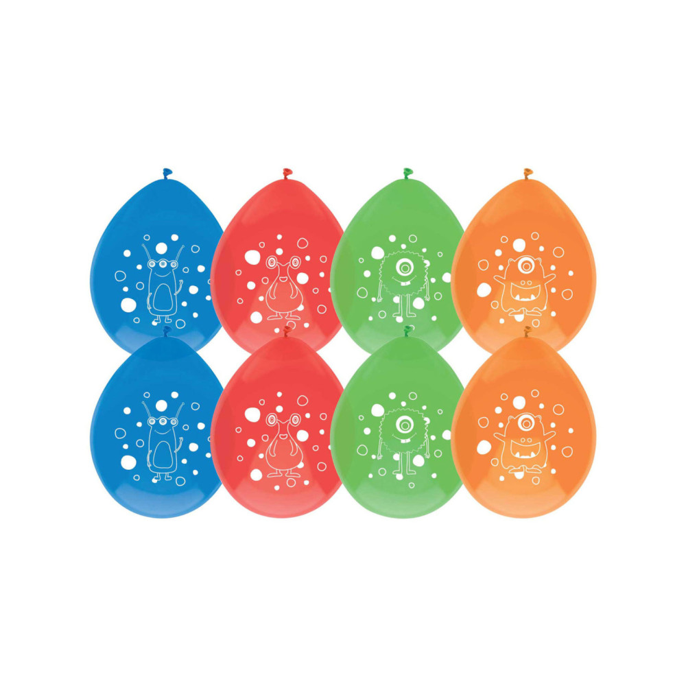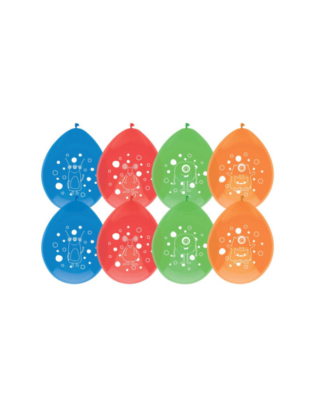 Het feest is compleet met deze ballonnen waarop grappige monsters staan. De ballonnen hebben de kleuren blauw, rood, oranje en groen en zijn per 8 stuks verpakt.
