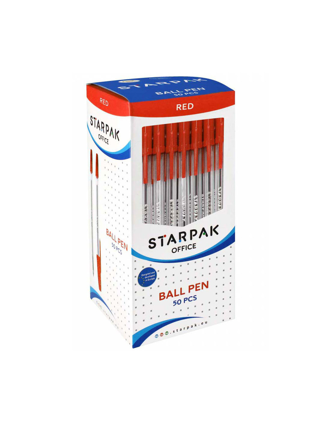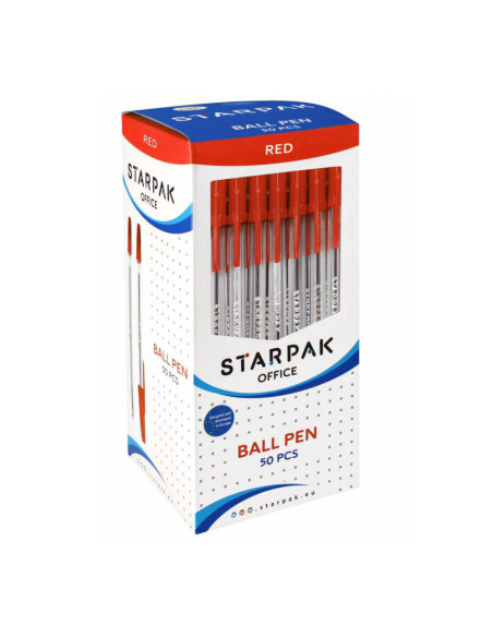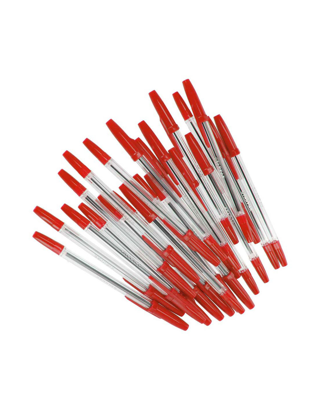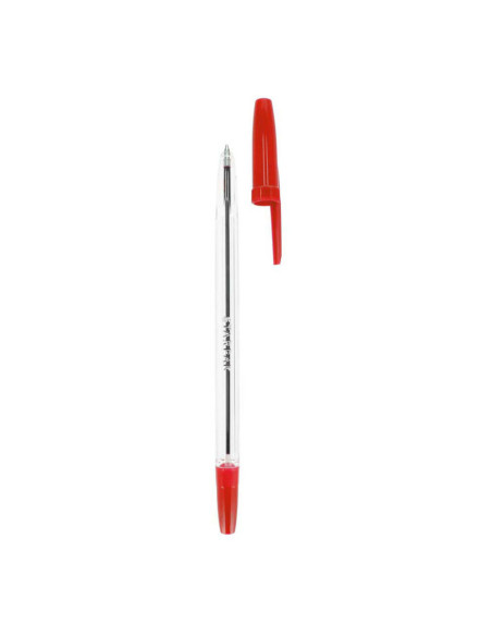 Rood schrijvende balpen met dop. In de set zitten 50 pennen.