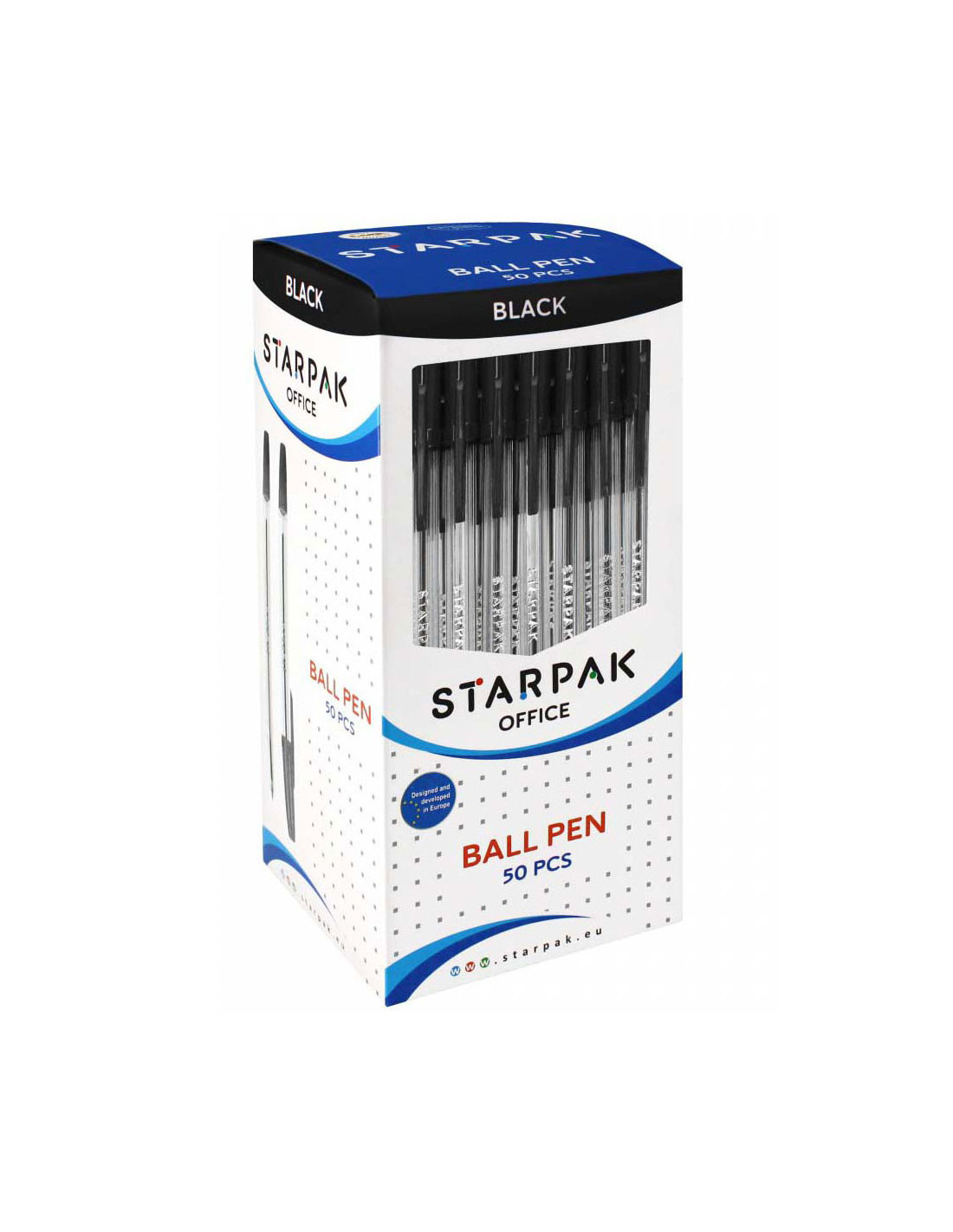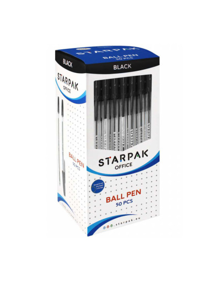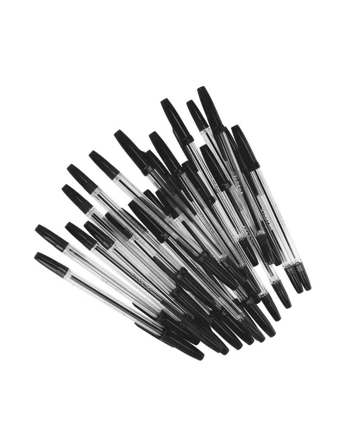Zwart schrijvende pennen met dop. De set bevat 50 pennen. Niet geschikt voor kinderen onder de 3 jaar.