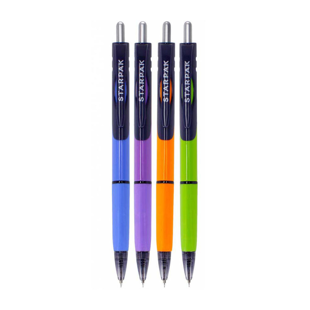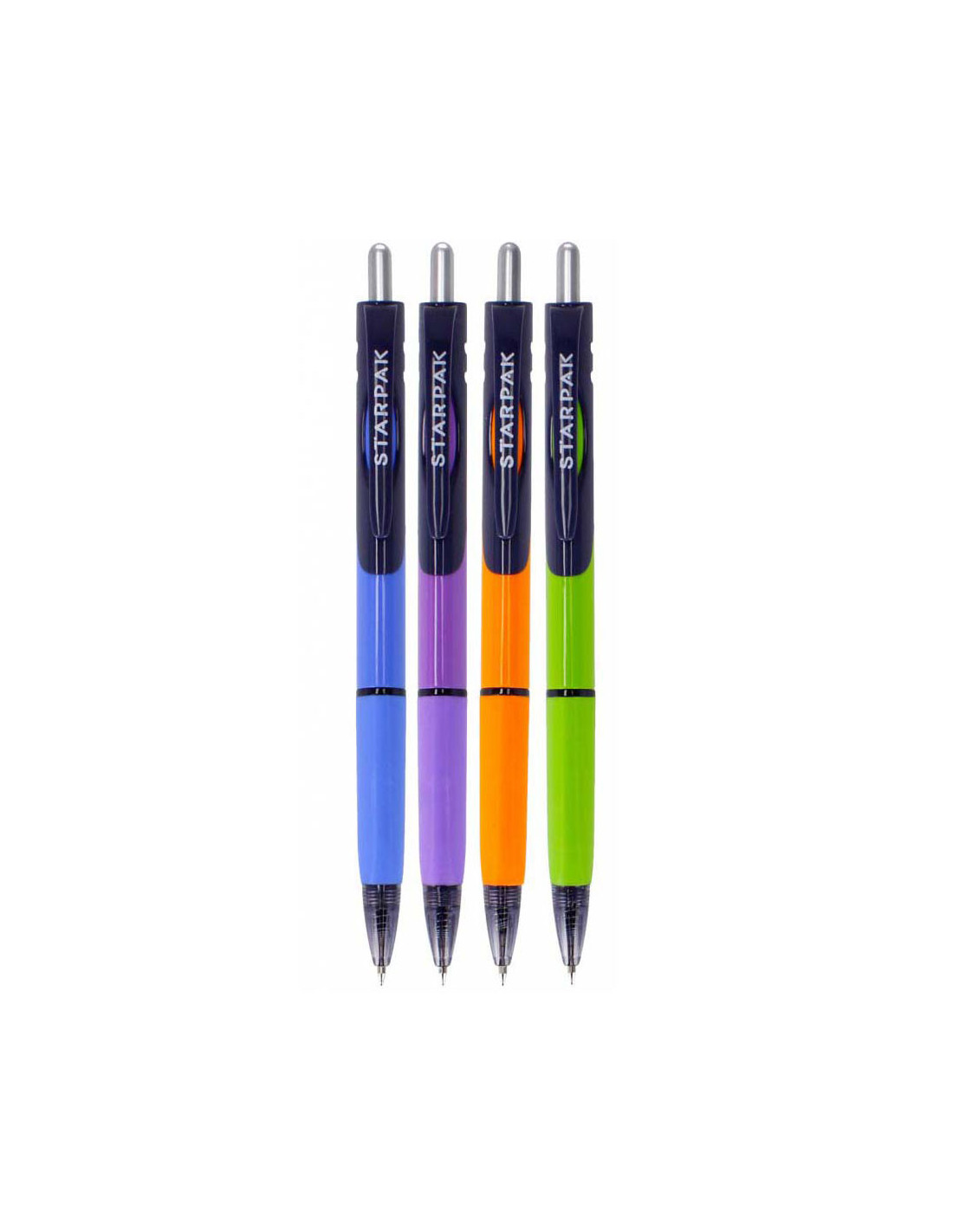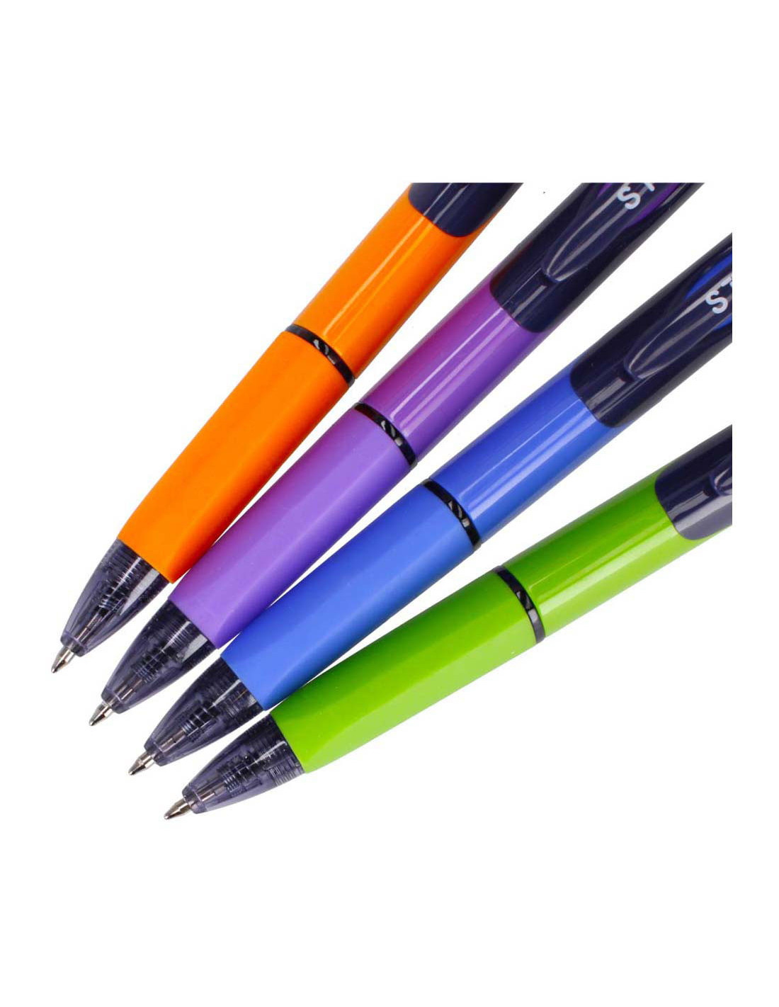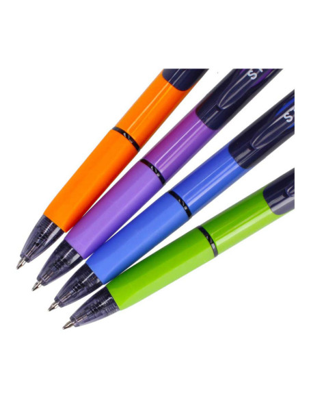 Intrekbare gekleurde balpen. De gekleurde pen heeft een schrijfdikte van 0,7 mm en is 15 x 14 x 14 cm groot. Geschikt voor kinderen vanaf 3 jaar.