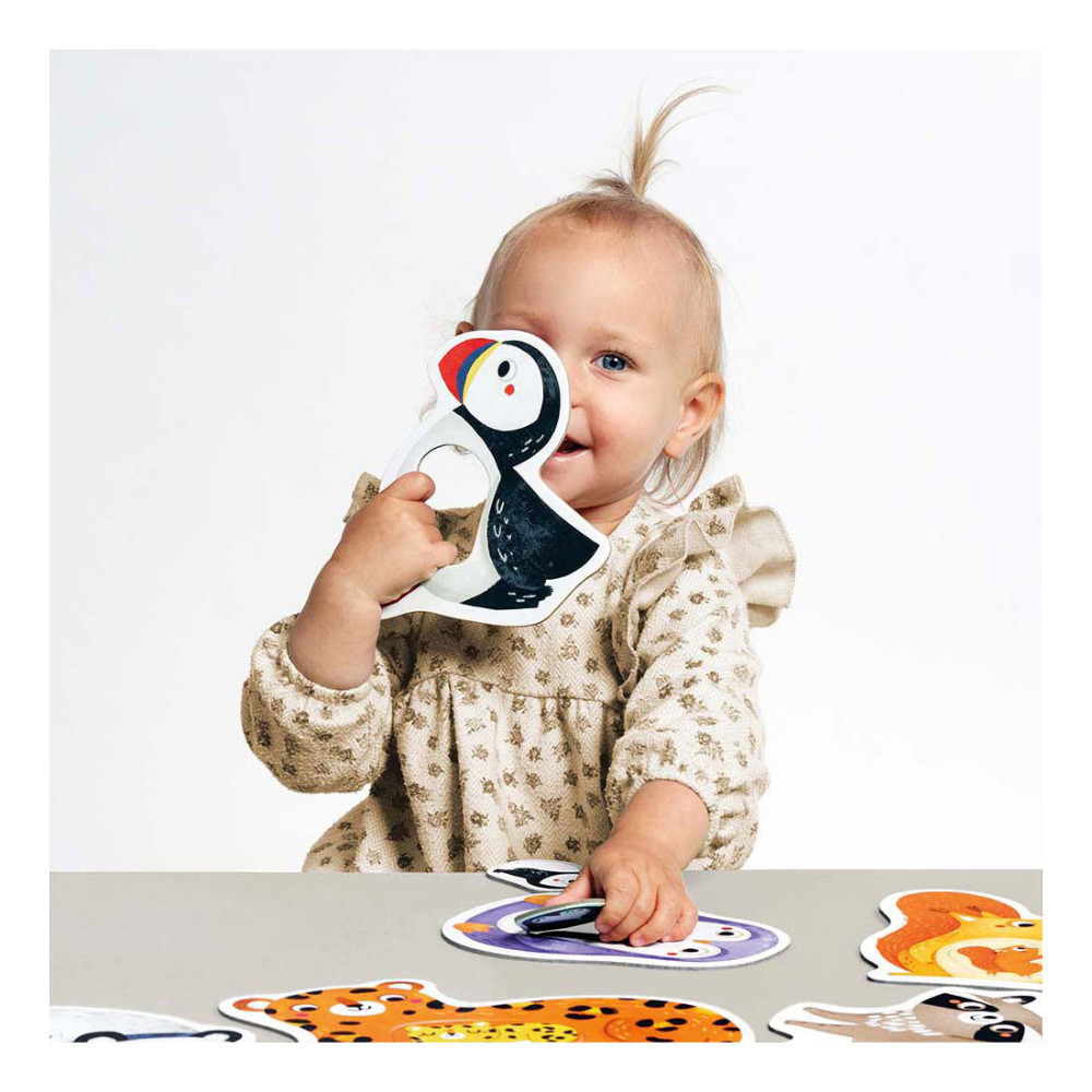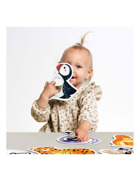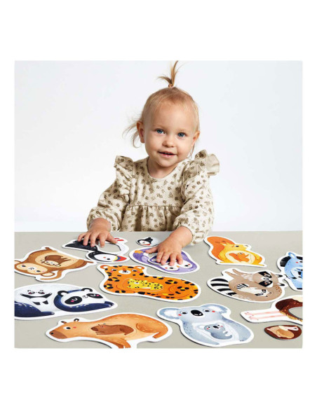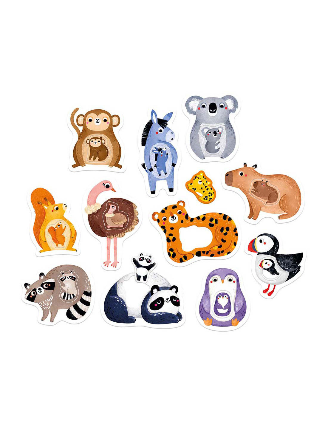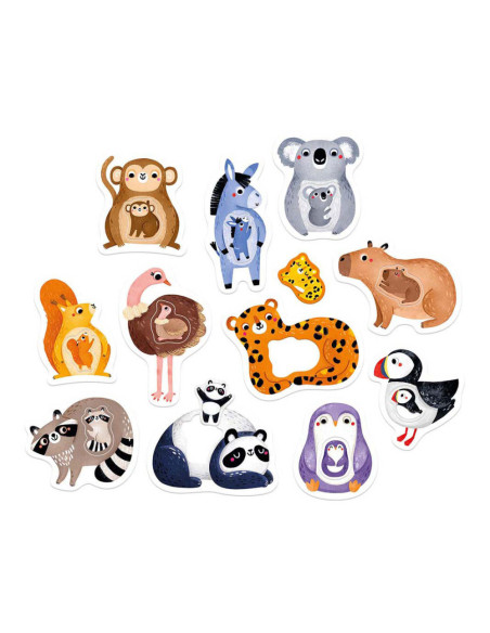 Deze educatieve puzzels zijn de perfecte eerste set voor kleine handjes! Speel mee terwijl je stukjes past op grote puzzelborden met leuke uitsparingen in het midden. Deze set bevat 11 tweedelige puzzels met warme, humoristische illustraties van babydieren en hun mama's waar kinderen dol op zullen zijn. Spelen met deze puzzels bouwt de fijne motoriek, observatievaardigheden, spraak, denkvermogen en verbeelding op.