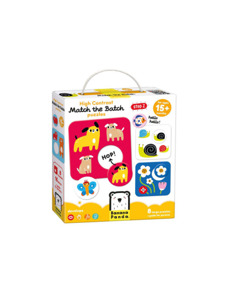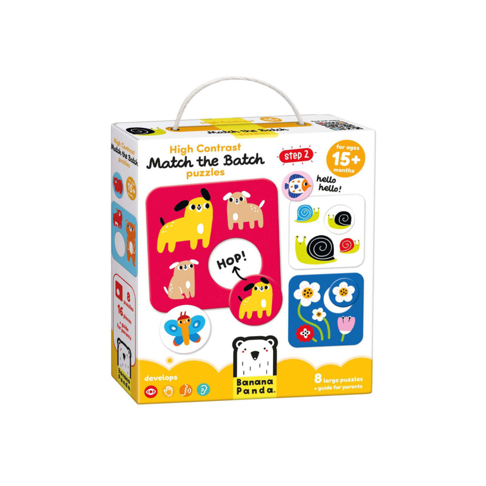 Houd de geest van uw kleintje bezig en stimuleer zijn cognitieve vaardigheden met onze prachtige, progressieve puzzels van Banana Panda! Een tweedelige contrasterende puzzel is een geweldig cadeau-idee voor een kleine ontdekkingsreiziger. Ze kijken en denken even na. Welke cirkels passen bij de platen en waarom? Grote contrastpuzzels hebben prachtige illustraties en er kunnen veel spelletjes mee worden gemaakt om de zintuigen, de kleine motoriek en het logisch denken te ontwikkelen.