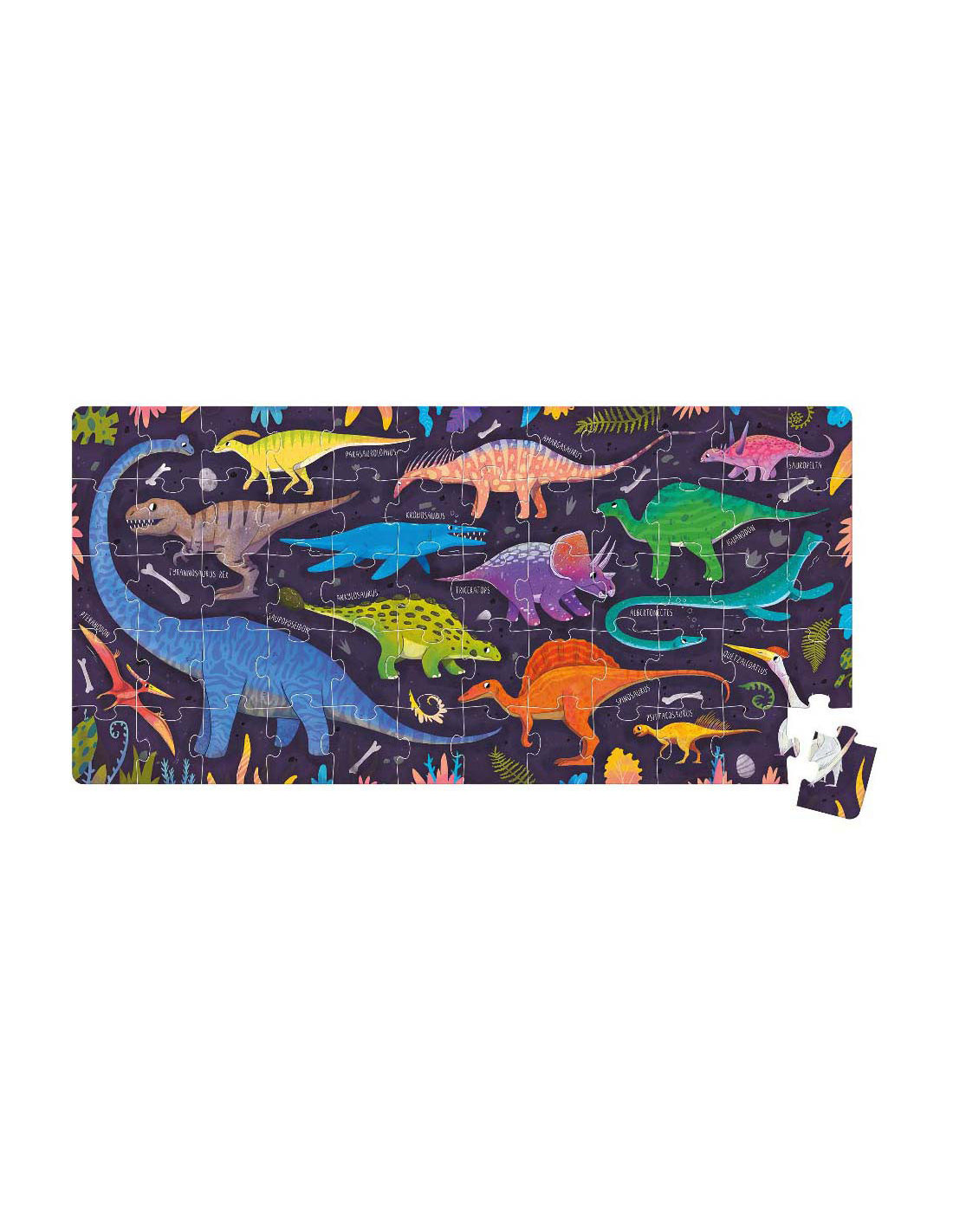 14 speelse dinosaurussen en andere prehistorische reptielen nodigen je uit voor een leuk avontuur dat je observatievermogen, fijne motoriek en verbeeldingskracht ontwikkelt. De grote puzzel bestaat uit 60 stukjes. Ken jij alle grote reptielen? Leer er zoveel mogelijk over! Deze puzzel is een must-have voor jonge prehistorische liefhebbers!
