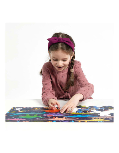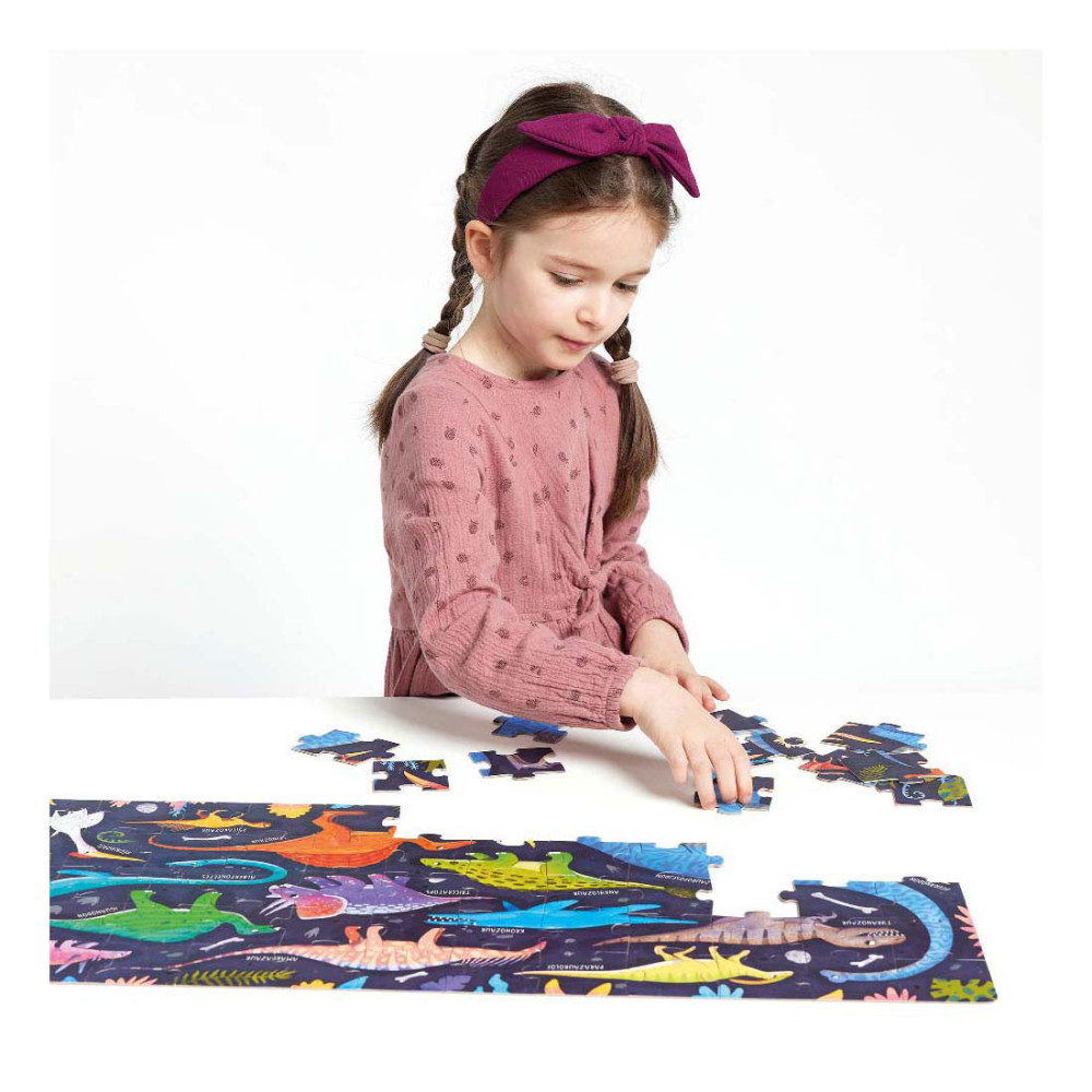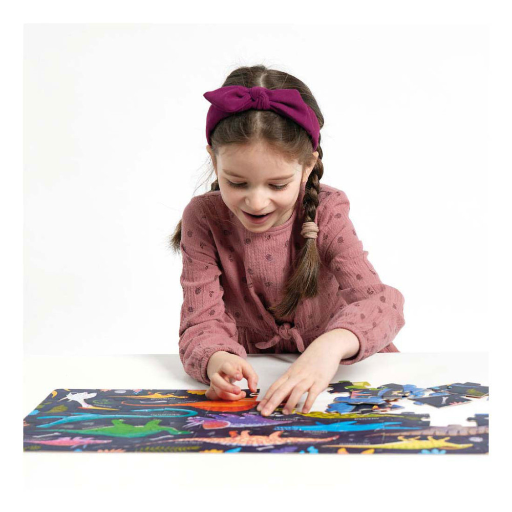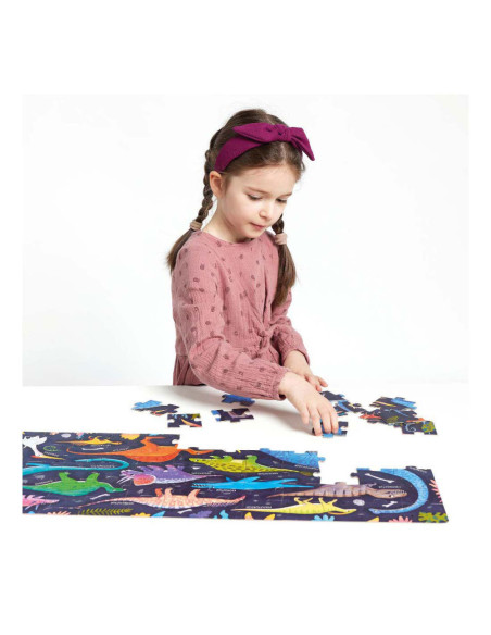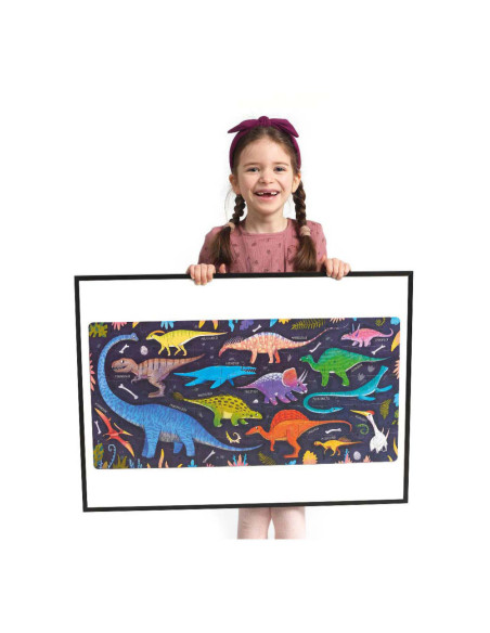 Veel plezier samen! Leg de puzzel in elkaar en bekijk de illustratie aandachtig om de prehistorische roedel te leren kennen. Ken jij alle reptielen? Er zijn talloze ideeën voor leuke activiteiten, geïnspireerd op de puzzel: je kunt je eigen dinosaurussen bedenken, beweeg zoals zij, of verzin verhalen over de personages in de illustratie. De in elkaar gezette puzzel is een geweldige decoratie voor de kamer van een jonge paleontoloog. Dit is een must-have en een geweldig cadeau-idee voor de jongste liefhebbers van de prehistorie.