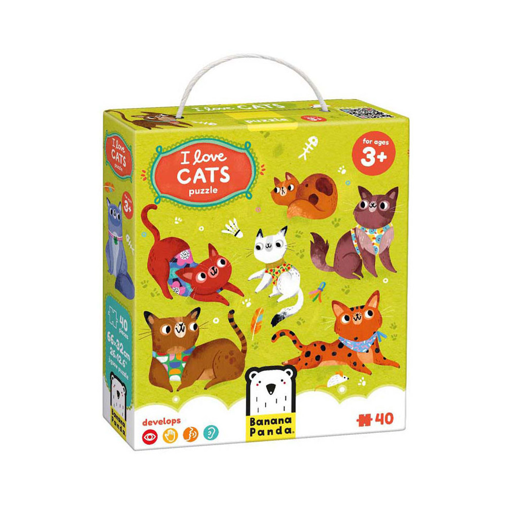 Veel plezier samen, miauw! Leg de puzzel in elkaar en bekijk de illustratie om de Banana Panda kittens te leren kennen. Bedenk een naam voor elk kitten! Benoem de kleuren, lichaamsdelen van de katten en andere details - dit is een geweldige manier om nieuwe woorden te leren. Meer over wat onze spinnende vriendjes nodig hebben om gelukkig te zijn. Er zijn talloze ideeën voor ontwikkelend spel - laat je fantasie de vrije loop! Je kunt bijvoorbeeld spelen als katten of ze tekenen. De in elkaar gezette puzzel kan een prachtige decoratie worden voor een kinderkamer. Dit is een must-have en een geweldig cadeau-idee voor de jongste kattenliefhebbers.