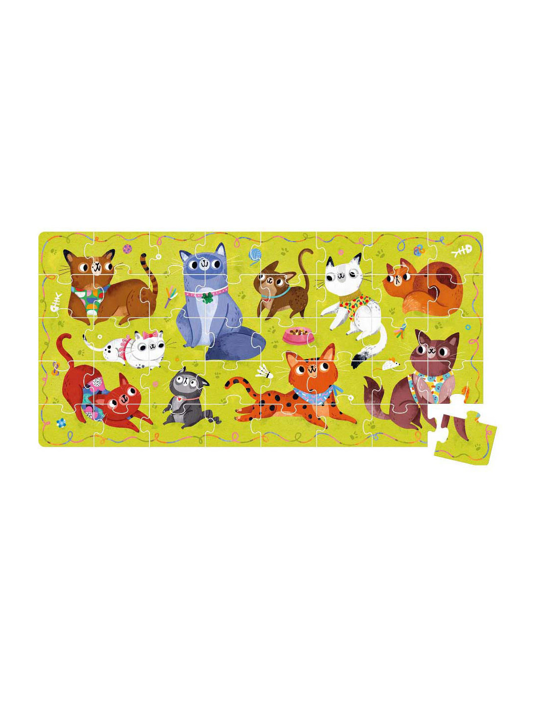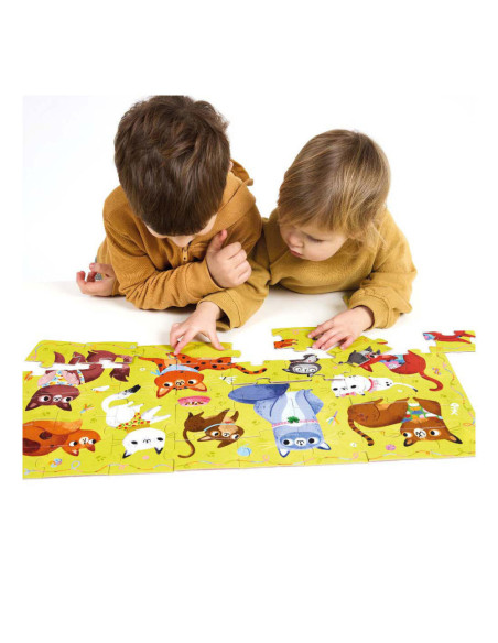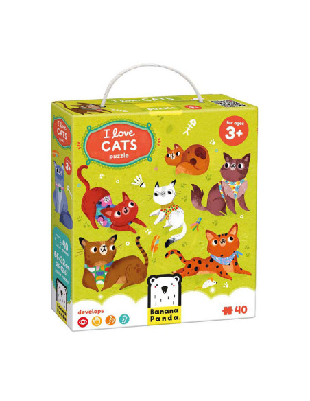 Miauw, hoe gaat het met je? 10 schattige, elegante katten en kittens nodigen je uit voor een leuk avontuur dat je fijne motoriek, observatievermogen en verbeeldingskracht zal verbeteren. Deze grote puzzel bestaat uit 40 stukjes. Een geweldig idee voor een eerste uitdagende puzzel voor gevorderde puzzelaars. Een must-have in de kamer van jonge kattenliefhebbers!