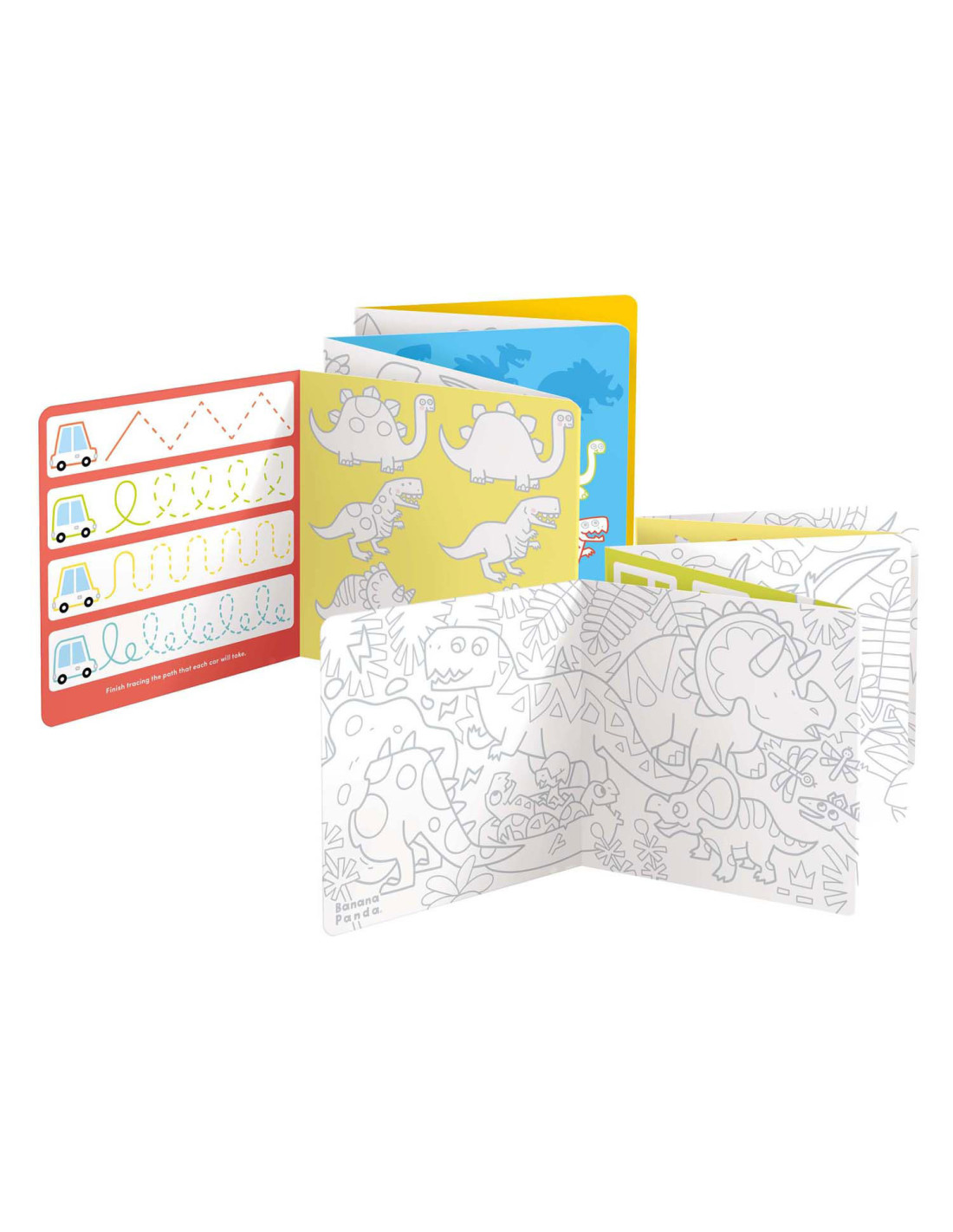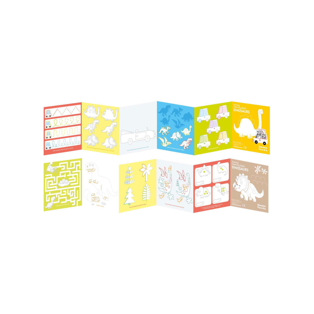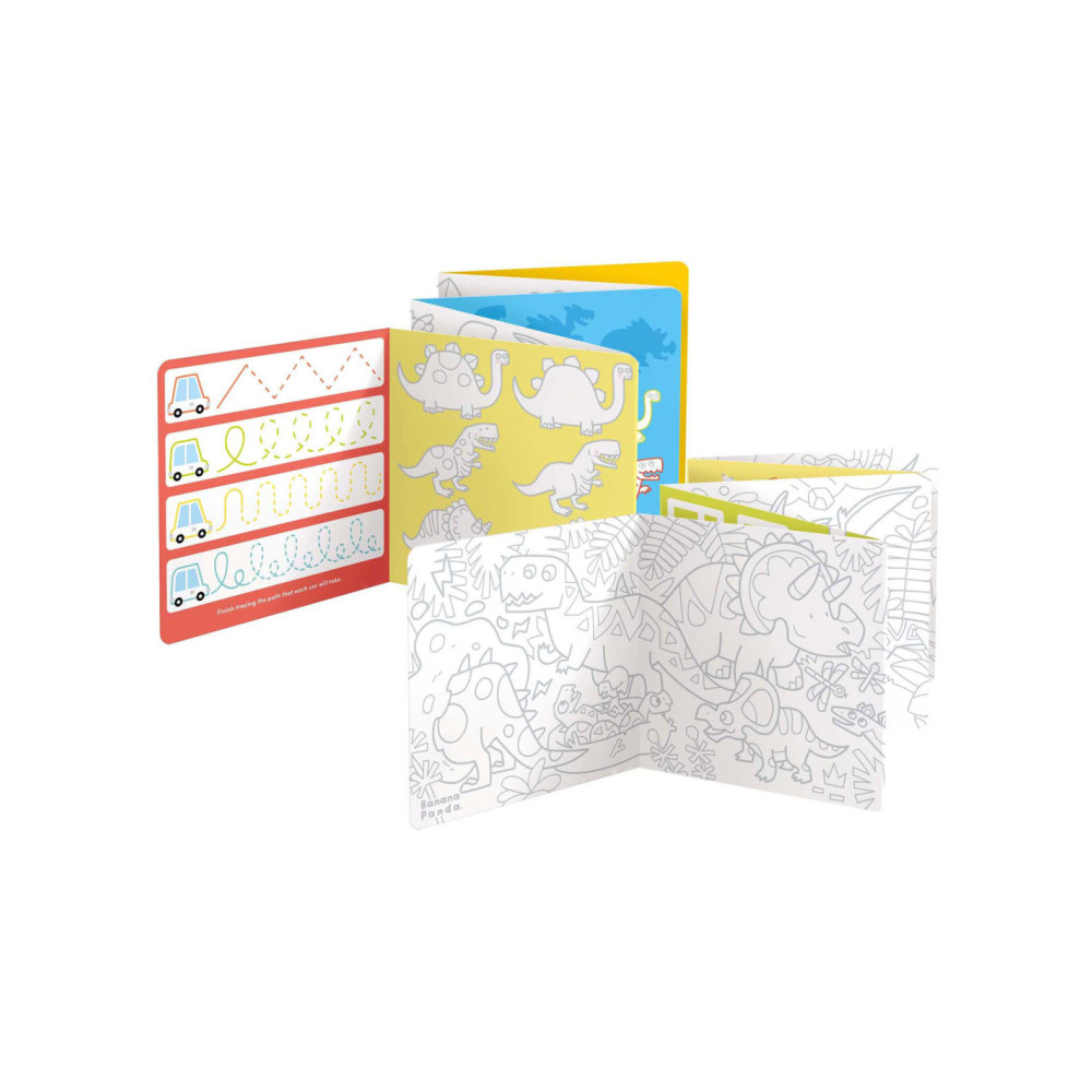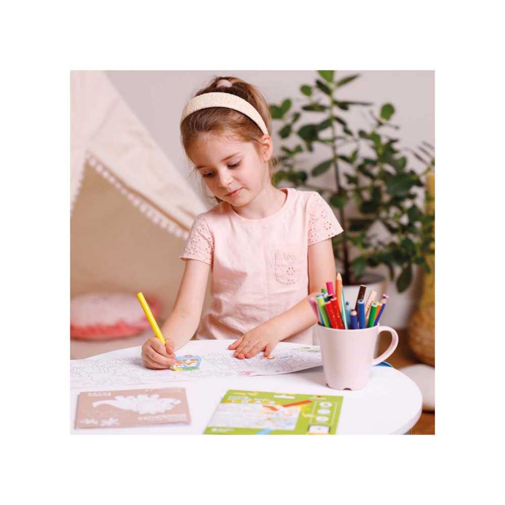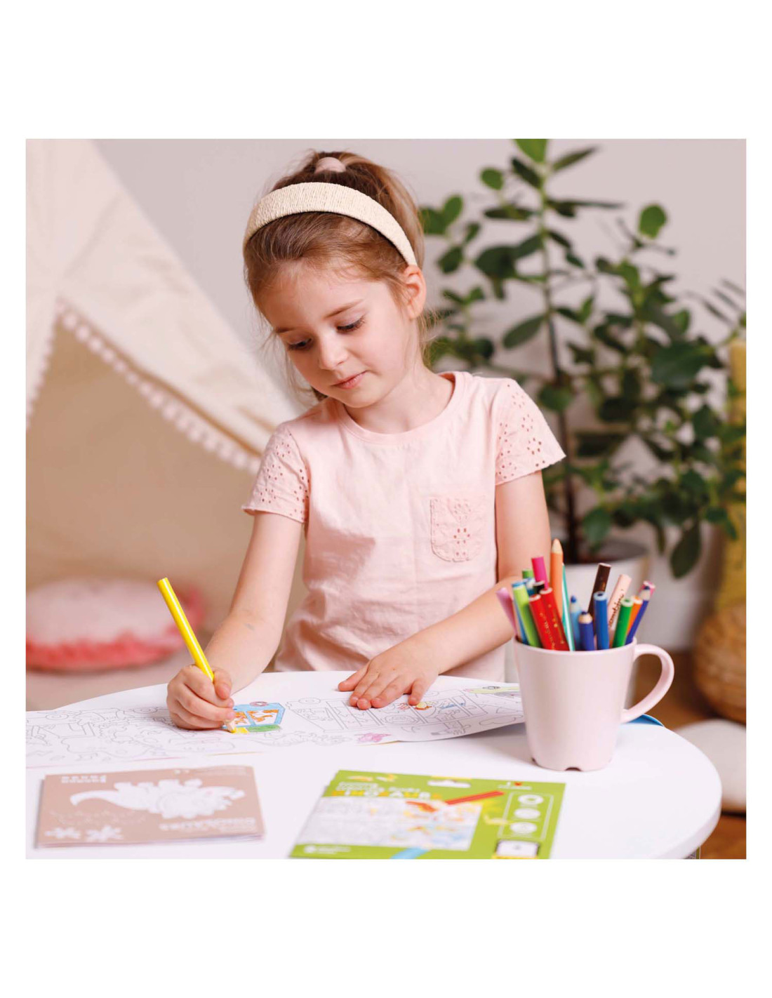 Deze creatieve set bevat 2 lange (95 cm!) accordeonboeken met 2 panoramafoto's om in te kleuren, plus talloze creatieve en leerzame oefeningen.