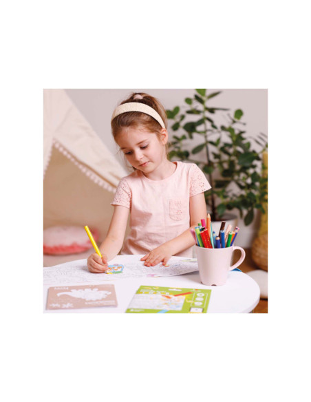 Vol humoristische, leuke details en lieve personages moedigen de illustraties kinderen aan om hun kleurpotloden op te pakken. Laat je kind creatief spelen, kleuren combineren zoals het wil en tekenen met zijn of haar fantasie. Creatief zijn is waar het om draait. Help je kind indien nodig bij het maken van de oefeningen. Gebruik het kleurboek als inspiratie om je kennis over dinosaurussen te vergroten.