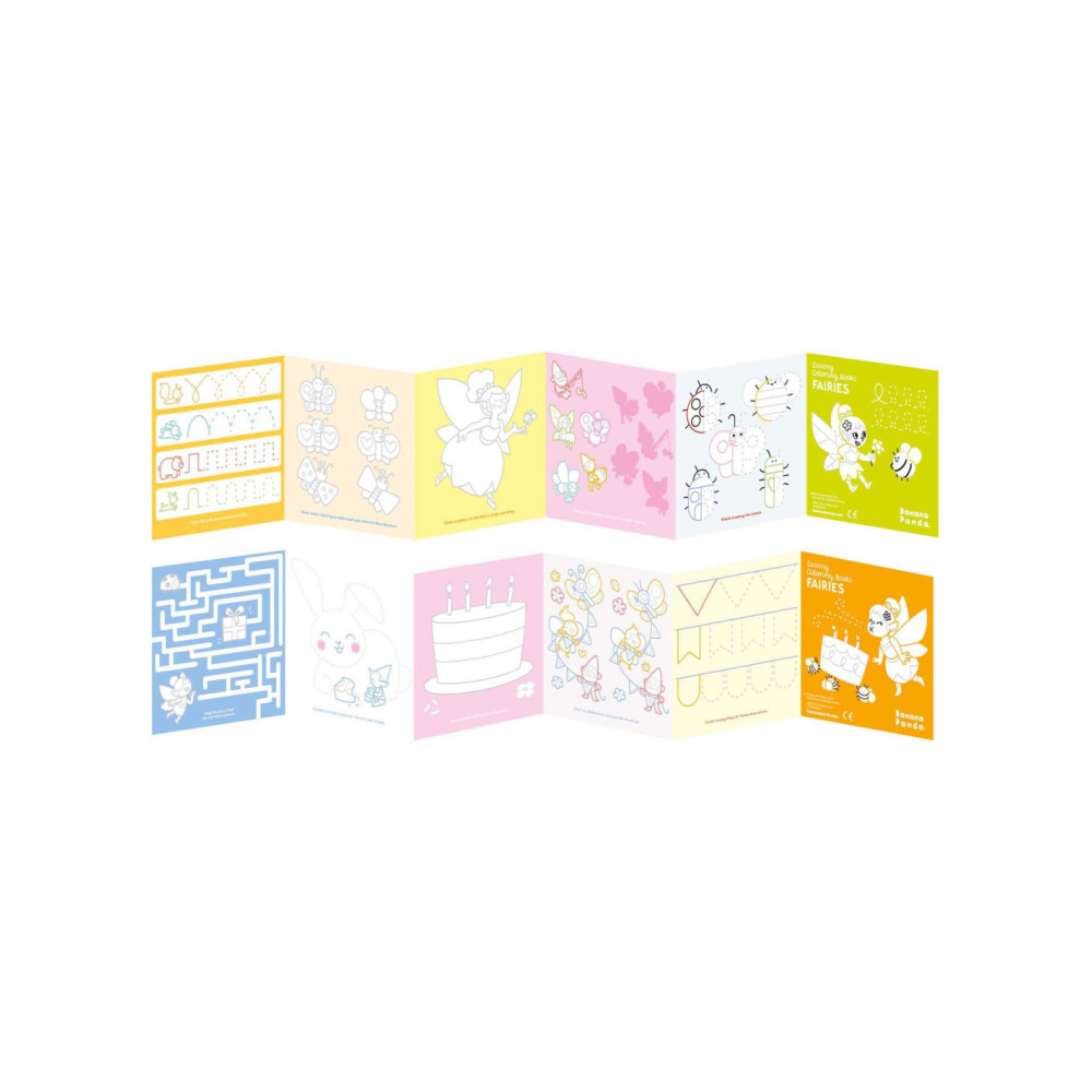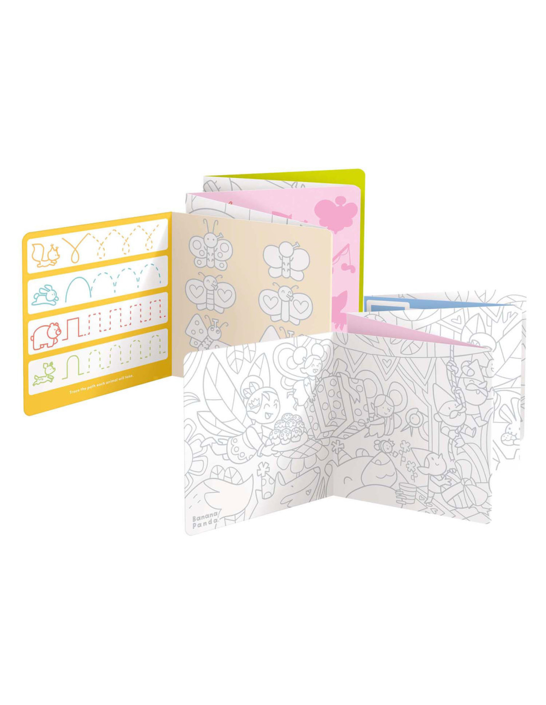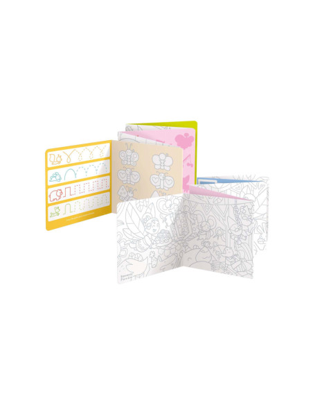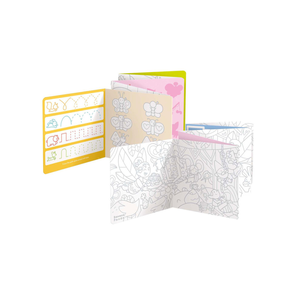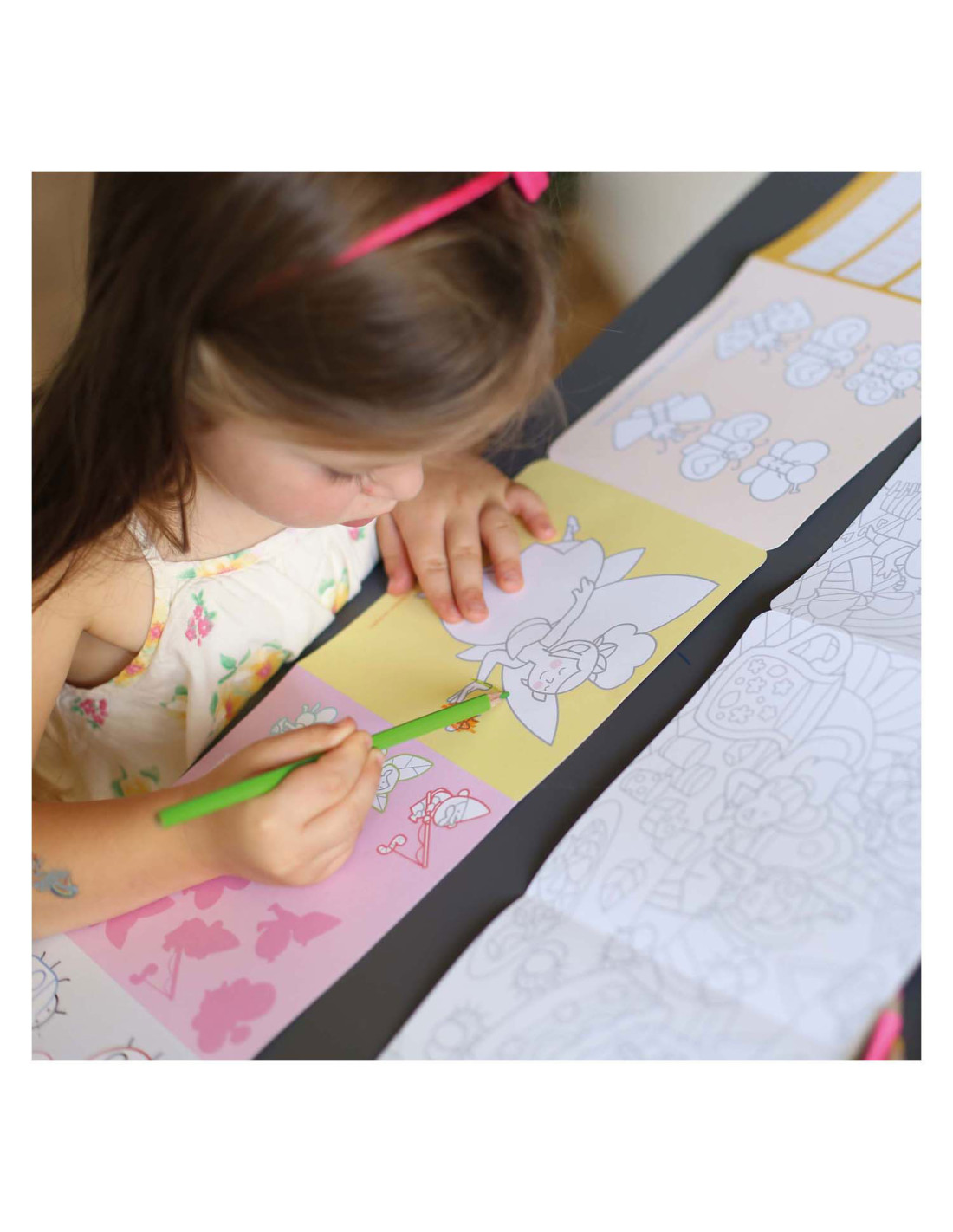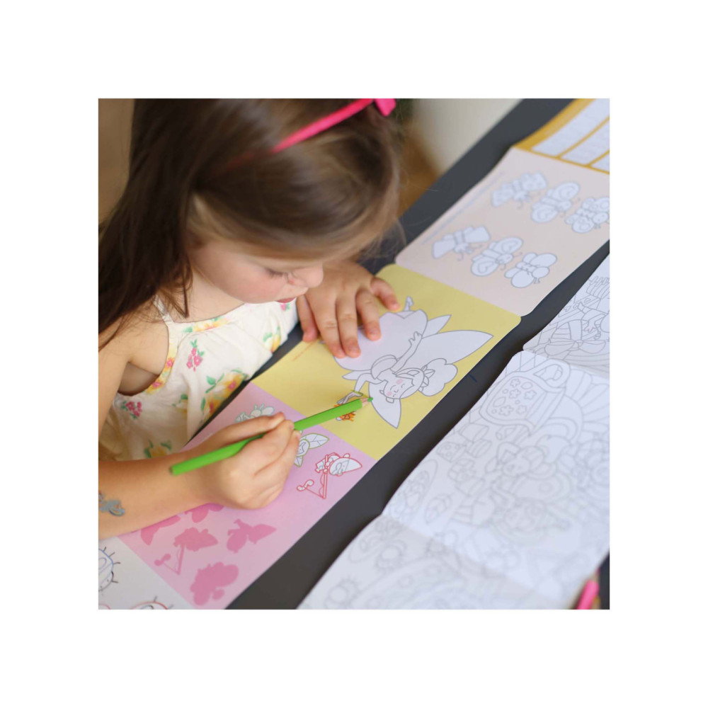 Deze creatieve set bevat 2 lange (95 cm!) accordeonboeken met 2 panoramafoto's om in te kleuren, samen met talloze creatieve en leerzame oefeningen.