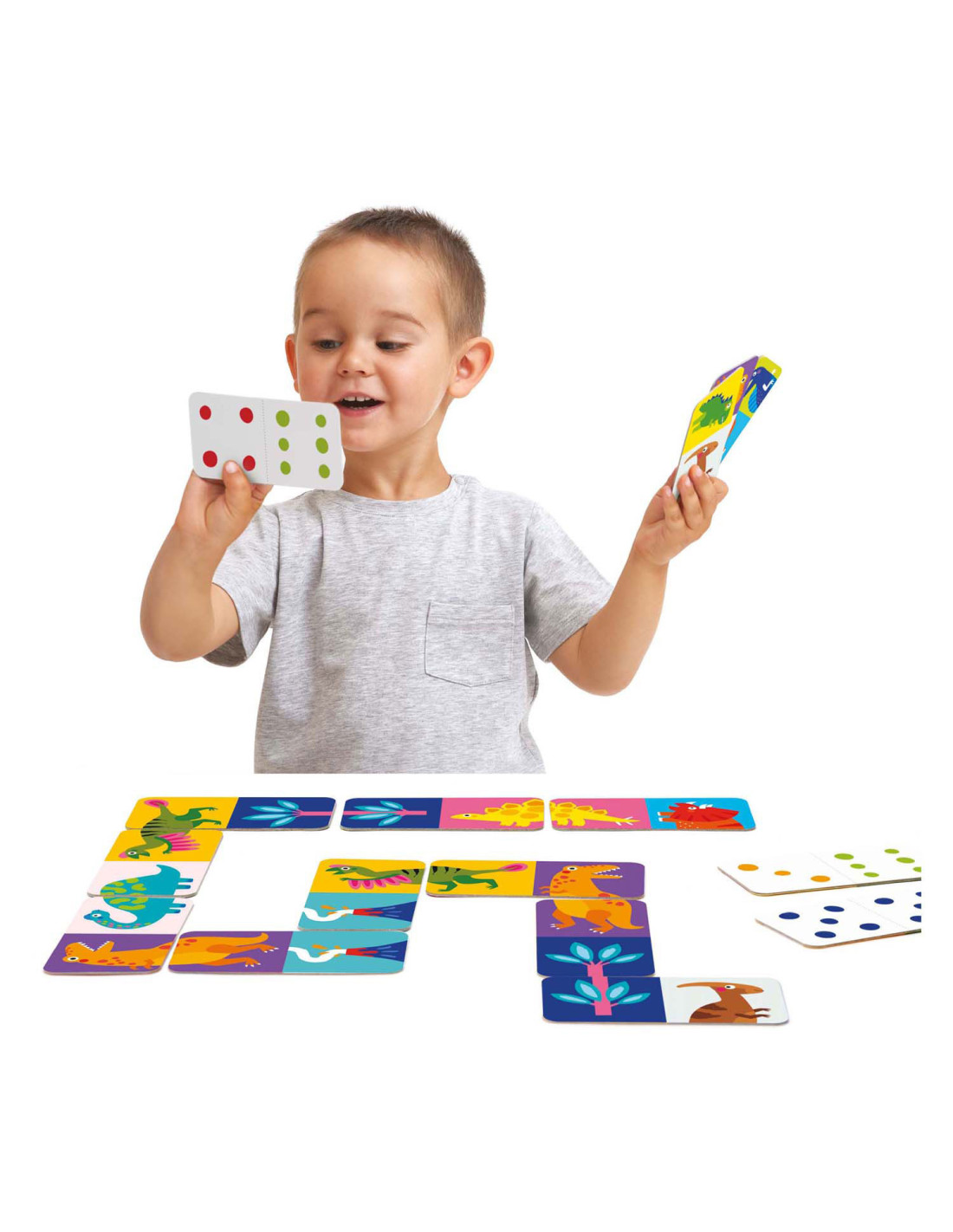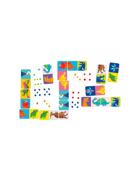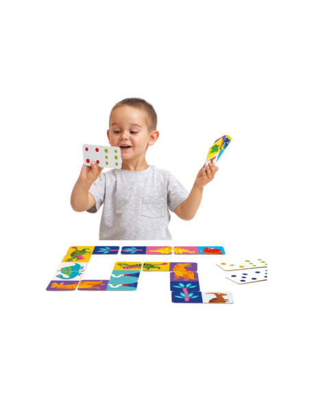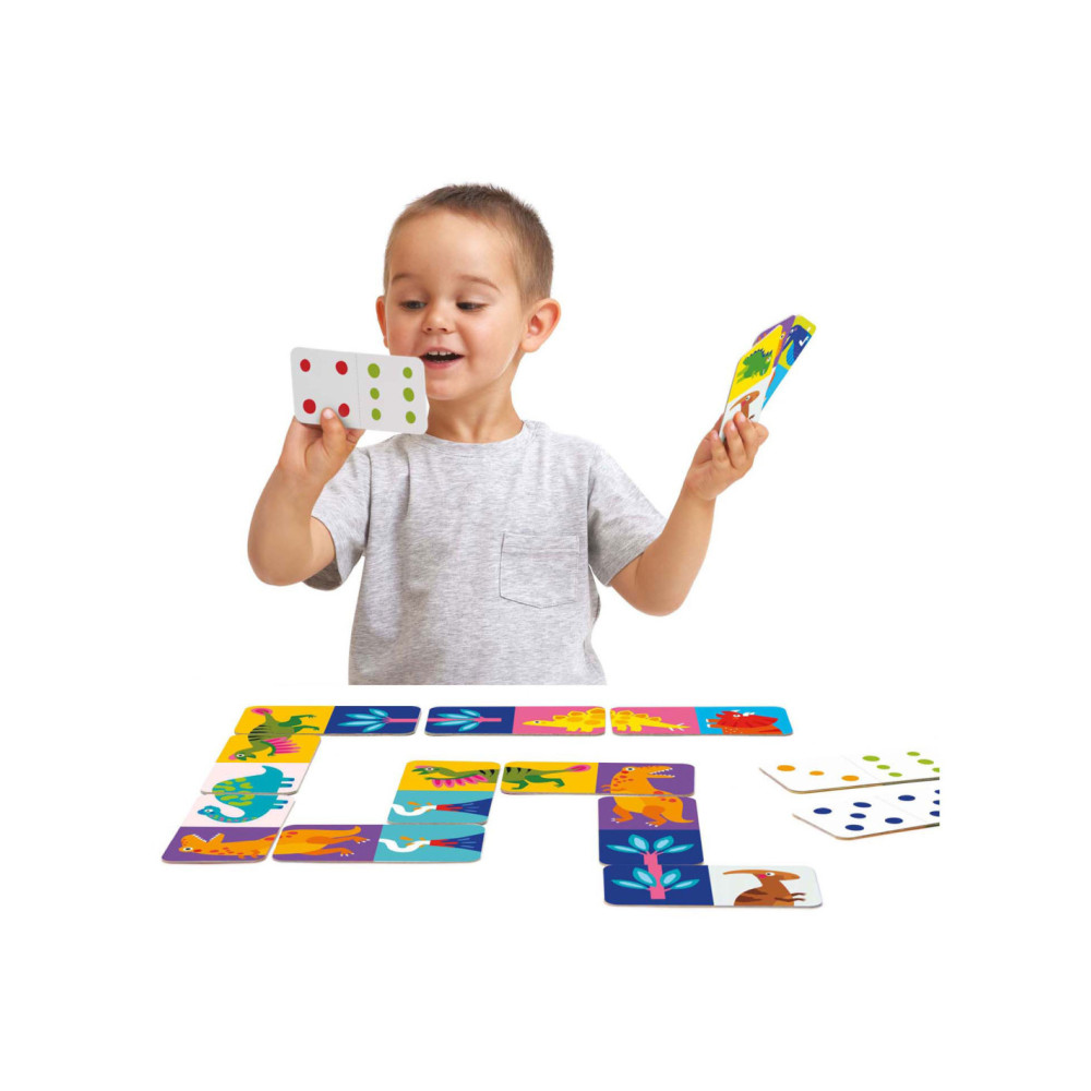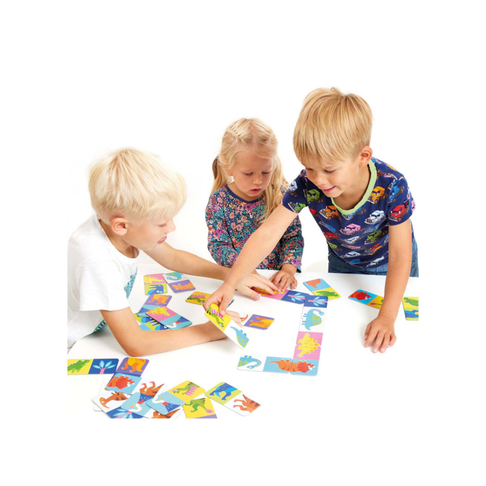 Dinoplezier! Plaatjesdomino is zowel een puzzel als een spel dat met je kind meegroeit.