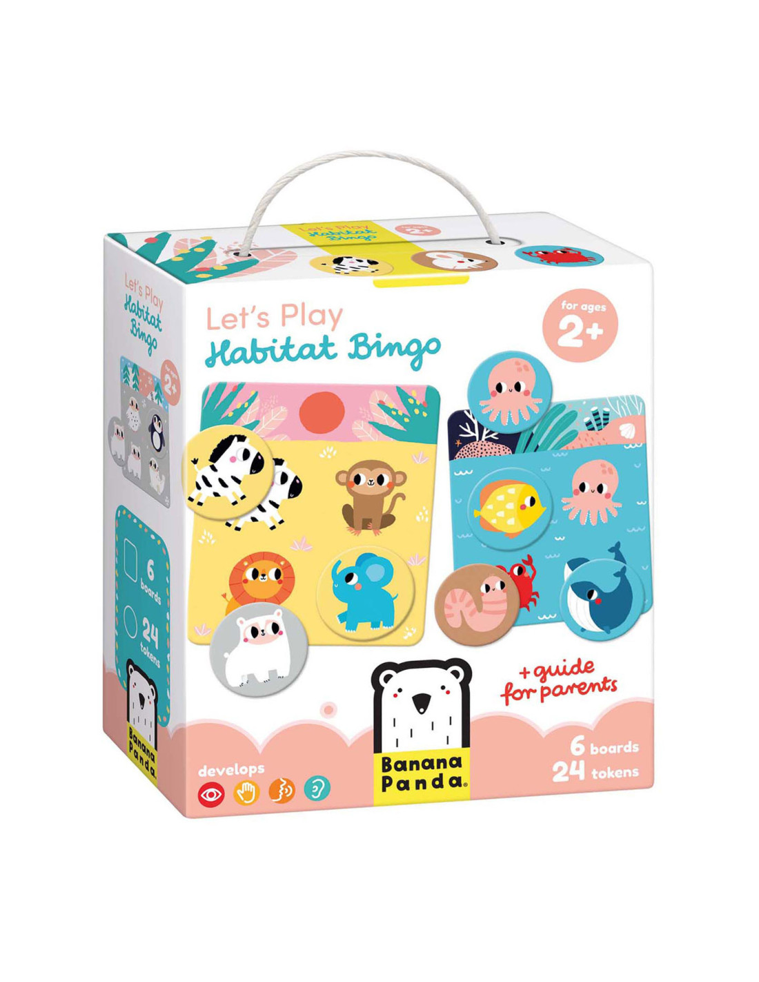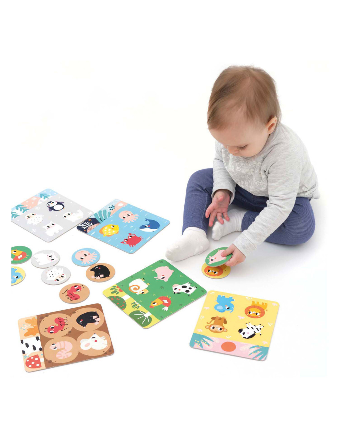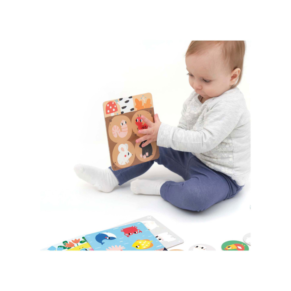 De set bevat 6 borden en 24 grote speelfiguren die je in verschillende scenario's kunt combineren. Gebruik de borden en dierenfiguren voor veel educatieve spellen. Je kunt het klassieke bingospel spelen (de dierenfiches op de borden leggen), een van onze 30 spelideeën proberen of je eigen regels introduceren en van het spel genieten.