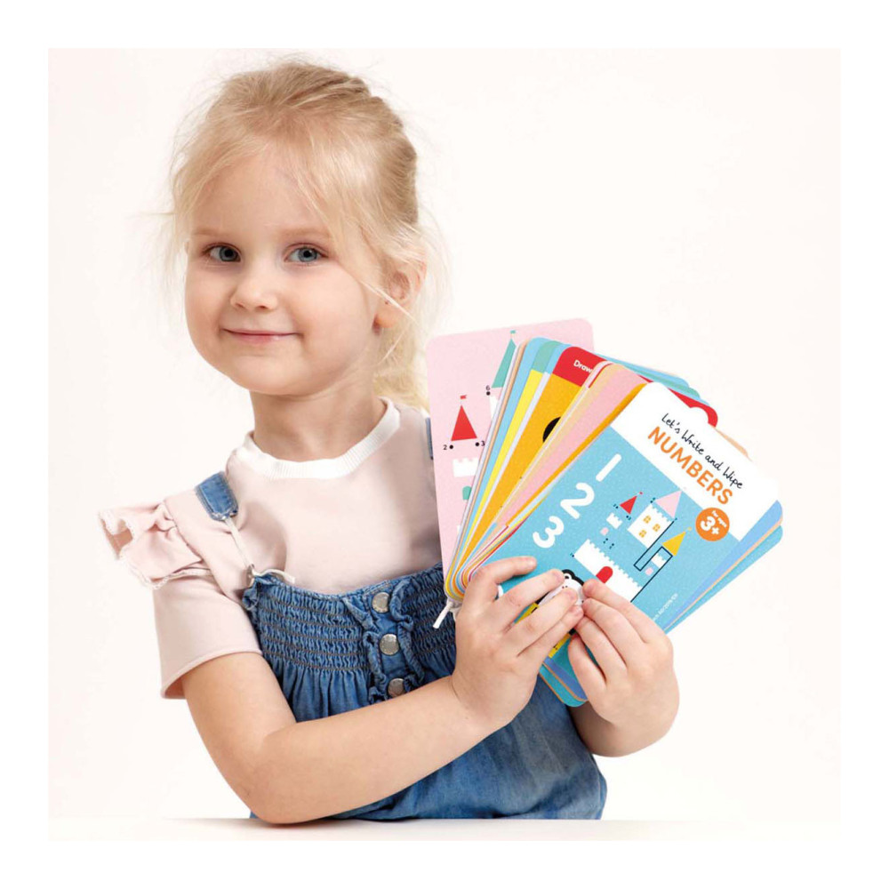 1, 2, 3… Tel met ons mee tot 10! Deze educatieve schrijf- en uitwisbare kaarten hebben 56 pagina's en bieden talloze creatieve en stimulerende opdrachten. Nieuwsgierige kleuters zullen er dol op zijn om vrijuit te krabbelen en eindeloos te spelen, terwijl ze hun kennis van getallen vergroten. Maar het allerbelangrijkste: ze zullen er veel plezier aan beleven!