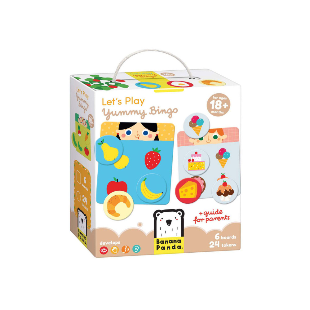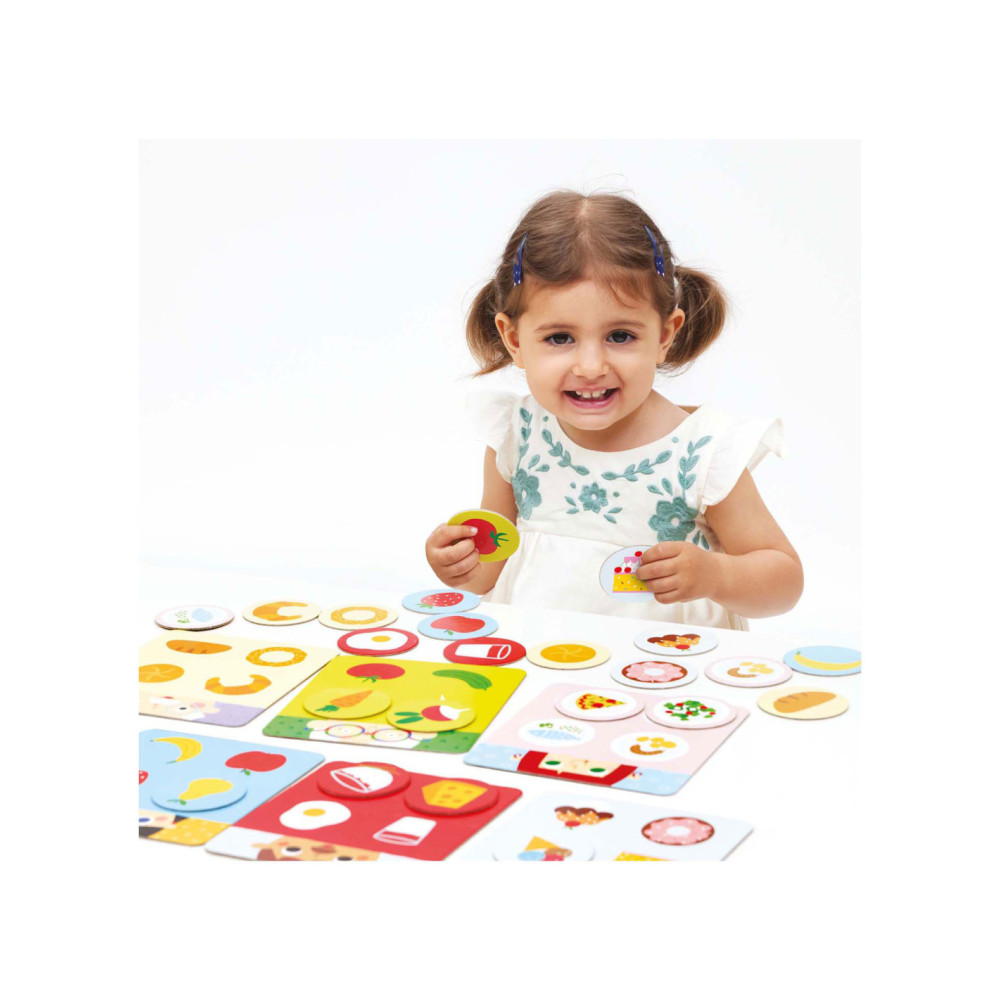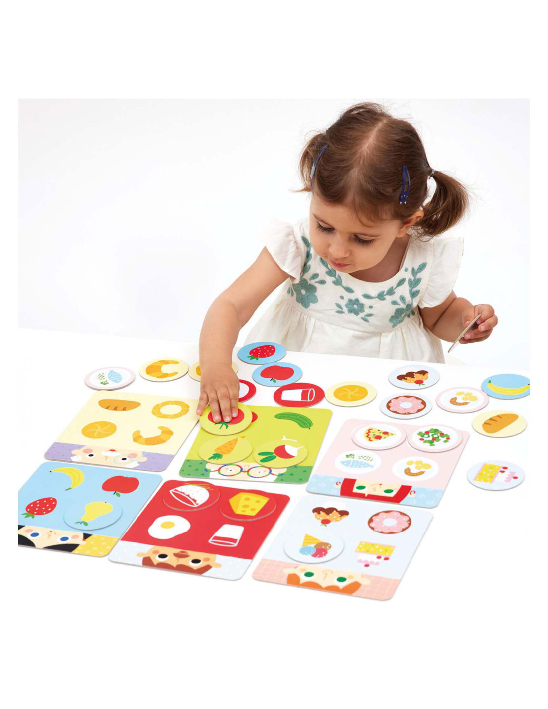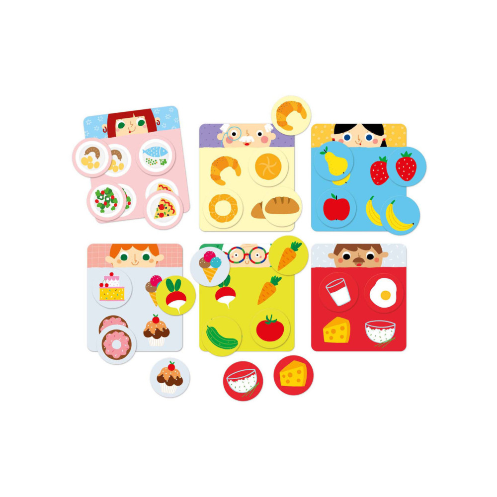 Je kunt: het klassieke bingospel spelen (de eet- en drinkfiches aan de borden koppelen), experimenteren met onze 30 spelideeën (moedig het kind bijvoorbeeld aan om verschillende etenswaren aan te wijzen en te benoemen, speel een raadspel met een kind, moedig het kind aan om samen met jou te koken, gebruik de illustraties voor een articulatiespel en nog veel meer) of introduceer je eigen regels en geniet van het ‘lekkere’ spel.
