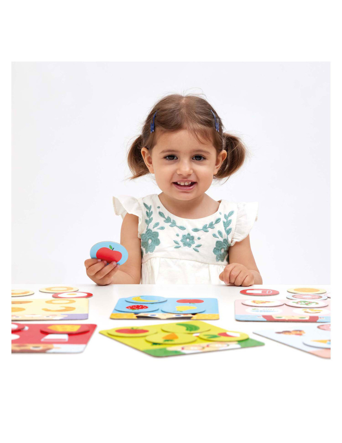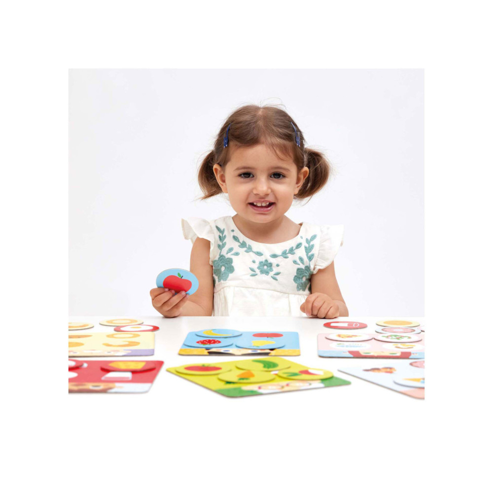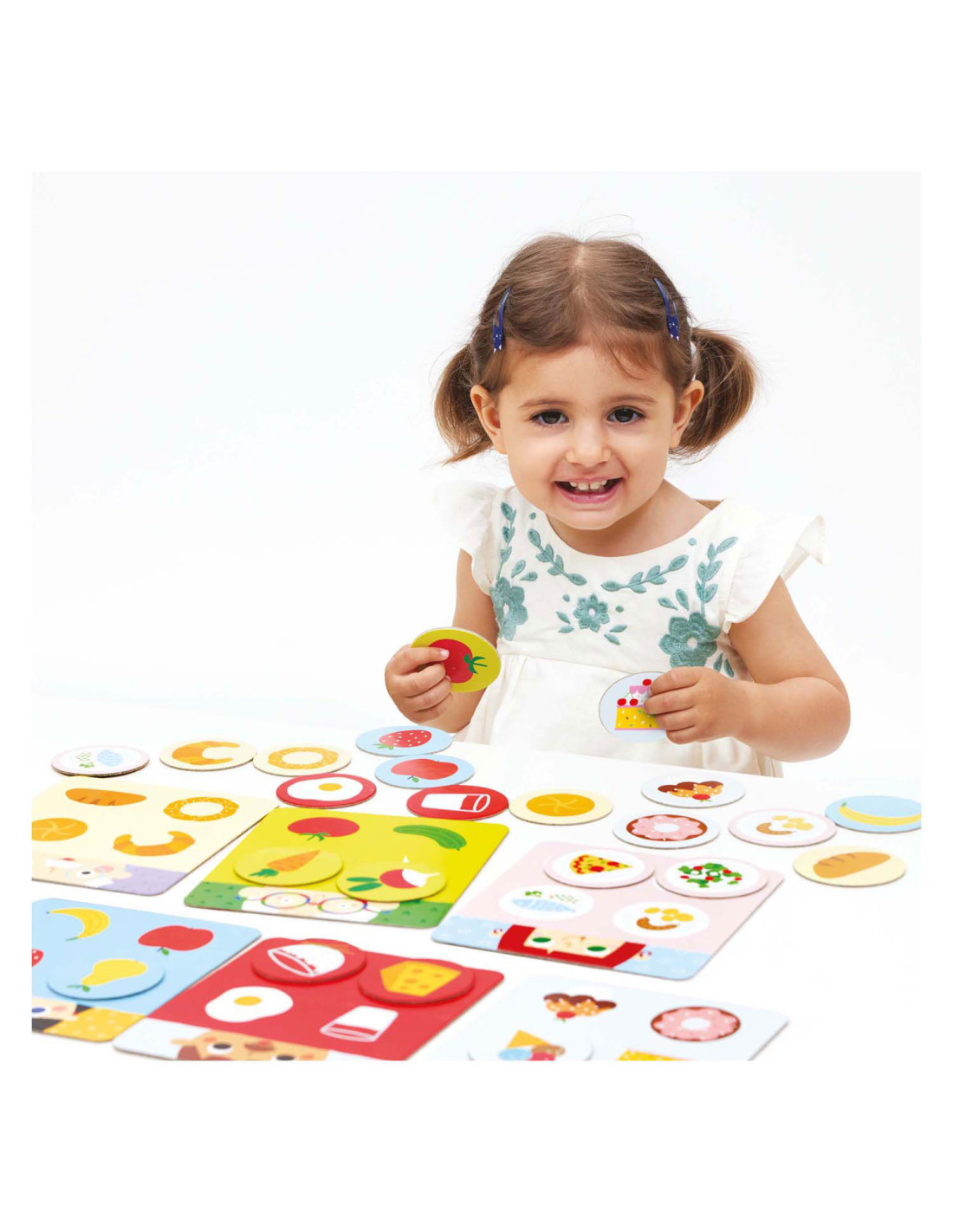 Je kunt: het klassieke bingospel spelen (de eet- en drinkfiches aan de borden koppelen), experimenteren met onze 30 spelideeën (moedig het kind bijvoorbeeld aan om verschillende etenswaren aan te wijzen en te benoemen, speel een raadspel met een kind, moedig het kind aan om samen met jou te koken, gebruik de illustraties voor een articulatiespel en nog veel meer) of introduceer je eigen regels en geniet van het ‘lekkere’ spel.
