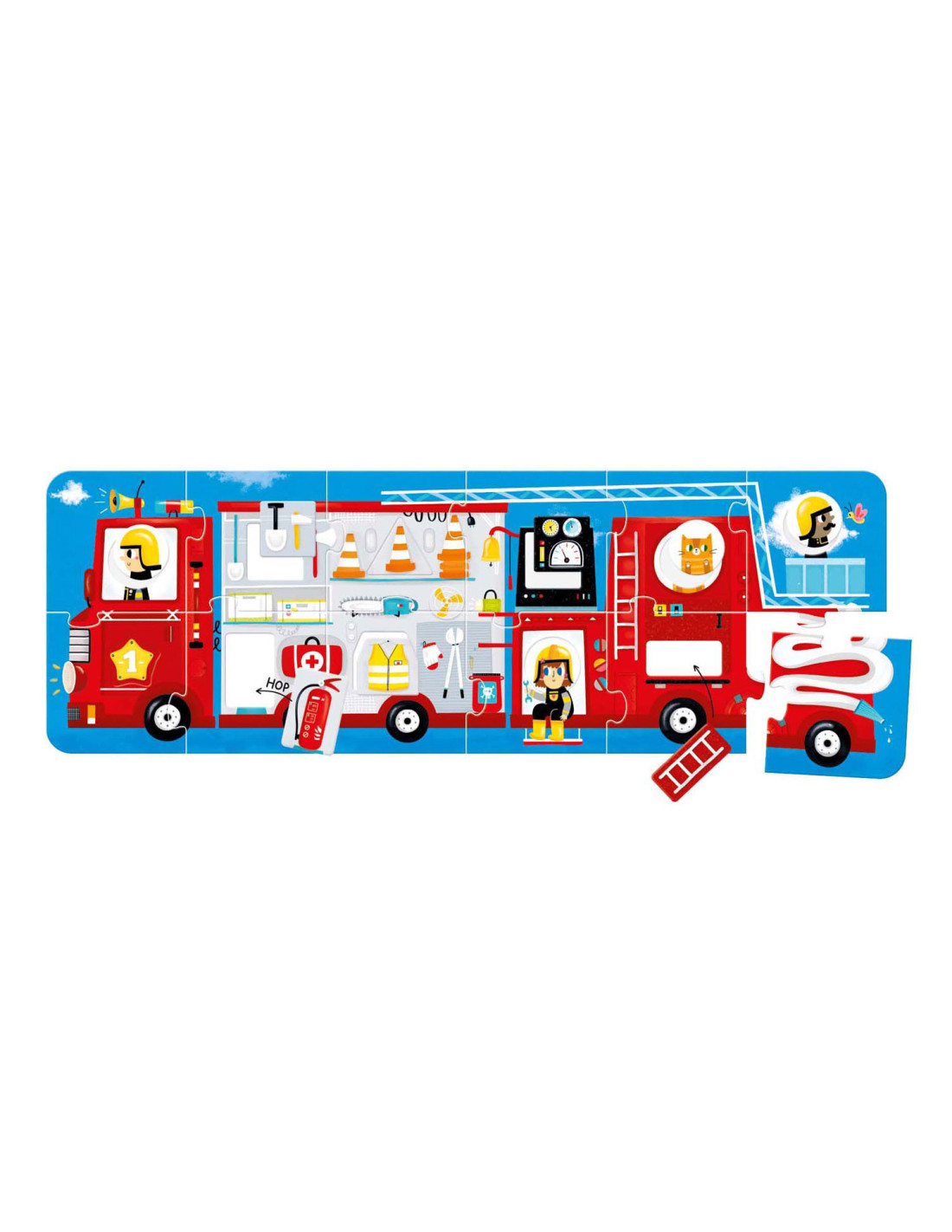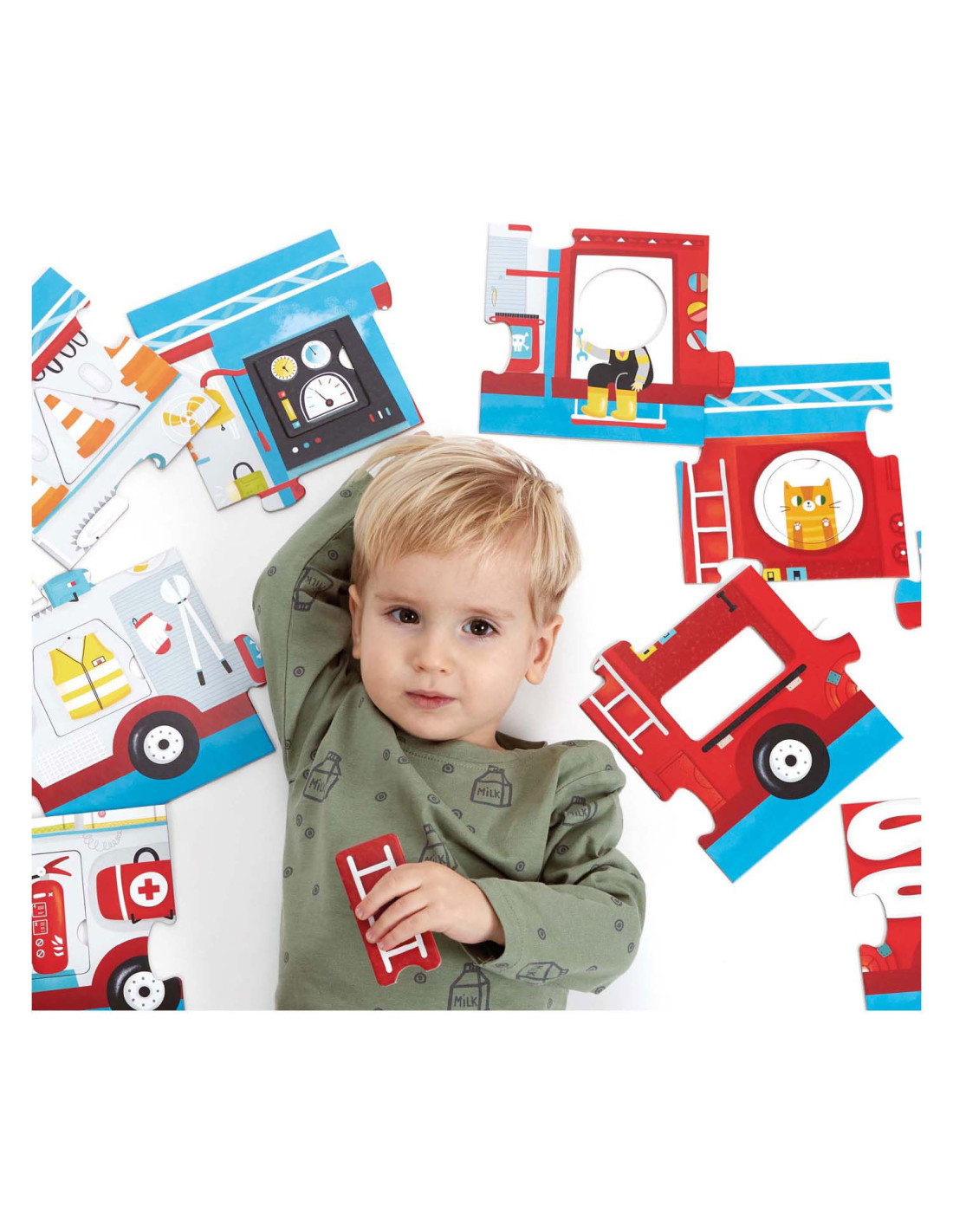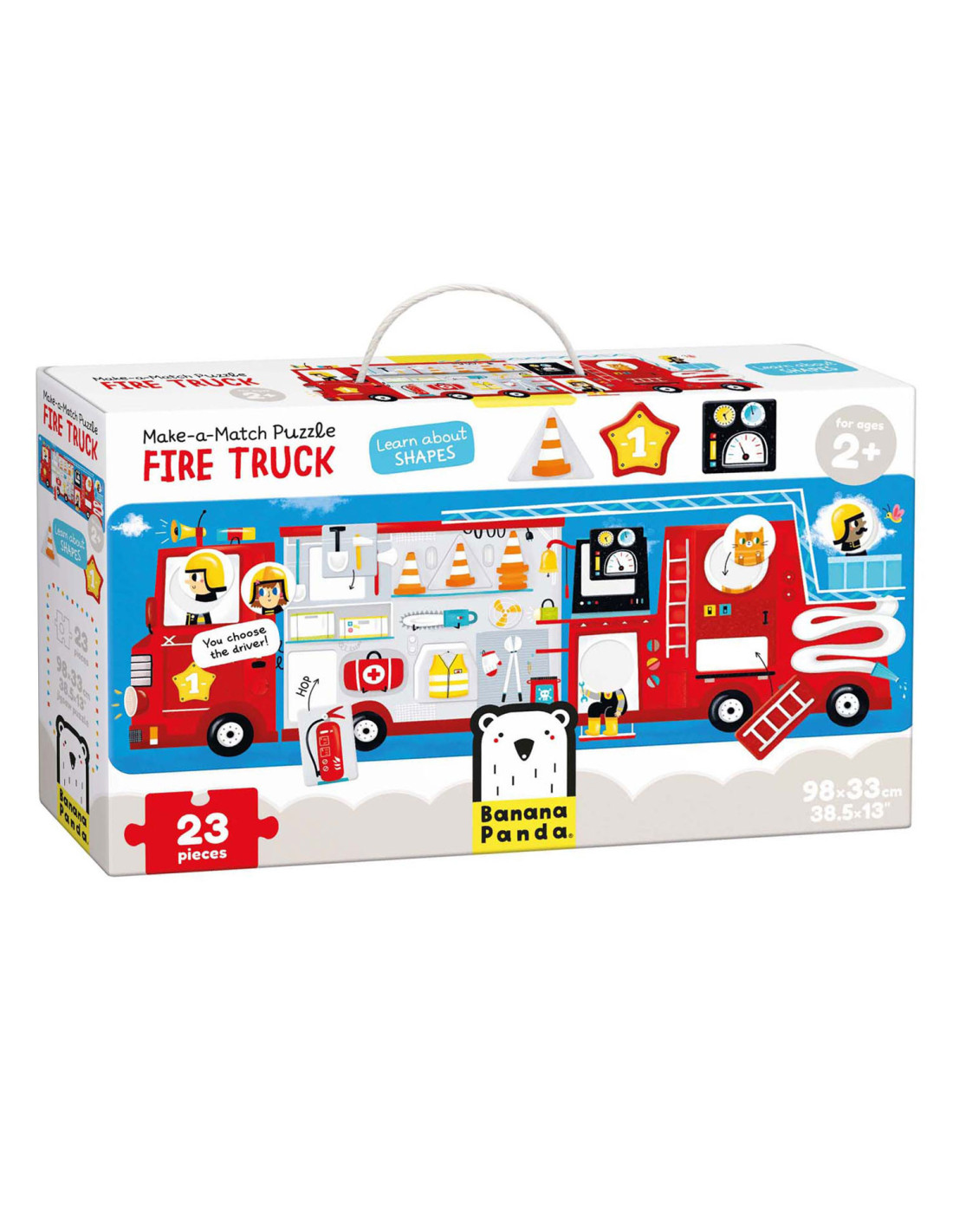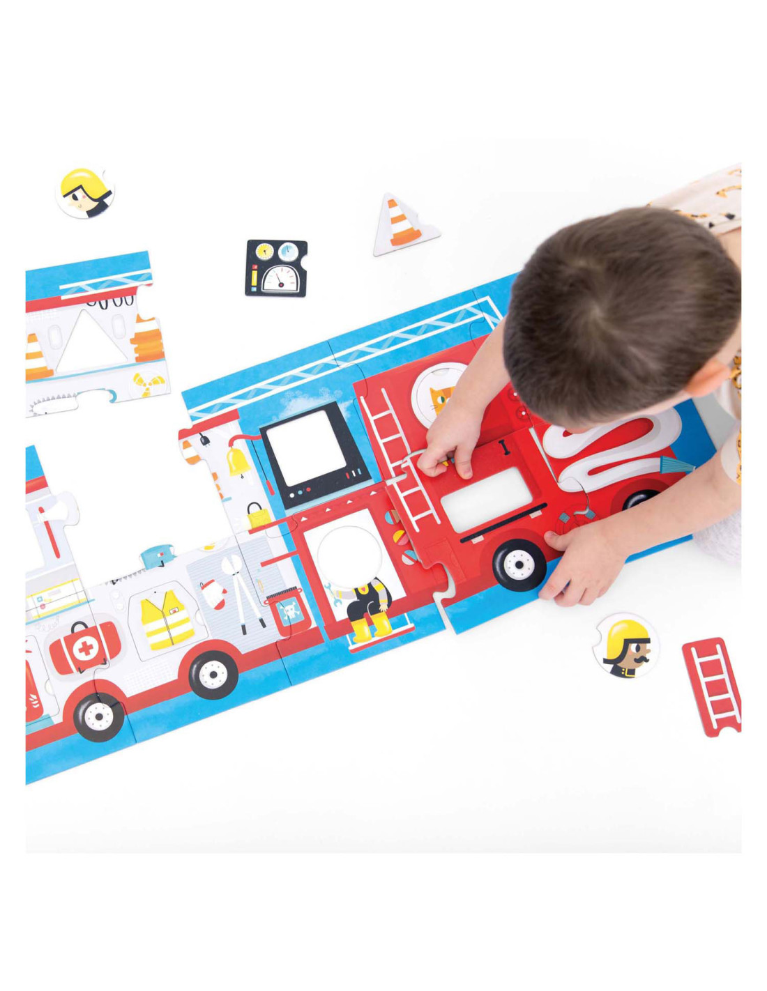 Klaar voor de start: af! Deze 23-delige educatieve puzzel laat kinderen in twee stappen creatief plezier beleven. Eerst zetten kinderen de jumbo-stukken in elkaar tot een groot (meer dan 3 meter lang) voertuig en dan leren ze over verschillende vormen door de verschillende bijgeleverde voorwerpen in de puzzel te plaatsen. Maar daar houdt het plezier niet op! Ronde stukken kunnen vrij gemixt en gematcht worden, dus jij bepaalt wie er rijdt!