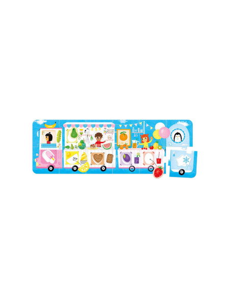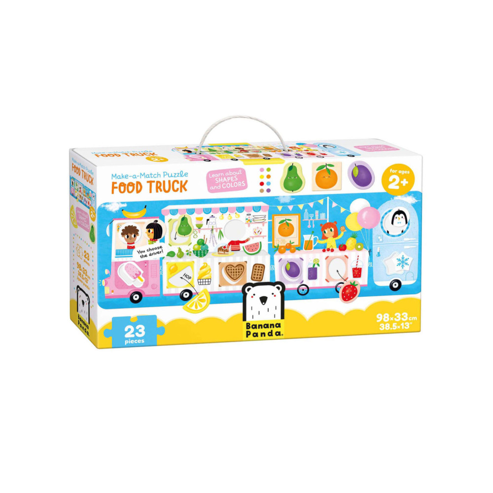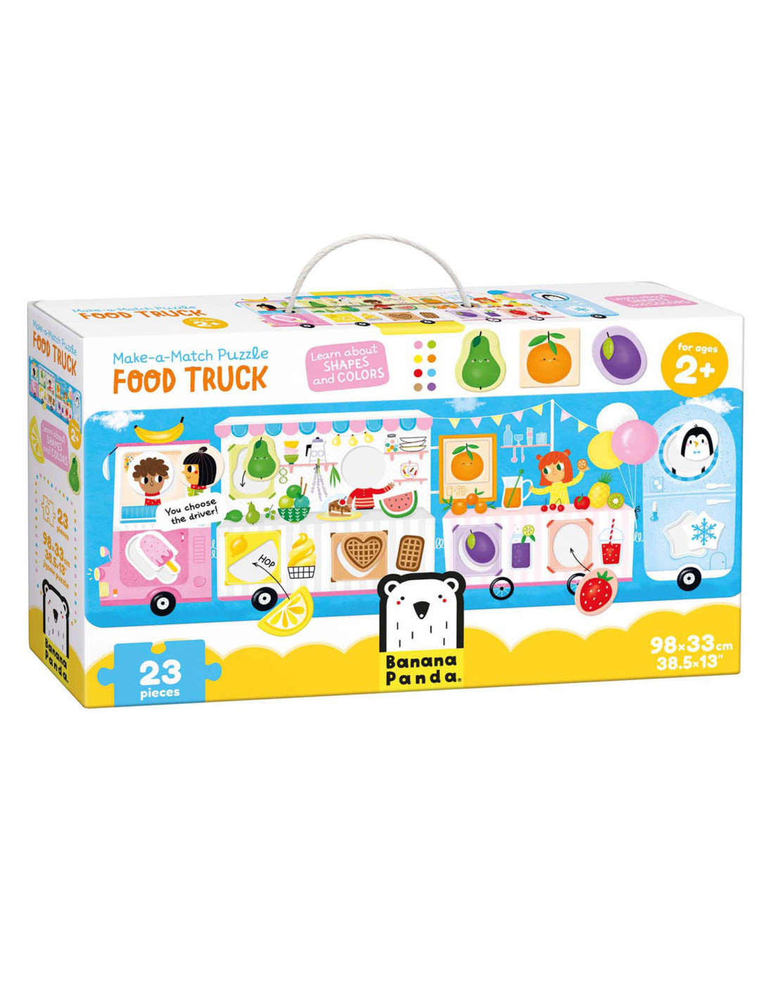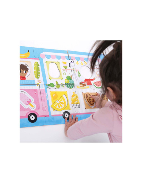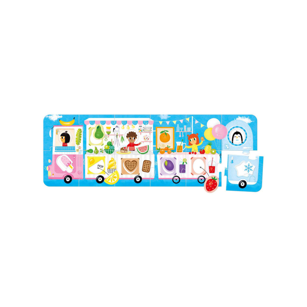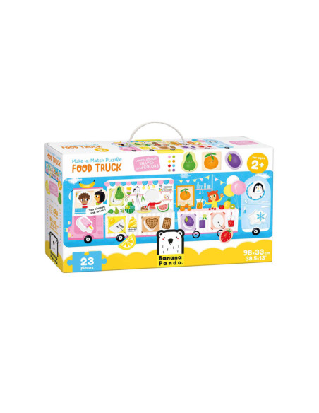 Deze 23-delige educatieve puzzel betrekt kinderen in twee stappen van creatief plezier. Eerst zetten kinderen de jumbo-stukken in elkaar tot een groot (meer dan 3 meter lang) voertuig en dan leren ze over verschillende vormen of kleuren door de verschillende bijgeleverde voorwerpen in de in elkaar gezette lay-out te plaatsen. Maar daar houdt het plezier niet op! Ronde stukken kunnen vrij door elkaar gebruikt worden, dus jij bepaalt wie er rijdt!