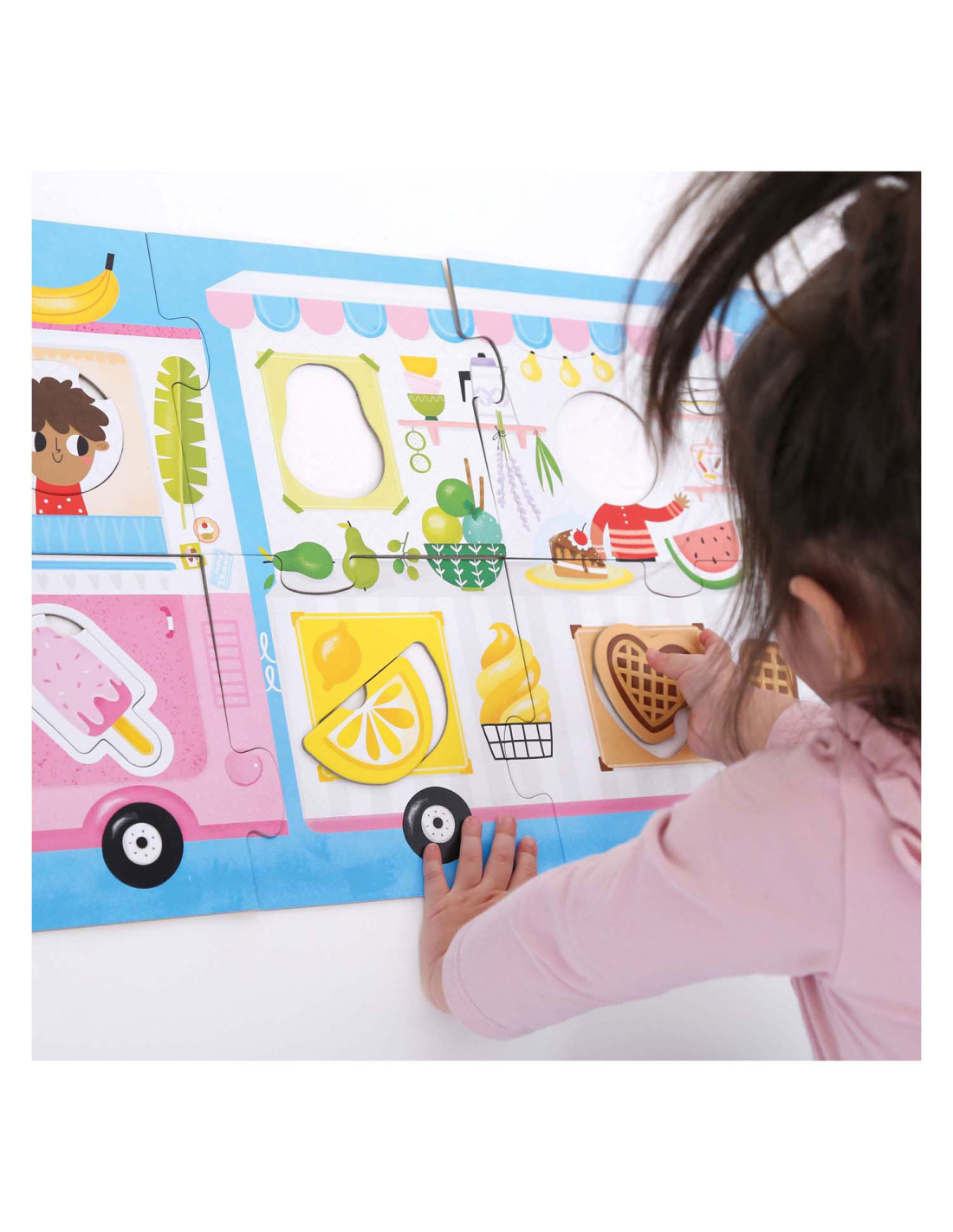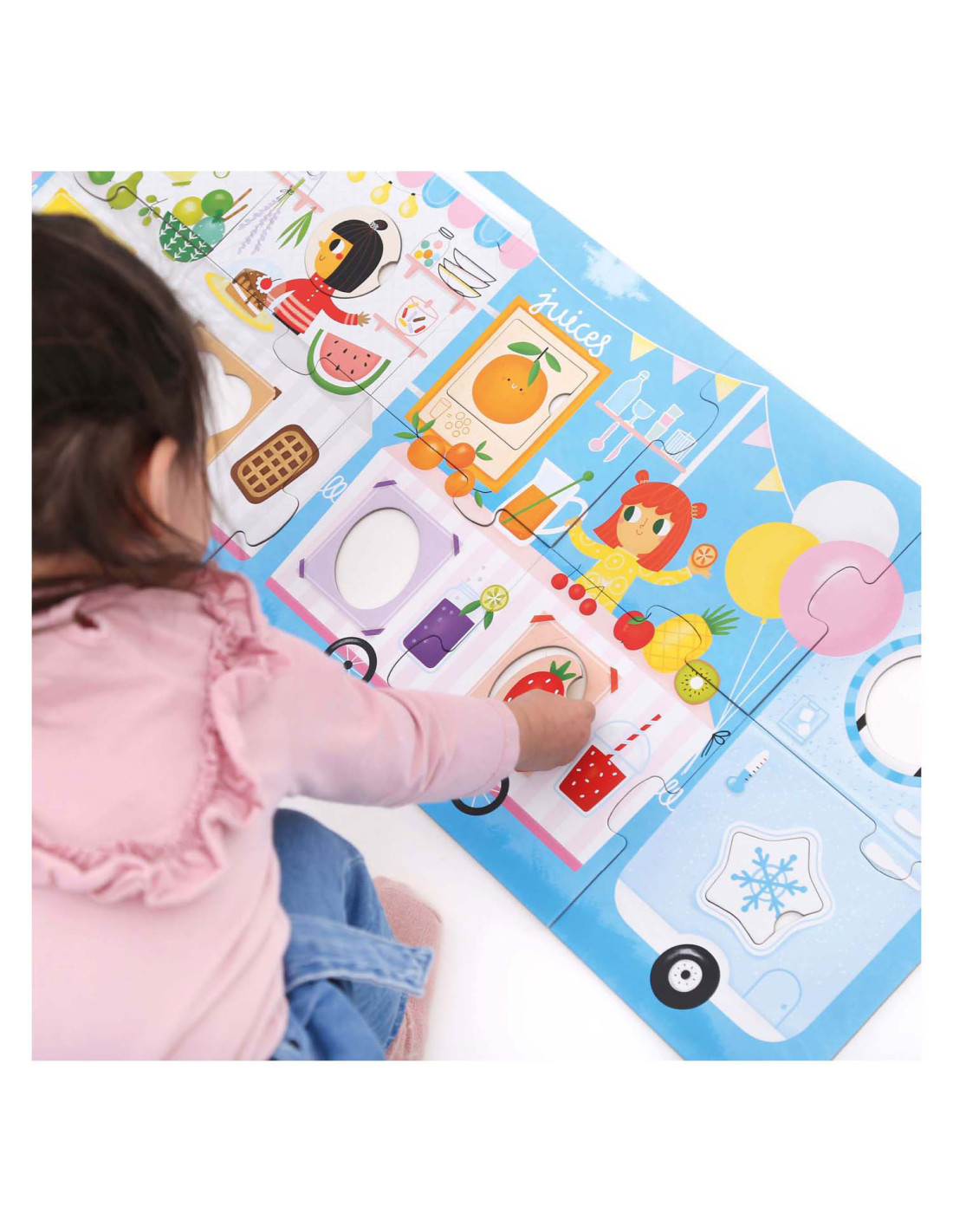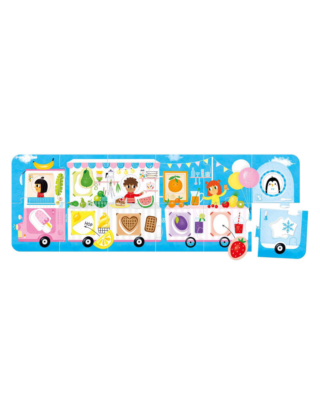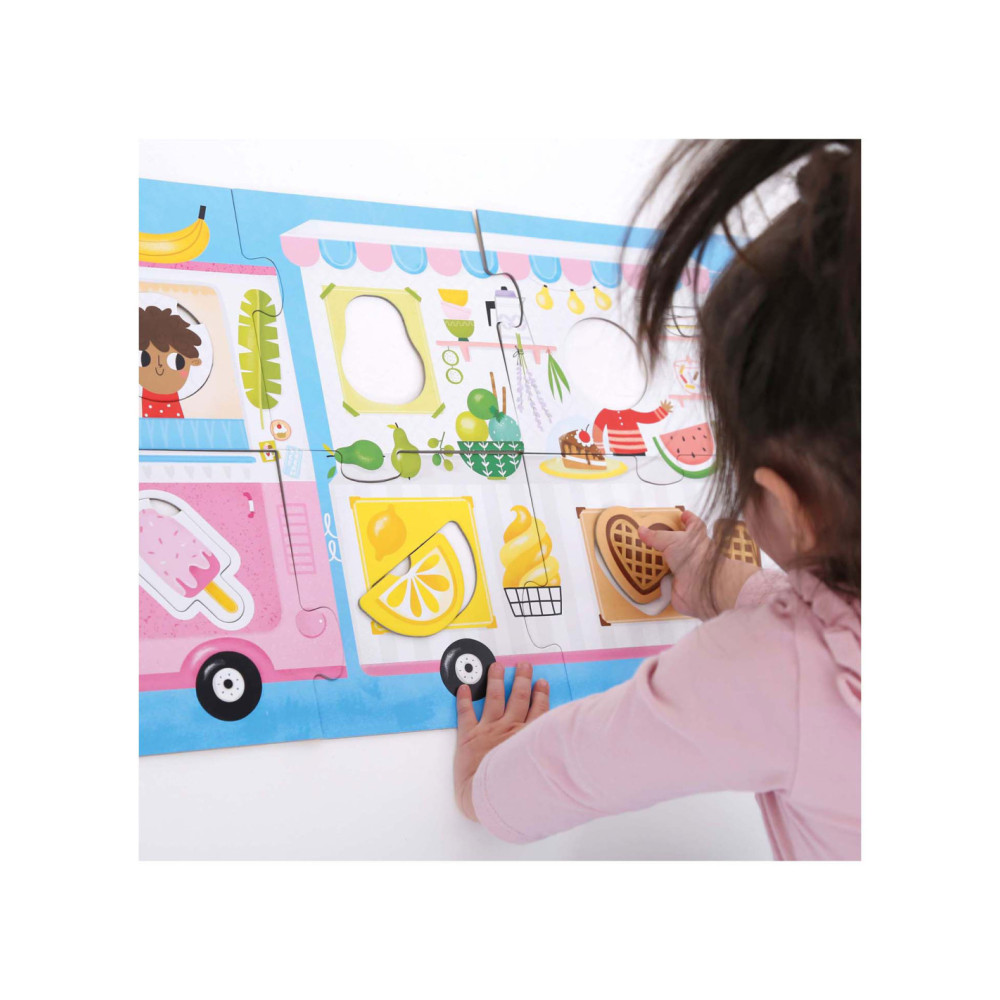 Deze 23-delige educatieve puzzel betrekt kinderen in twee stappen van creatief plezier. Eerst zetten kinderen de jumbo-stukken in elkaar tot een groot (meer dan 3 meter lang) voertuig en dan leren ze over verschillende vormen of kleuren door de verschillende bijgeleverde voorwerpen in de in elkaar gezette lay-out te plaatsen. Maar daar houdt het plezier niet op! Ronde stukken kunnen vrij door elkaar gebruikt worden, dus jij bepaalt wie er rijdt!