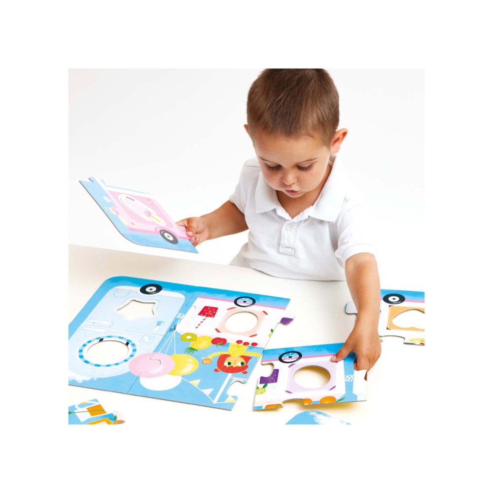 De illustraties en het productformaat zijn aangepast voor jonge leerlingen. Al spelend met deze puzzels leren kinderen verschillende vormen onderscheiden, ontdekken ze nieuwe woorden en ontwikkelen ze hun verbeelding en fijne motoriek.