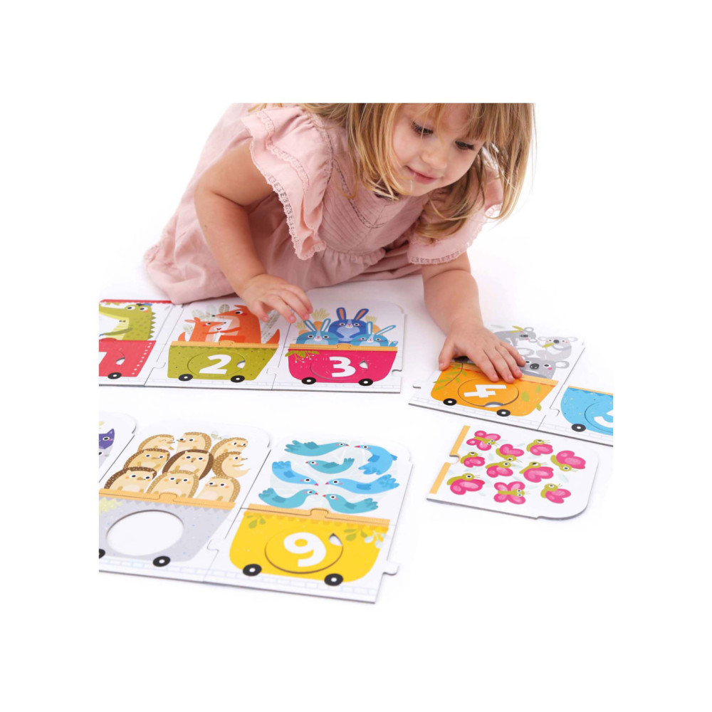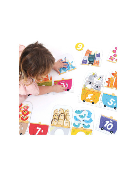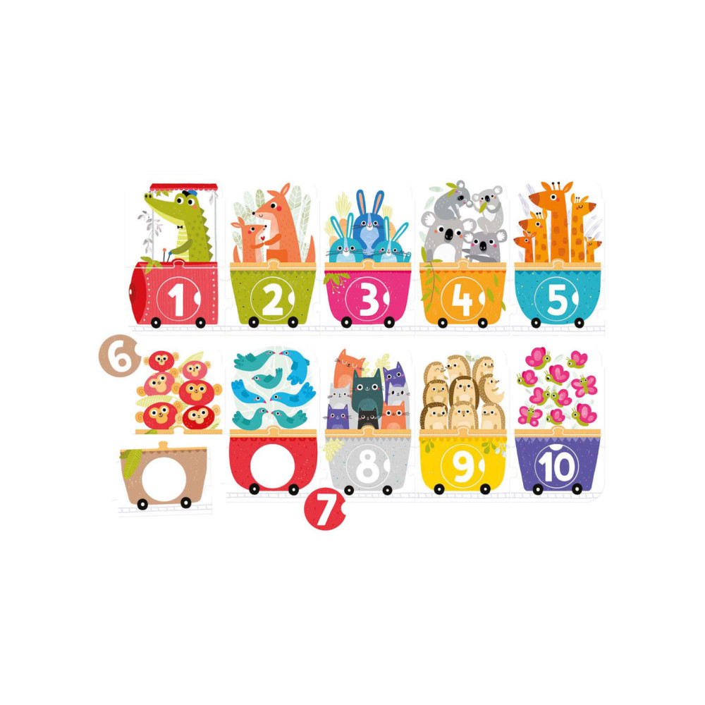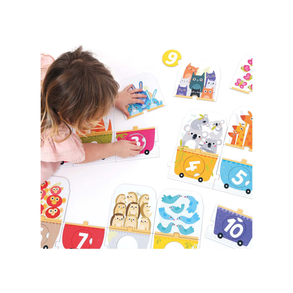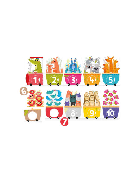 1... 2... 3... Het is tijd voor een reis naar de wereld van de getallen. Zet de wagons bij elkaar en beslis dan wie er in elke wagen gaat zitten. Allemaal instappen!