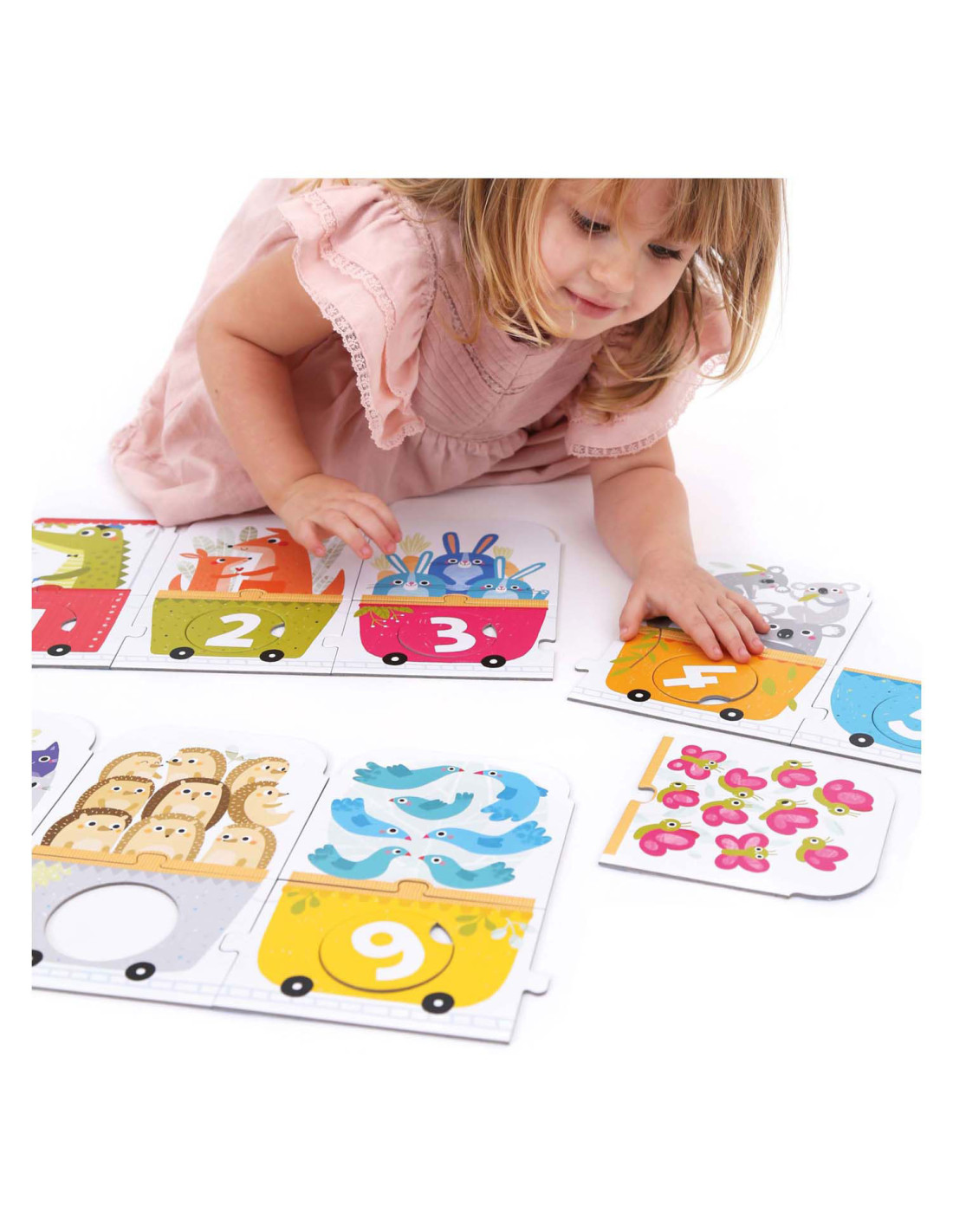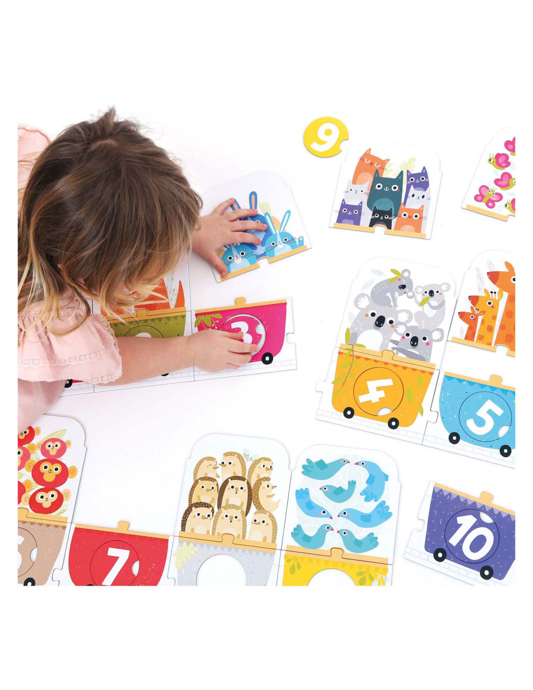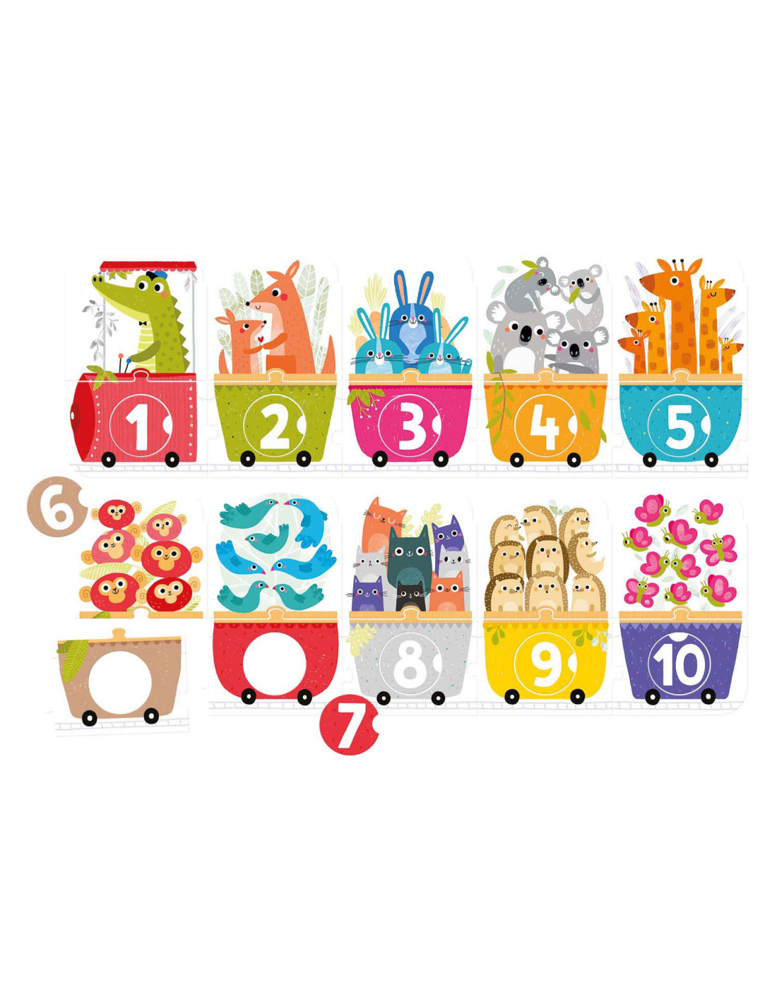 1... 2... 3... Het is tijd voor een reis naar de wereld van de getallen. Zet de wagons bij elkaar en beslis dan wie er in elke wagen gaat zitten. Allemaal instappen!