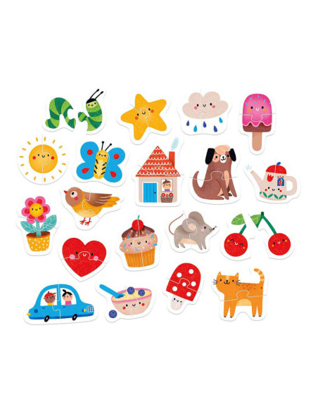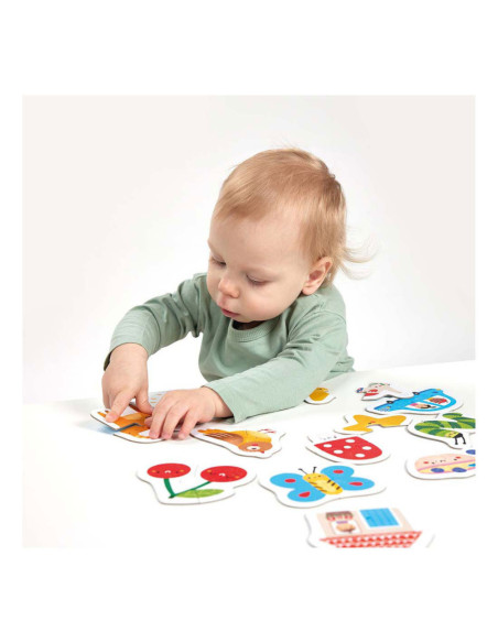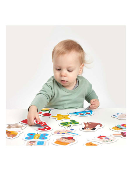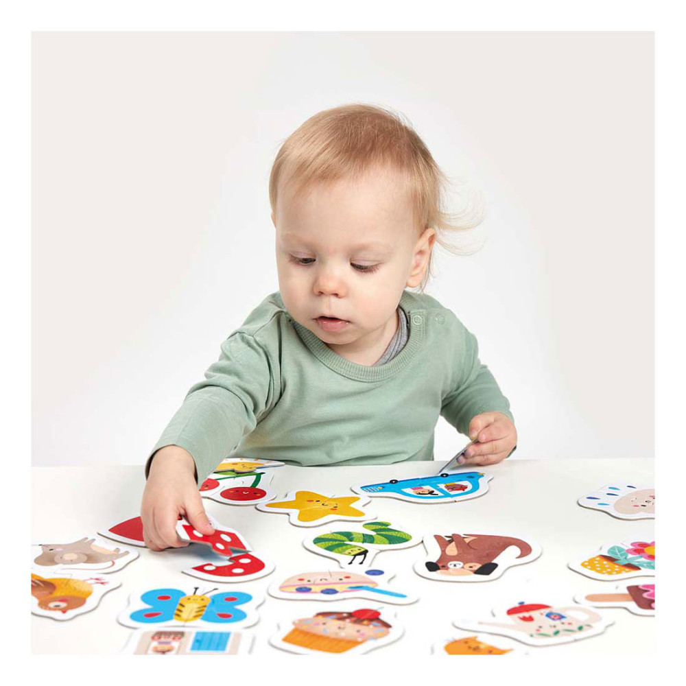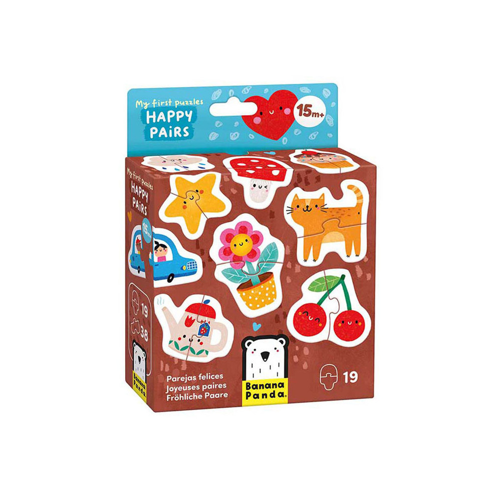 Hé, éénjarigen! Het is tijd voor je eerste puzzel! Mijn Eerste Puzzel - Happy Pairs is een schattige set, speciaal gemaakt voor kinderen die net beginnen aan hun puzzelavontuur. De set bevat 19 kleurrijke puzzels van twee stukjes, die bij elke puzzel een kleine uitdaging bieden die een gevoel van trots oproept. Laat het plezier beginnen!