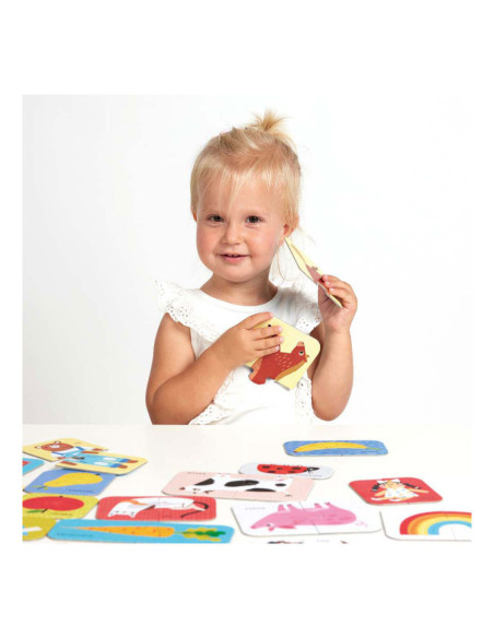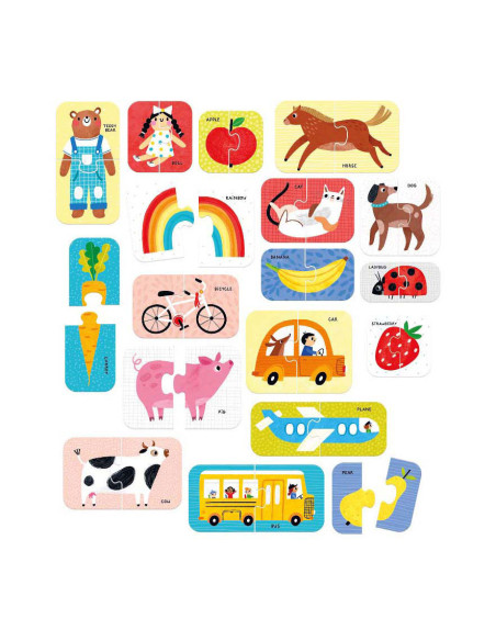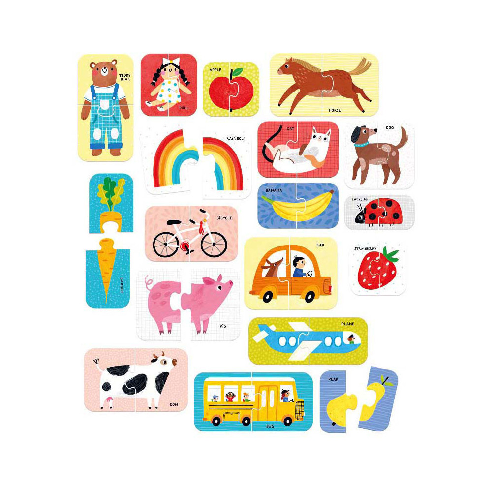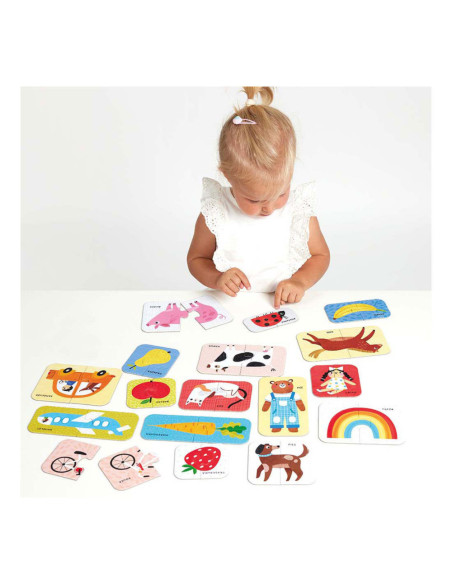 Hallo kleintjes, het is tijd voor jullie eerste puzzels! Educatieve puzzels zijn een geweldig cadeau-idee voor een nieuwsgierige peuter na zijn eerste verjaardag. De set bevat 18 grote, tweedelige puzzels - een geweldig begin van een puzzelavontuur. Mooie, kleurrijke afbeeldingen geven weer wat kinderen weten uit hun directe omgeving. In elkaar zetten is een uitdaging, maar elke match is een reden voor vreugde!