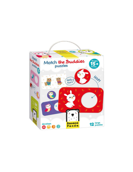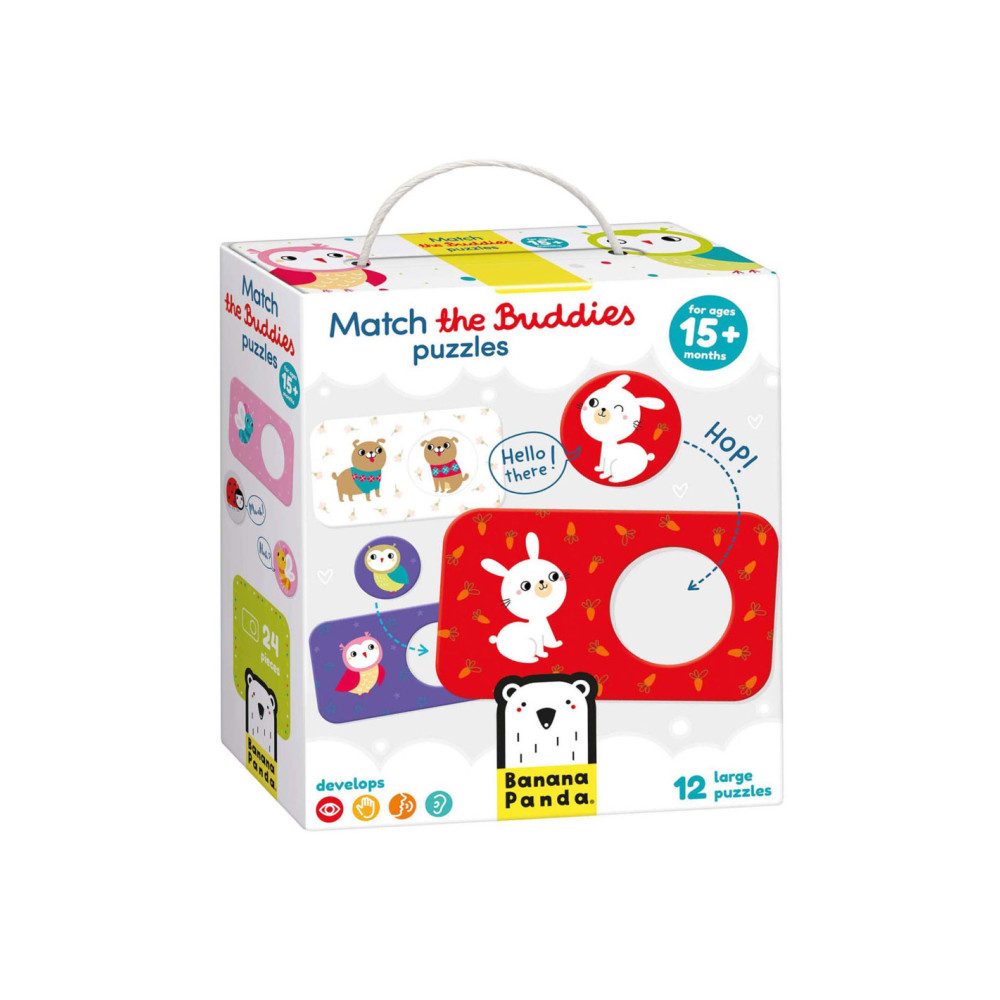 Ontketen de creatieve nieuwsgierigheid van je kind met de Match de Vriendjes Puzzels Set van Banana Panda! De Match the Buddies Puzzelset van Banana Panda is aantrekkelijk en innovatief speelgoed dat creativiteit stimuleert, vroegtijdig leren bevordert en eindeloos speelplezier biedt aan peuters vanaf 15 maanden. Deze charmante set bestaat uit 12 tweedelige puzzels met extra grote stukken van dik karton, zodat kleine handjes ze gemakkelijk kunnen vastpakken en manipuleren.