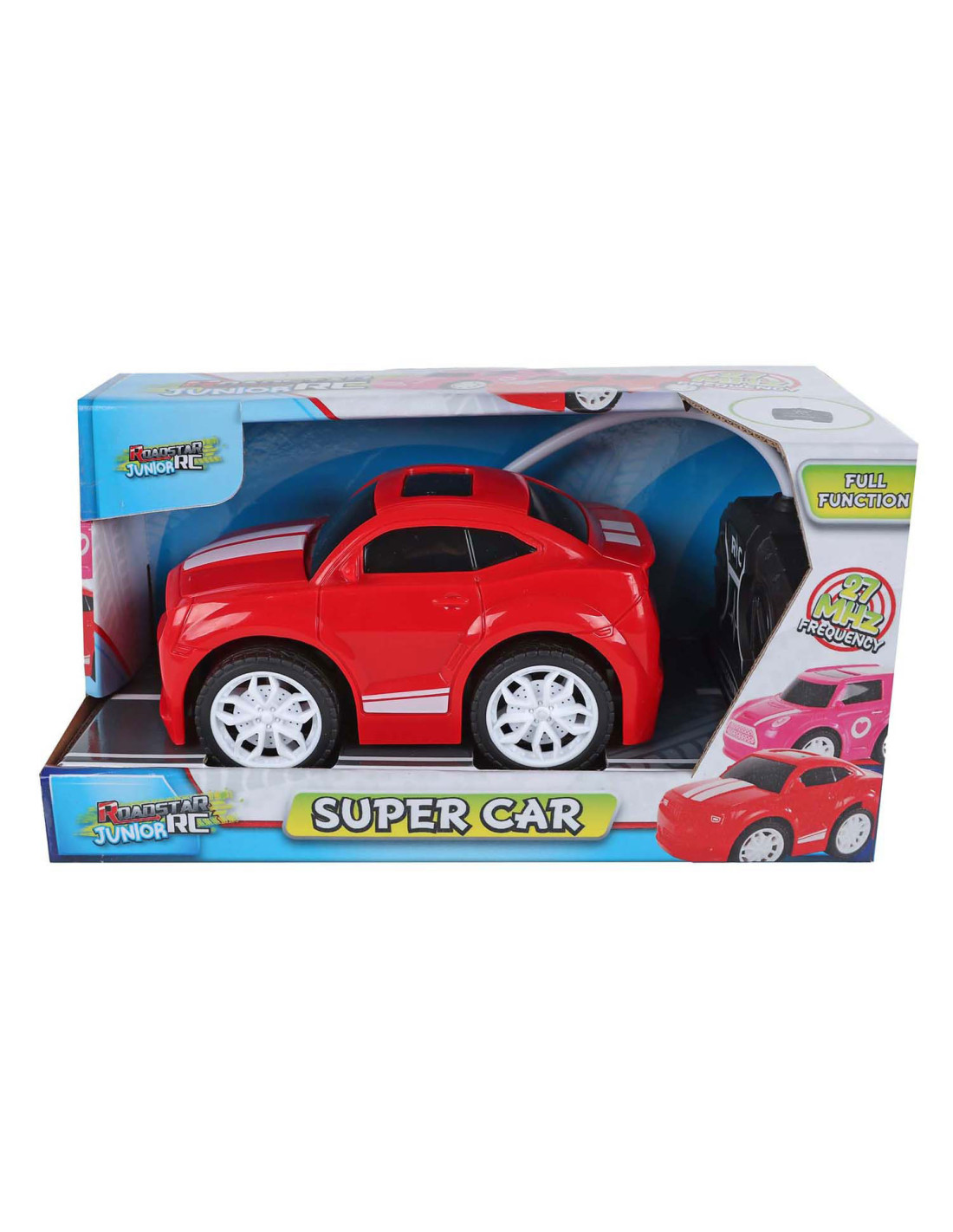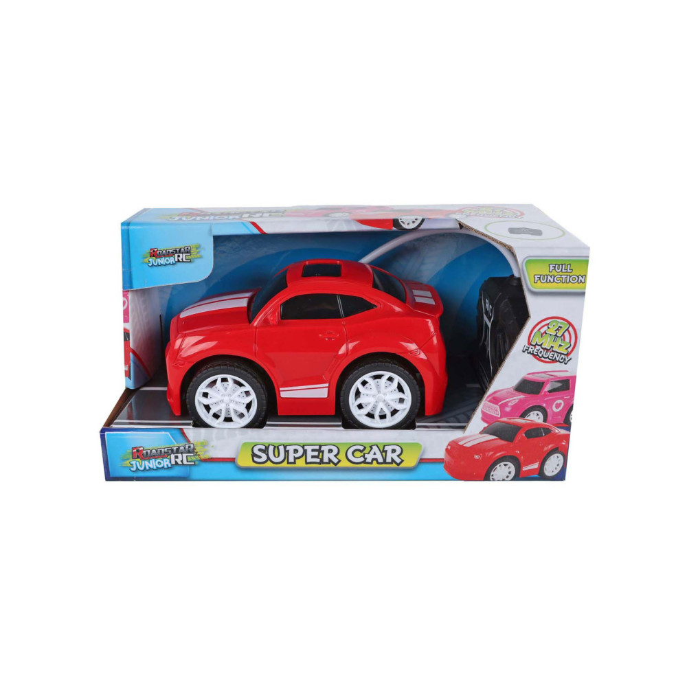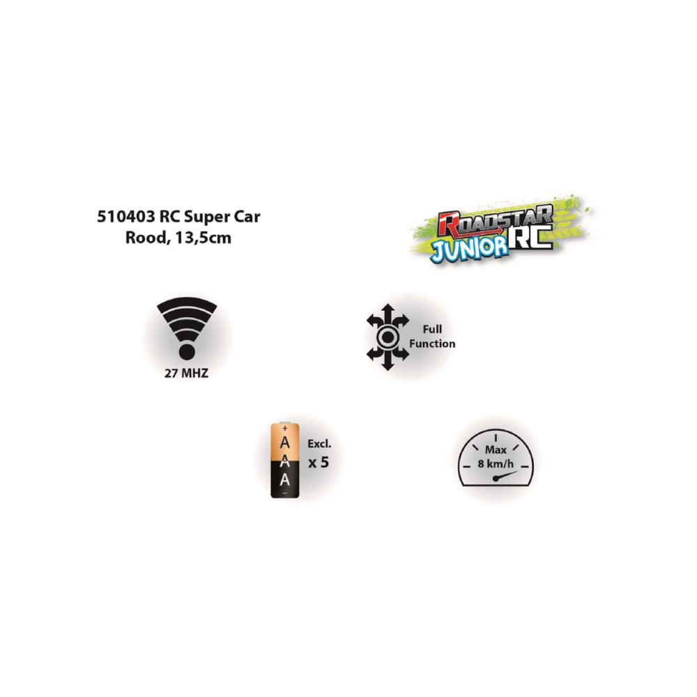 Bestuurbare Auto Roadstar RC Rood 27Mhz, 13,5cm. De auto wordt exclusief 5 AAA batterijen geleverd en gaat maximaal 8 km/u.