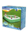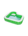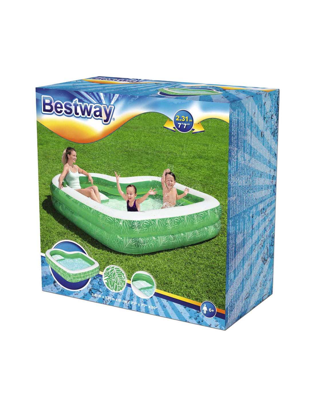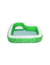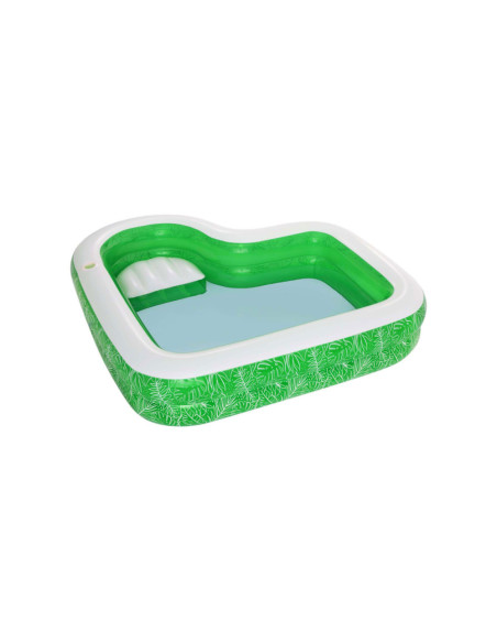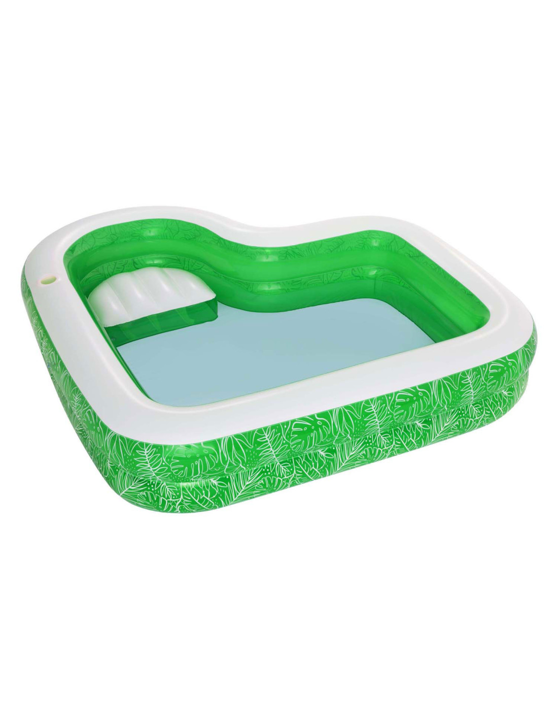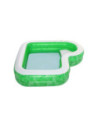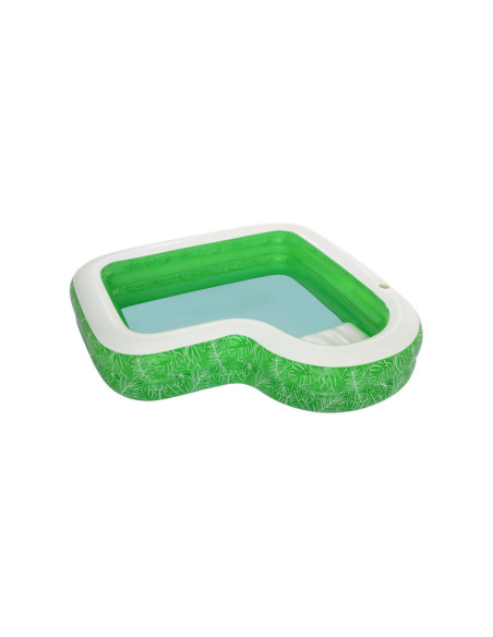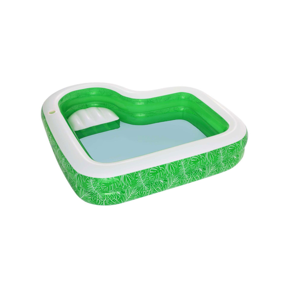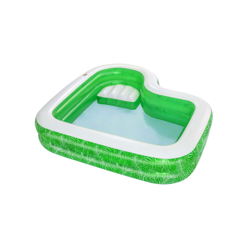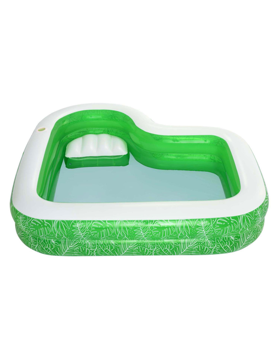 Dit bad met een unieke vorm en kleur is een toevoeging voor elke tuin. Het bad is voorzien van een handige uitstulp met een opblaasbaar zitje en bekerhouders om de spelende kinderen goed in te gaten te kunnen houden. De geraffineerde print op een groene achtergrond met reliëfprint is uniek voor dit zwembad en zorgt voor een echte wow-factor in de tuin. De twee individuele opblaasbare ringen maken dit bad gemakkelijk op te zetten en met het ventiel op de bodem is het water snel uit het bad te halen.